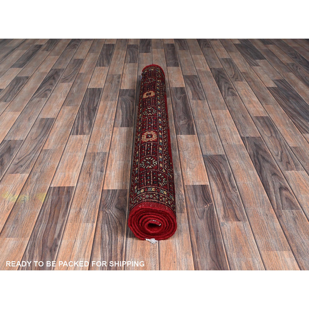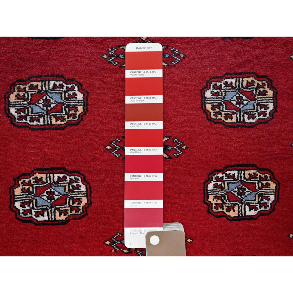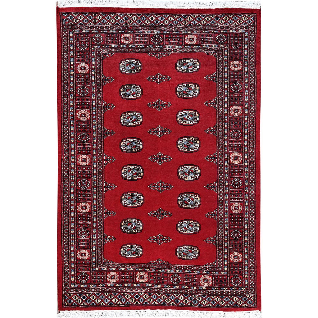 4'2"x6'2" Crimson Red, Princess Bokara With Geometric Medallions, Soft And Shiny Wool, Vegetable Dyes, Hand Knotted, Oriental Rug FWR7848