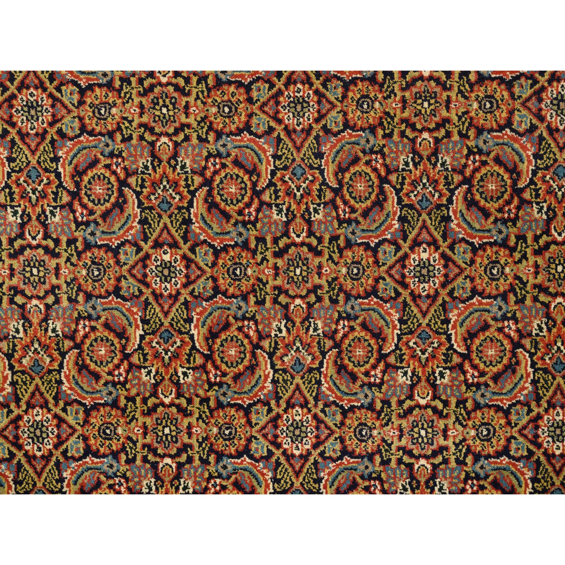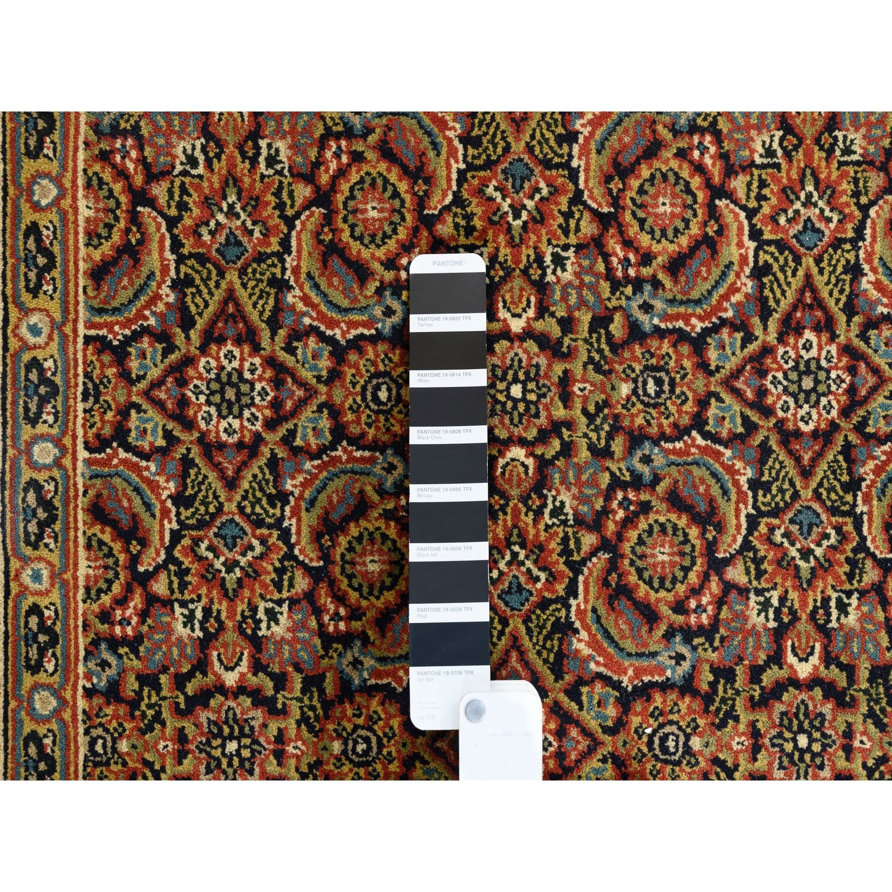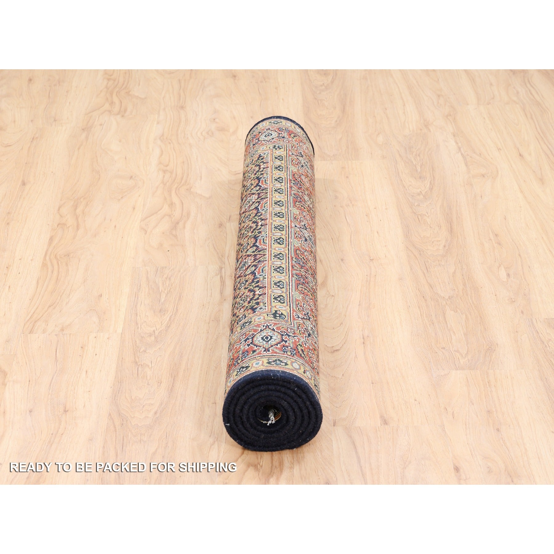 4'2"x6'3" Pitch Black Wool Luxury Herati Fish Design Hand Knotted Dense Weave 250 Kpsi Oriental Rug FWR377868