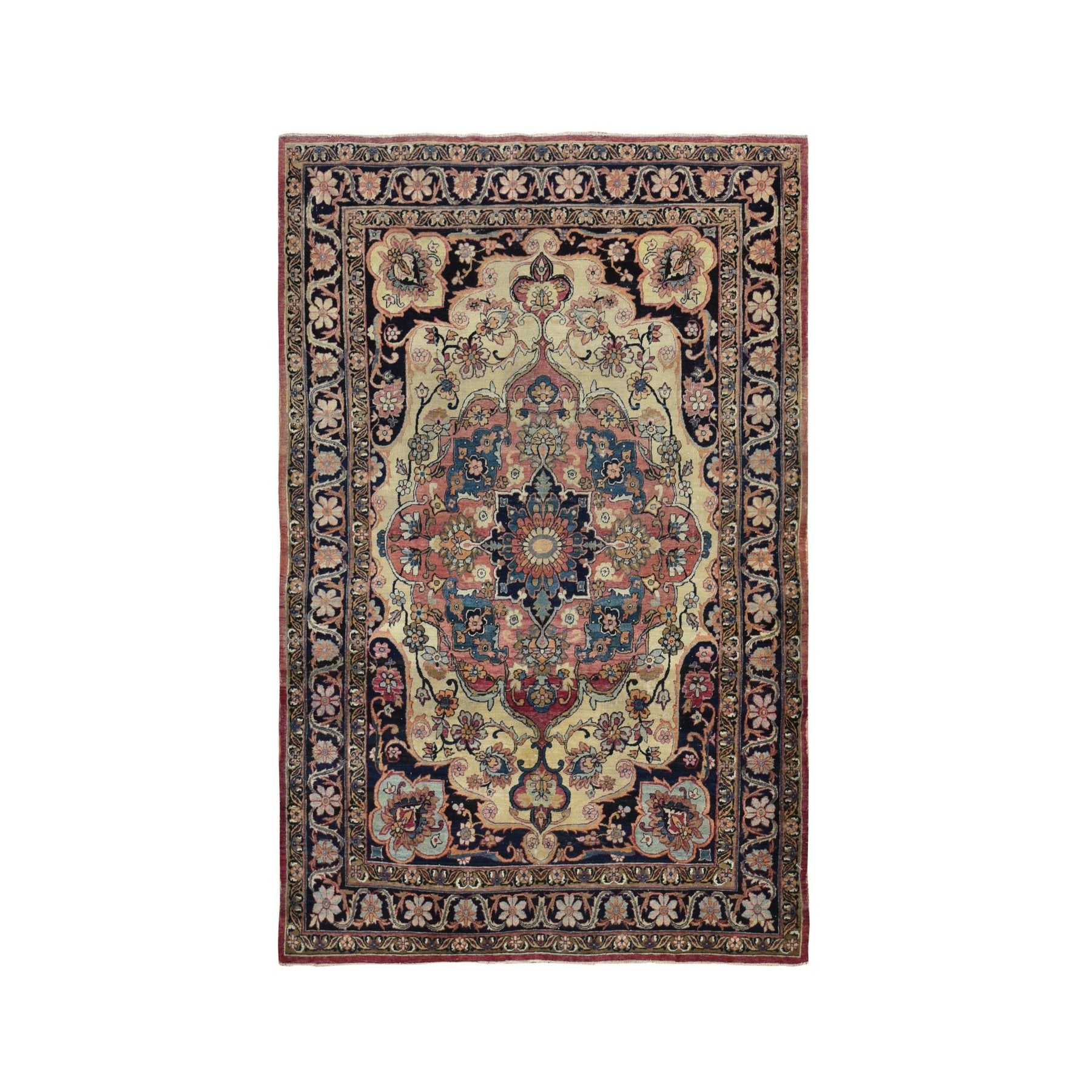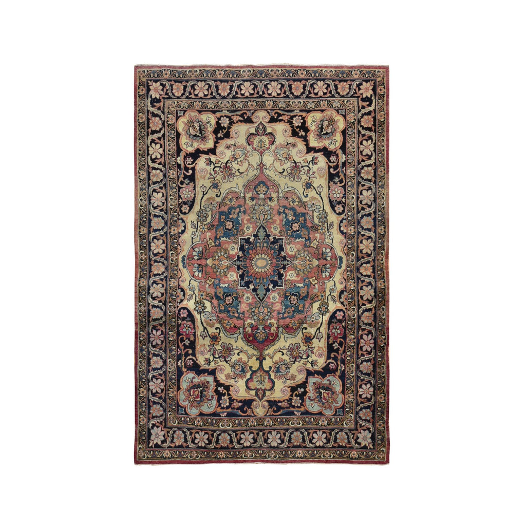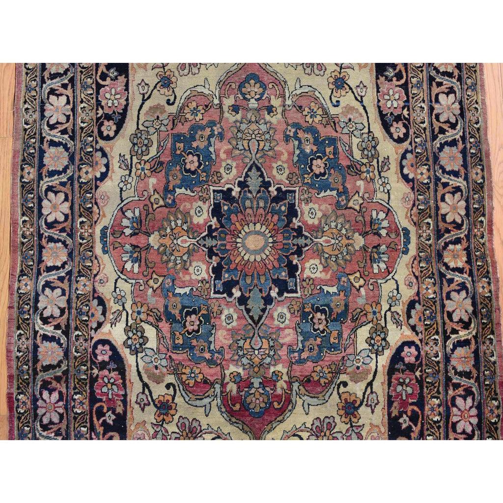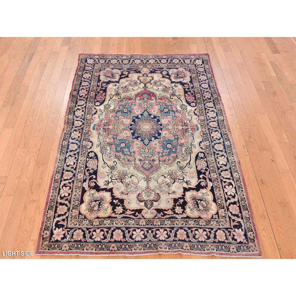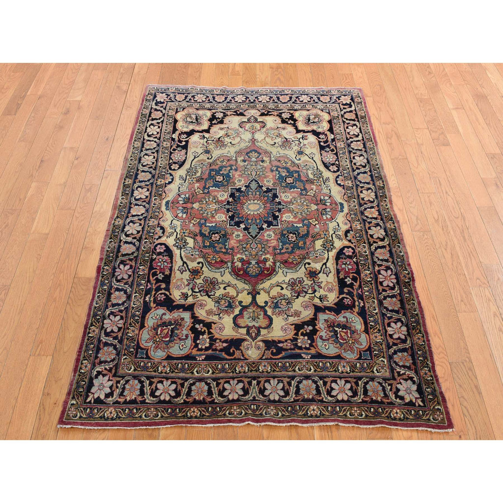 4'2"x6'4" Tottenham Navy Blue, Antique Persian Lavar Kerman In Good Condition, Medallion Design With Even Wear, 100% Wool, Hand Knotted Oriental Rug FWR469086