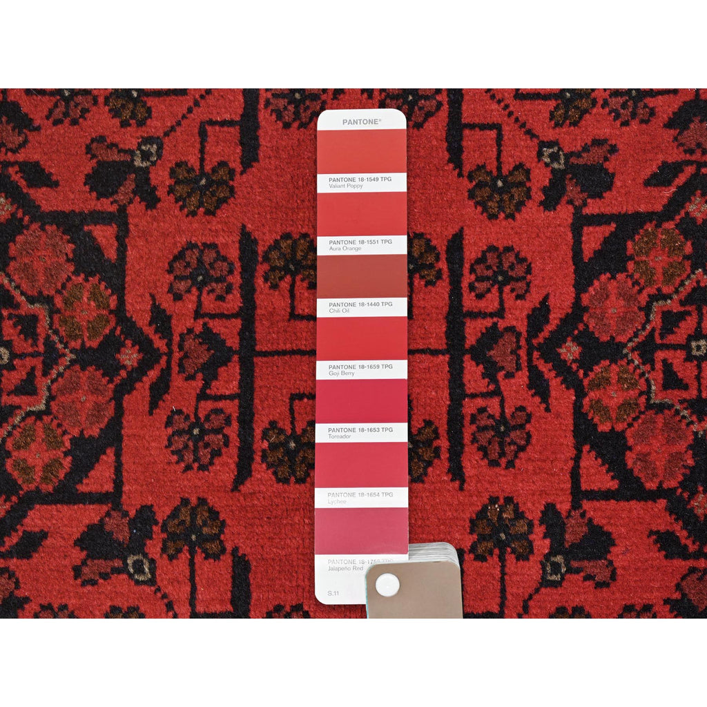 4'2"x6'5" Rose Red, Afghan Andkhoy With Village Design, Organic Wool, Hand Knotted Oriental Rug FWR510648