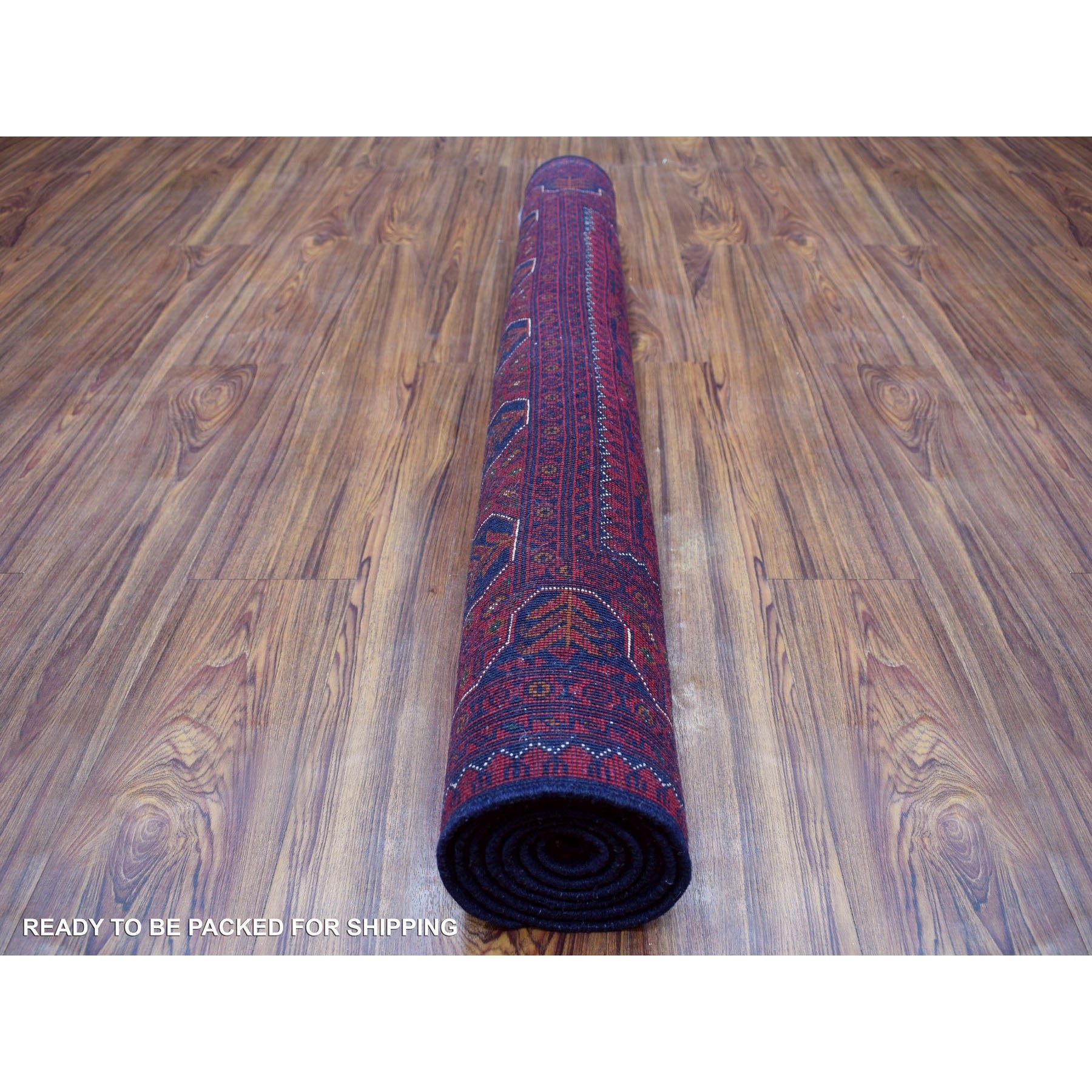 4'2"x6'6" Deep And Saturated Red Afghan Khamyab With Geometric Design Denser Weave With Shiny Wool Hand Knotted Oriental Rug FWR411336