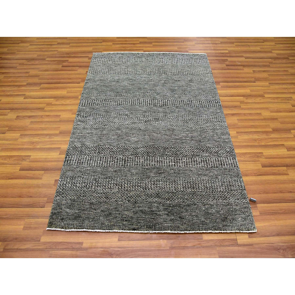 4'2"x6' Medium Gray, Modern Grass Design, Natural Undyed Wool, Hand Knotted, Oriental Rug FWR476874