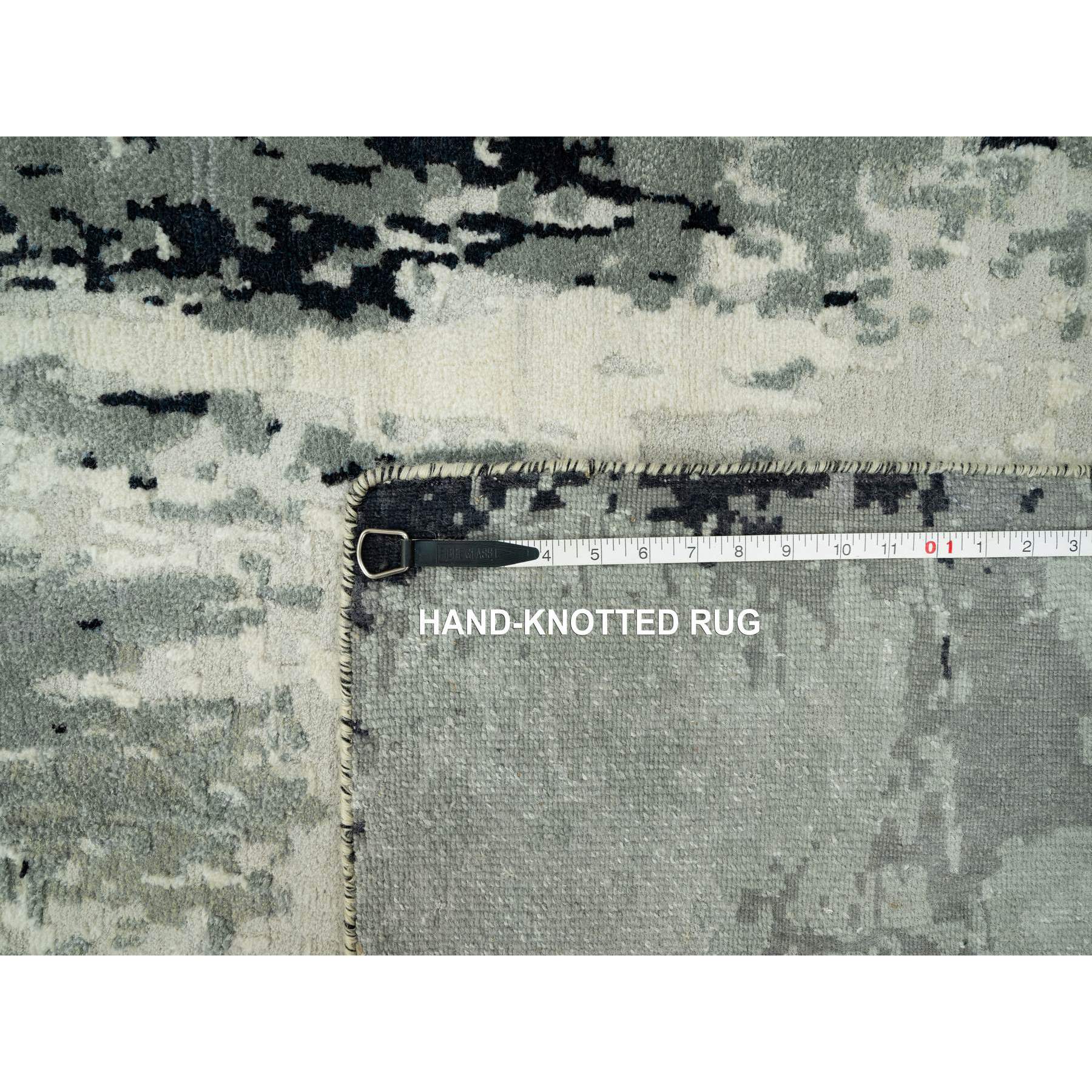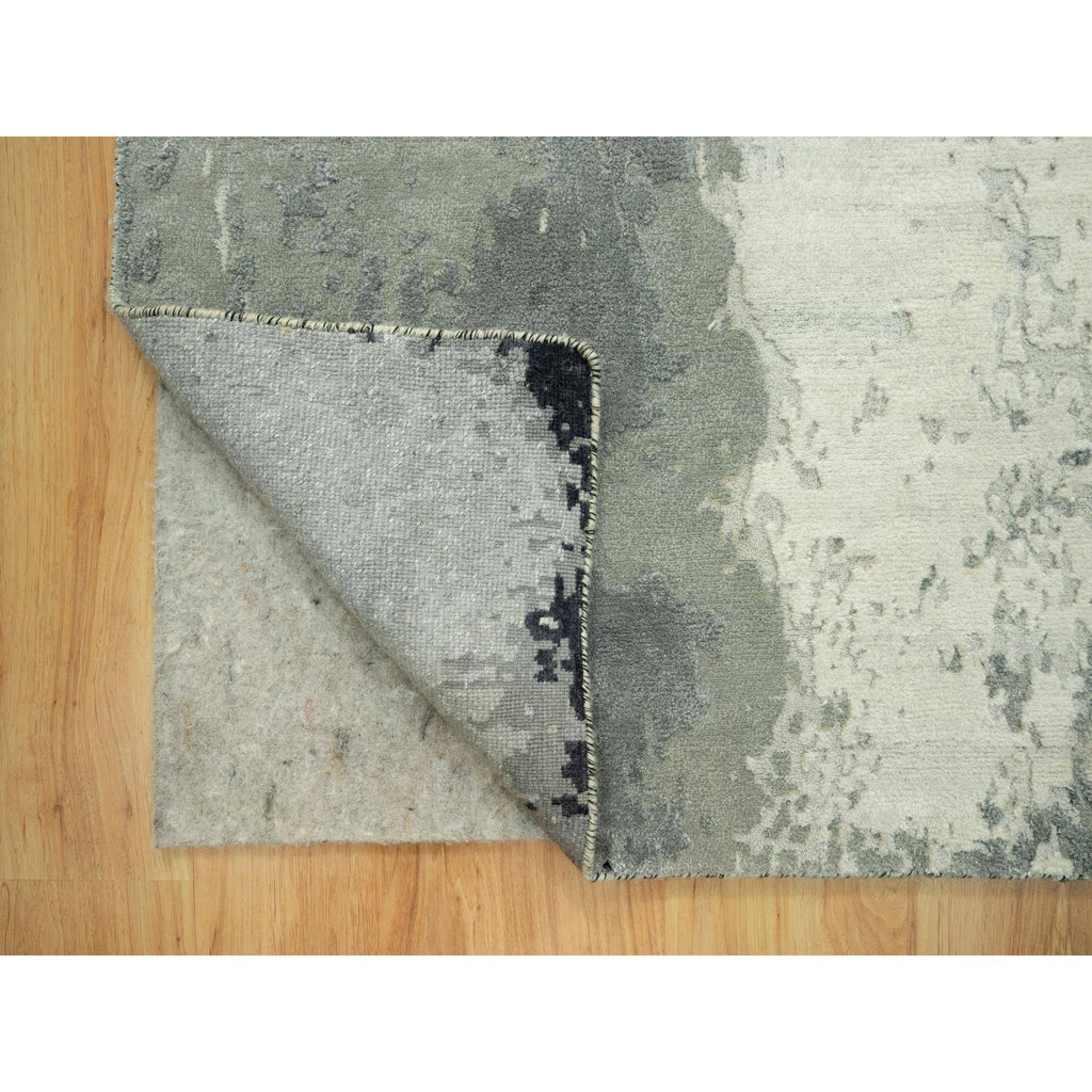 4'2x12' Iridium Black With A Anti-flash White, Abstract Design With Wool And Silk, Hand Knotted, Oriental, Wide Runner Rug FWR542844