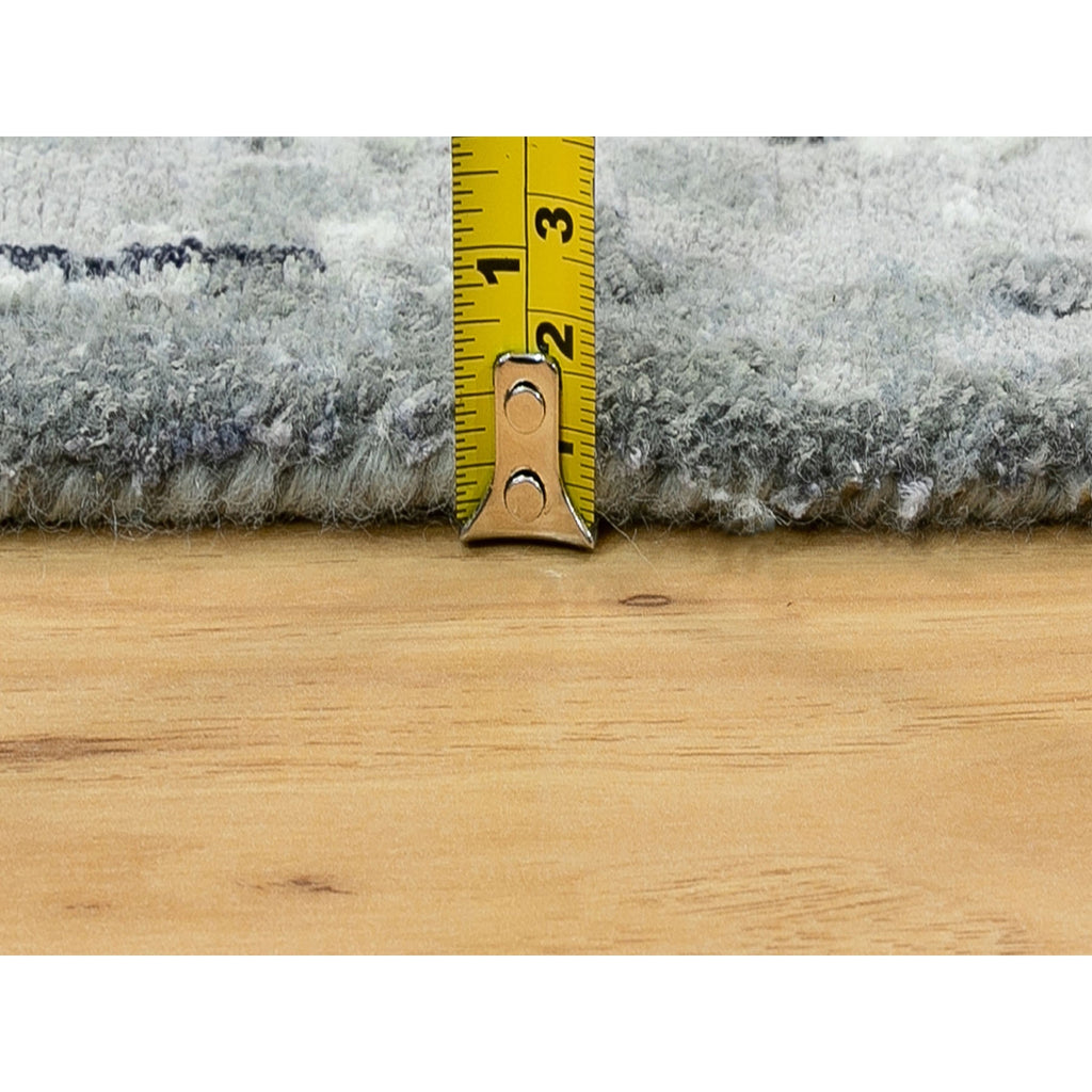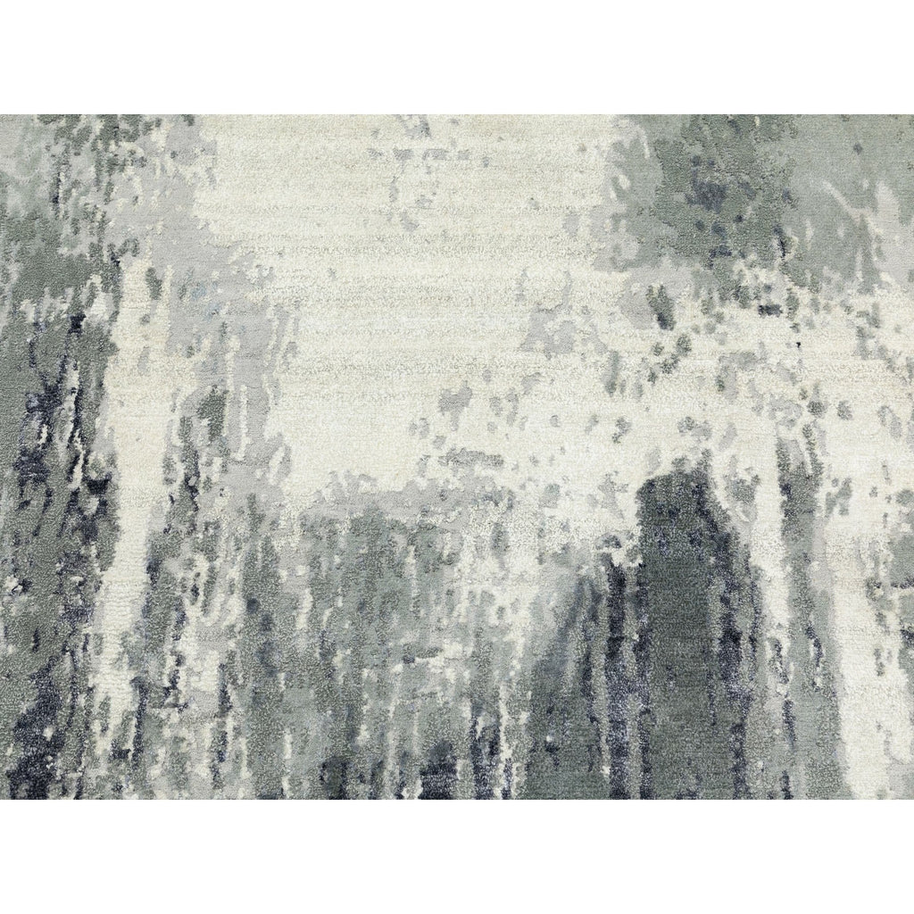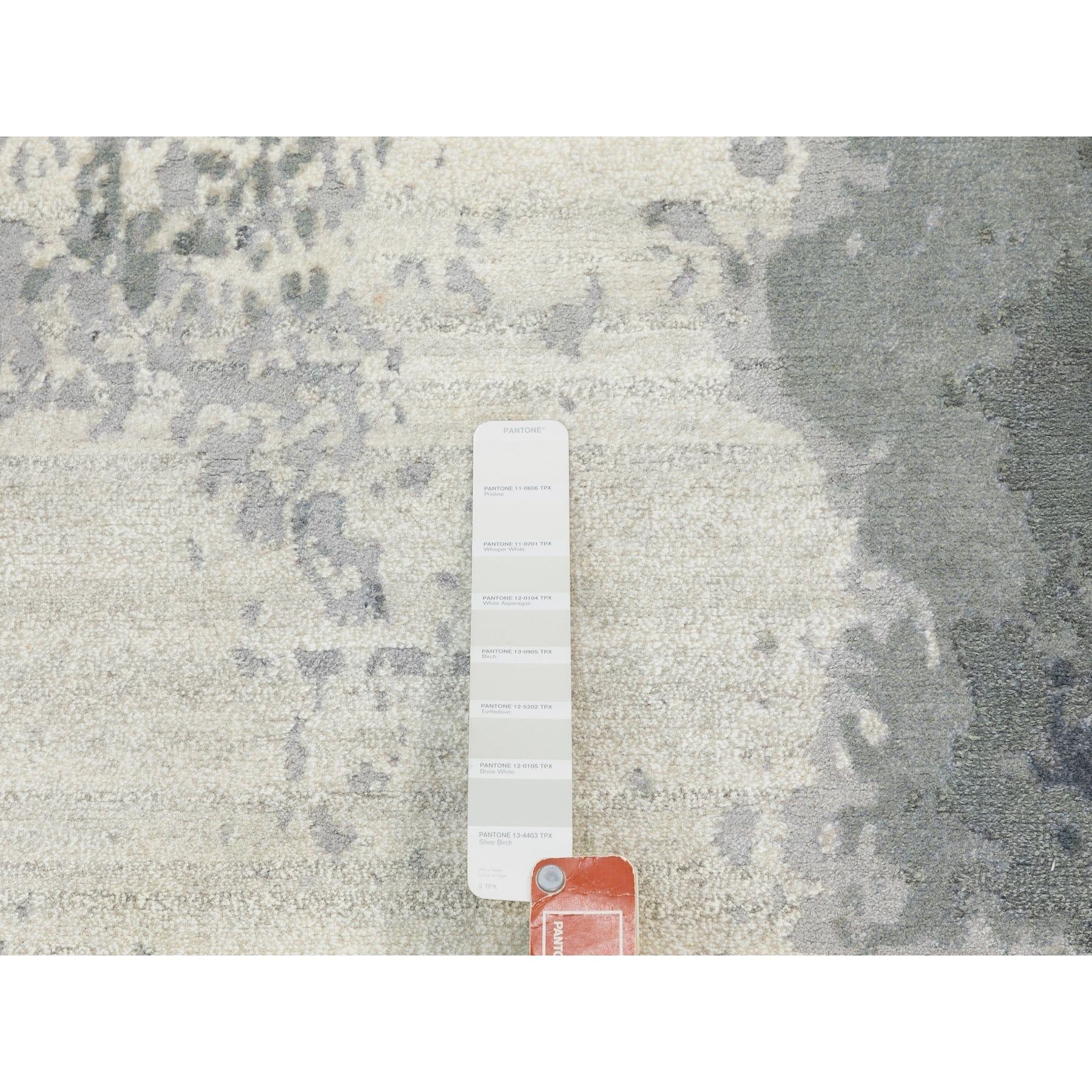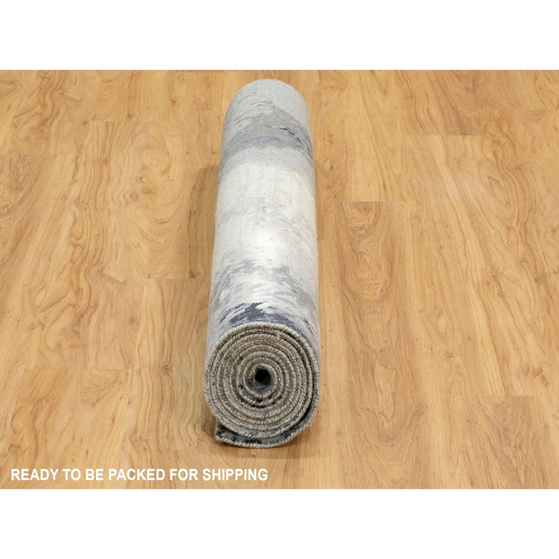 4'3"x10' Gray With Charcoal Black Hand Knotted Abstract Design Wool And Silk Oriental Runner Rug FWR372144