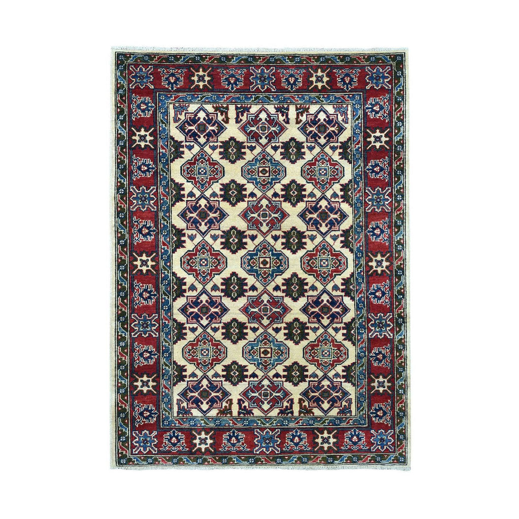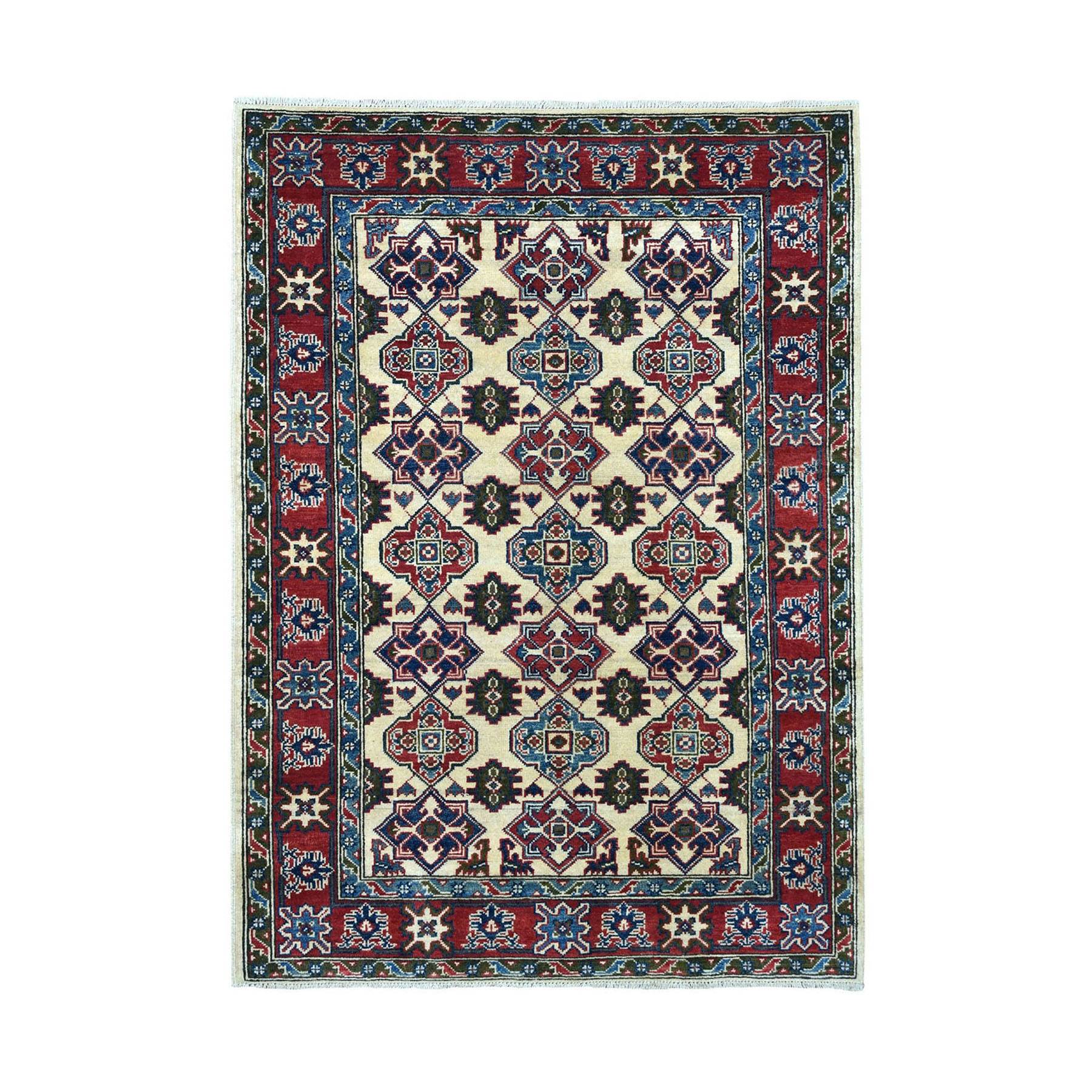 4'3"x5'7" Ivory Kazak Pure Wool Geometric Design Hand-knotted Oriental Rug FWR303888