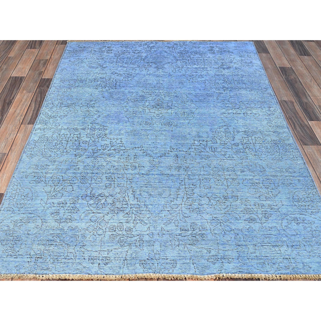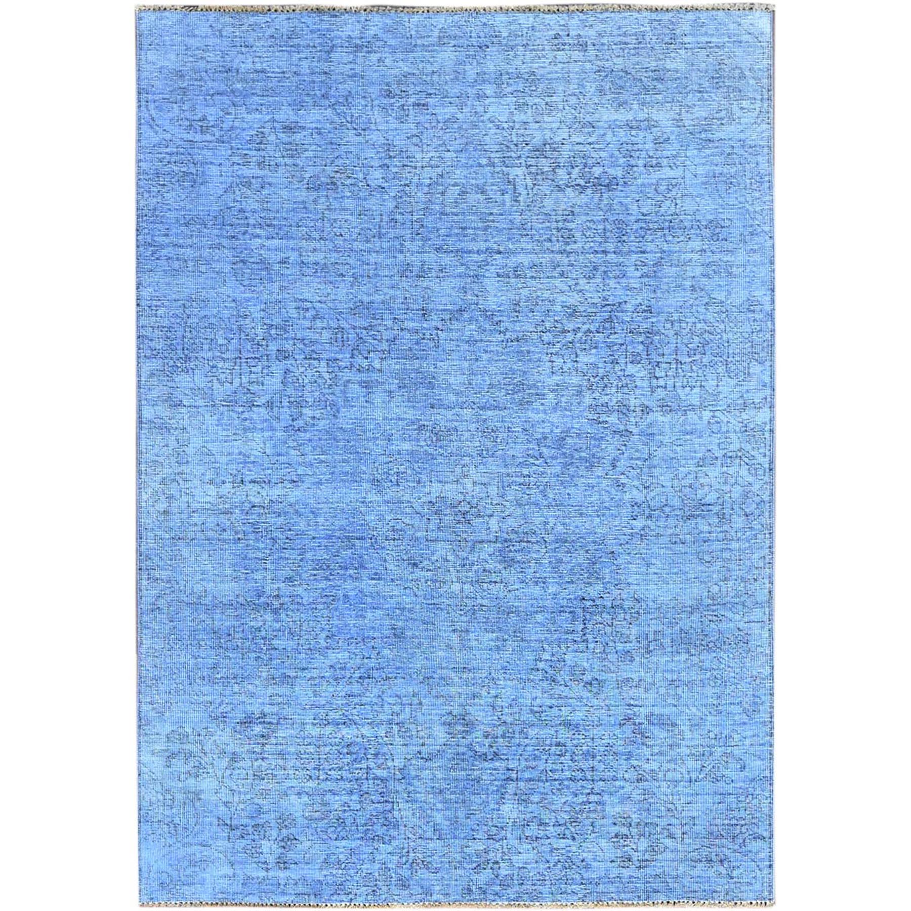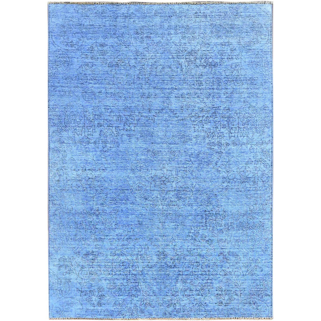 4'4"x6'3" Pacific Coast Blue, Worn Down Vintage Persian, Sides And Ends Professionally Secured And Cleaned, Distressed, Sheared Low, Hand Knotted, 100% Wool, Oriental Rug FWR1434