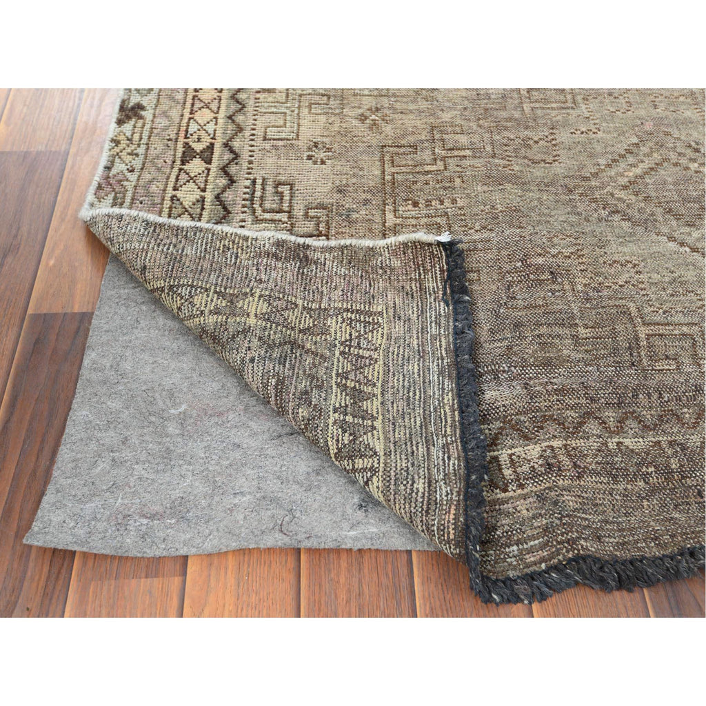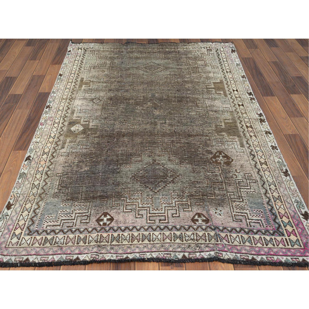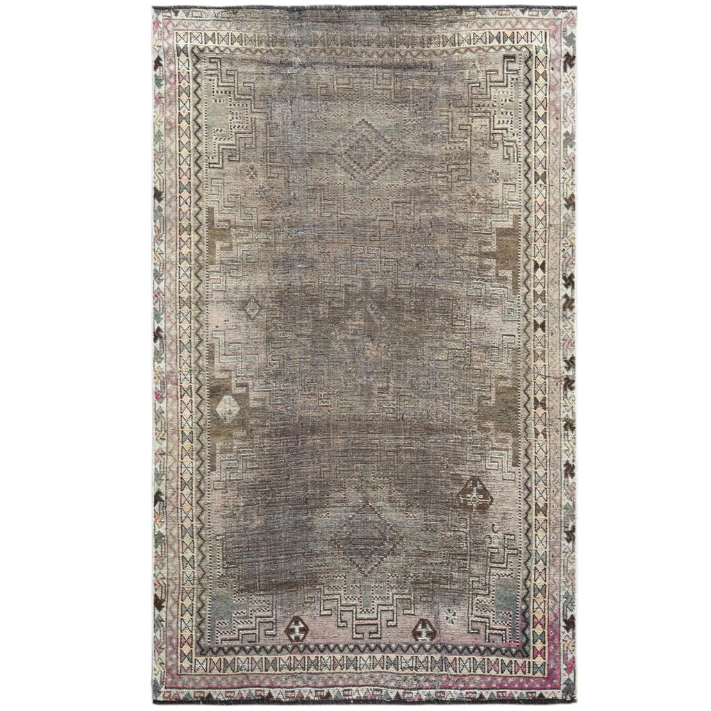 4'5"x7'2" Semi Antique Beige Persian Shiraz Worn Down Clean Distressed Hand Knotted Organic Wool Oriental Rug FWR363318
