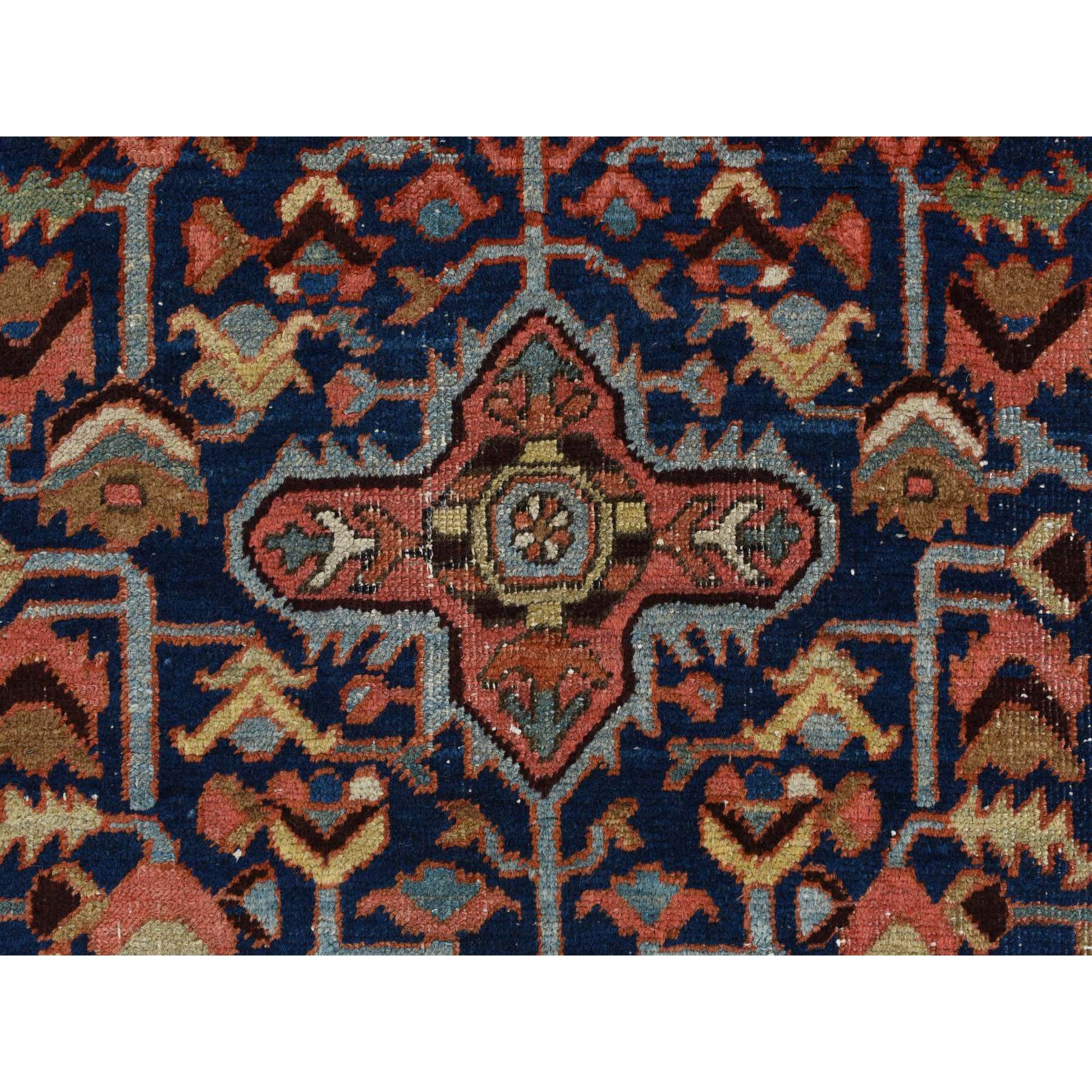 4'6"x5'6" Space Cadet Blue, Antique Persian Heriz In Good Condition, Even Wear, Wide Serapi Borders, 100% Wool, Hand Knotted Oriental Rug FWR469104