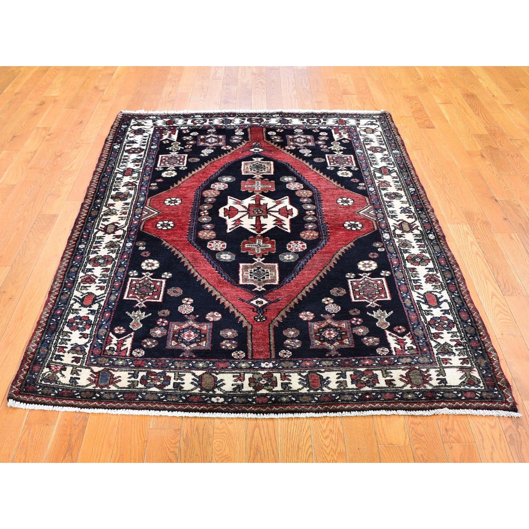 4'6"x6'6" Navy Blue New Persian Mazlagan Pure Wool Hand Knotted Oriental Rug FWR357402