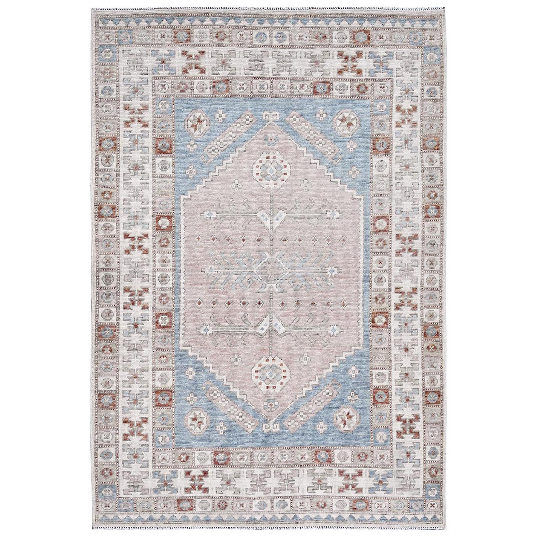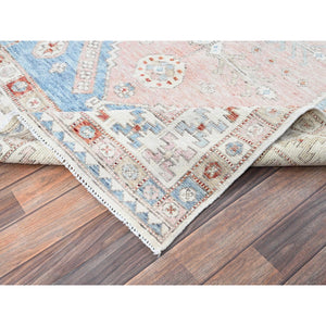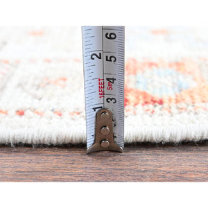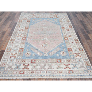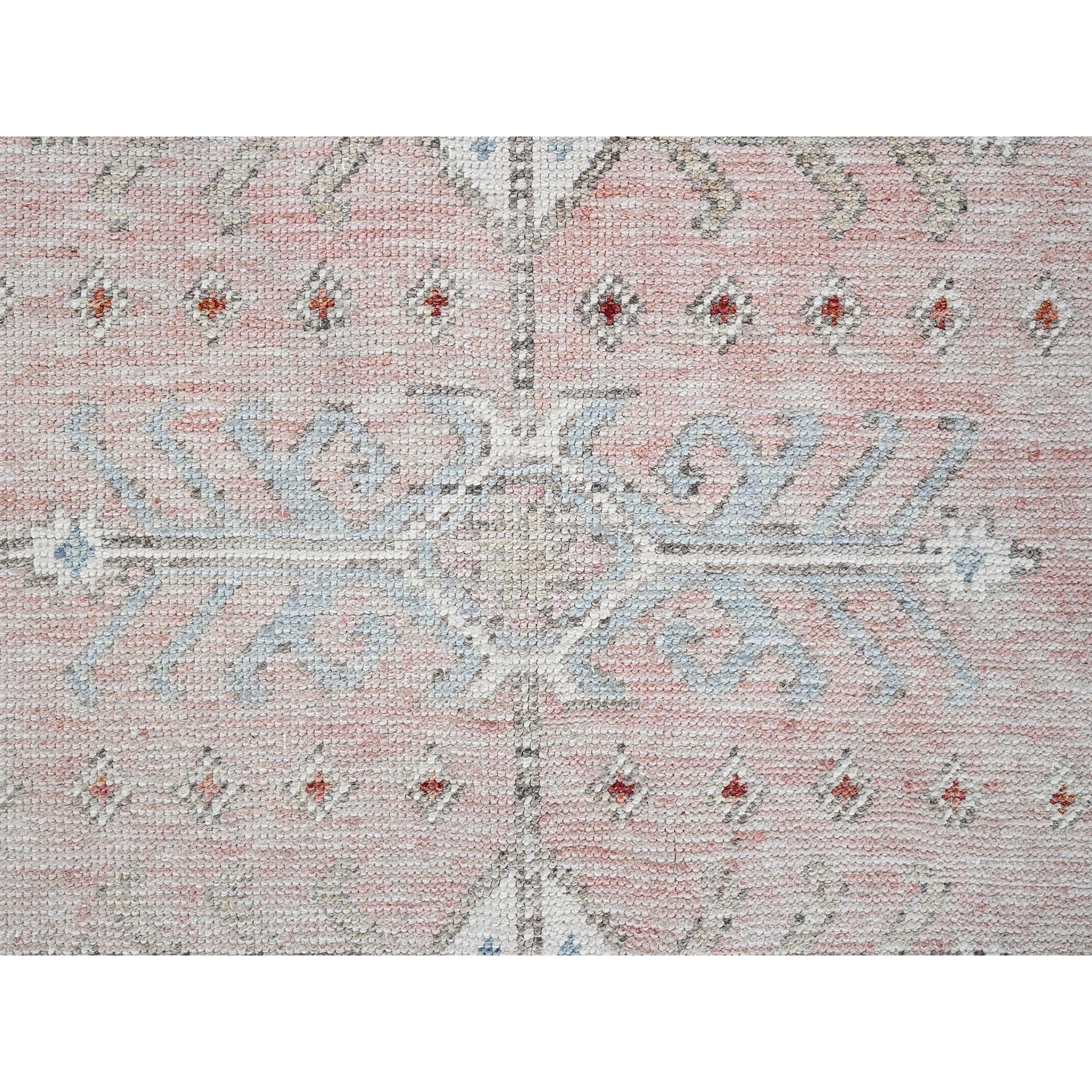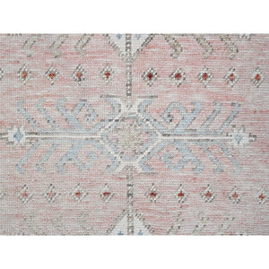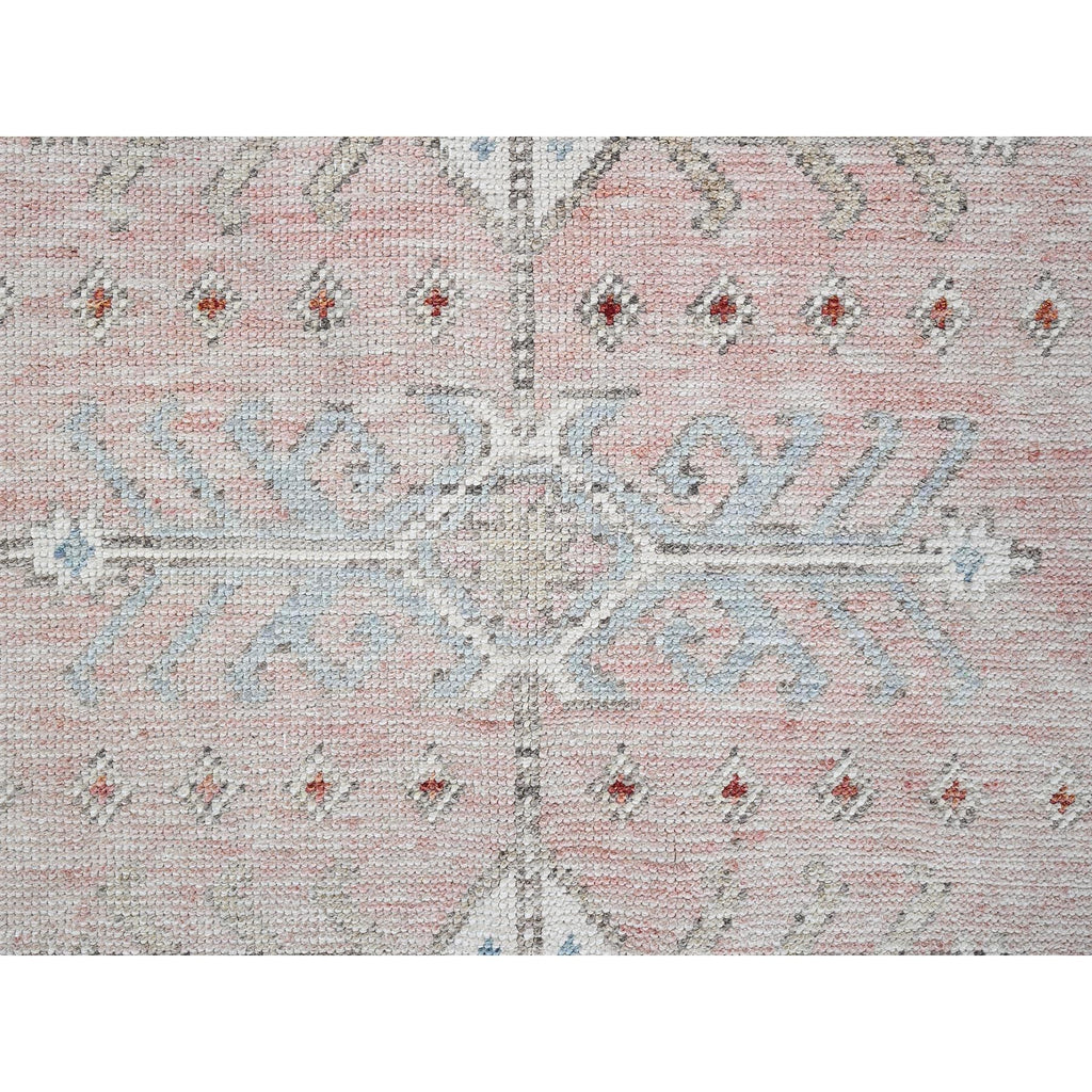 4'6"x6'9" Faded Rose, Pure Wool, Anatolian Village Inspired With Geometric Design, Cropped Low, Zero Pile, Hand Knotted, Oriental Rug FWR8514