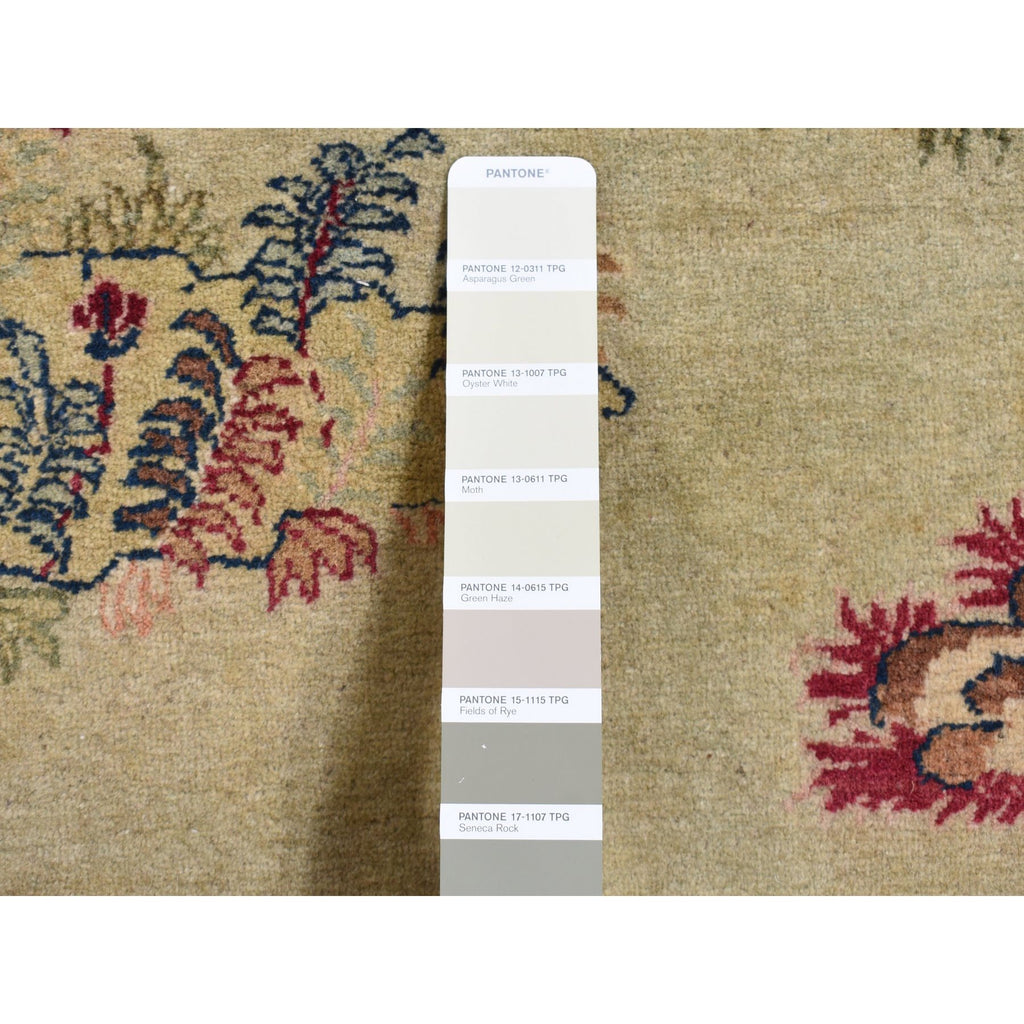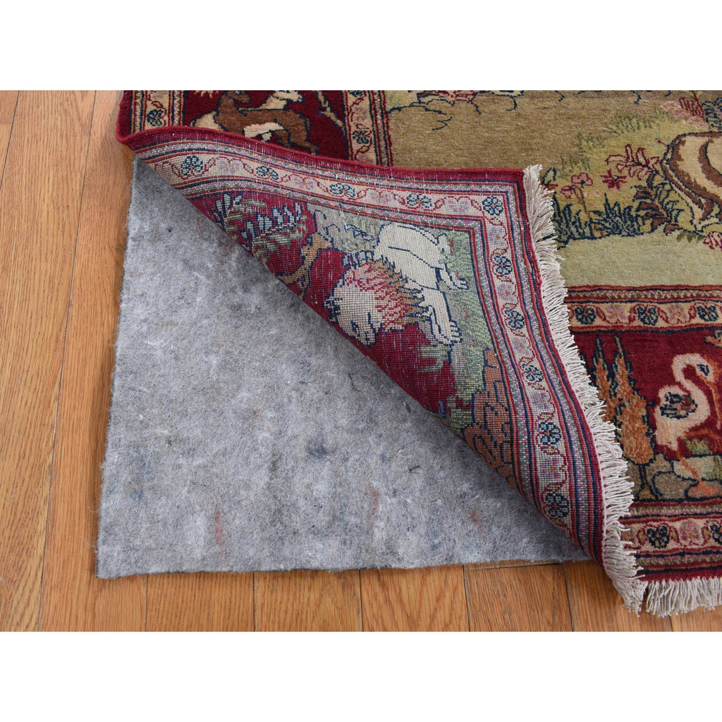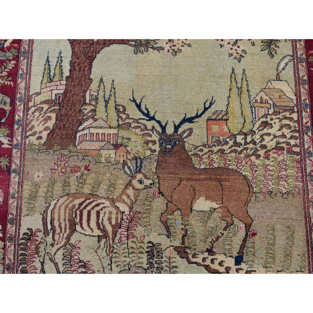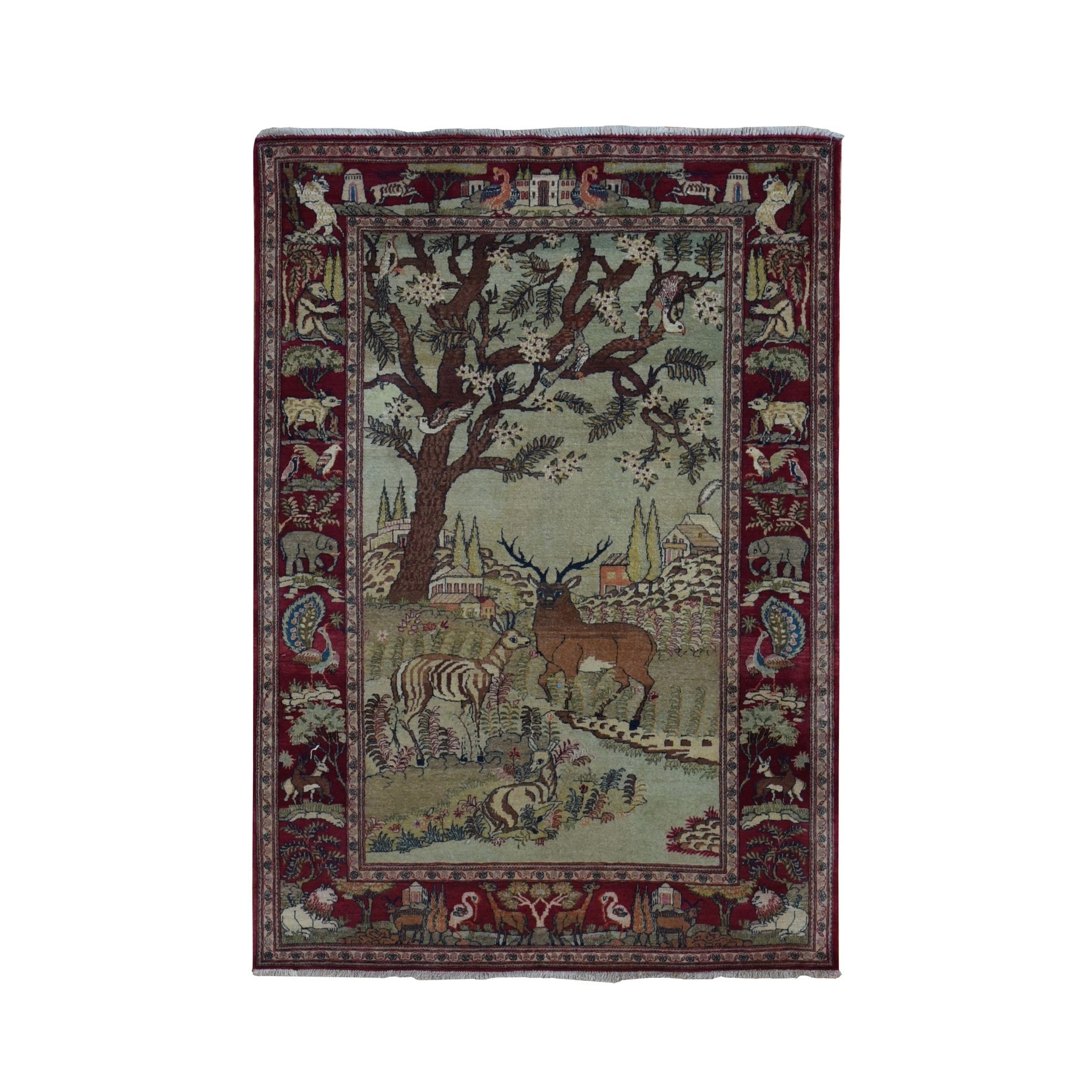 4'7"x6'7" Vanilla White, Antique Persian Pictorial Kashan With Deer, Lion, Monkey, Bird And More, Full Pile, Mint Condition, Hand Knotted, Pure Wool, Oriental Rug FWR527250