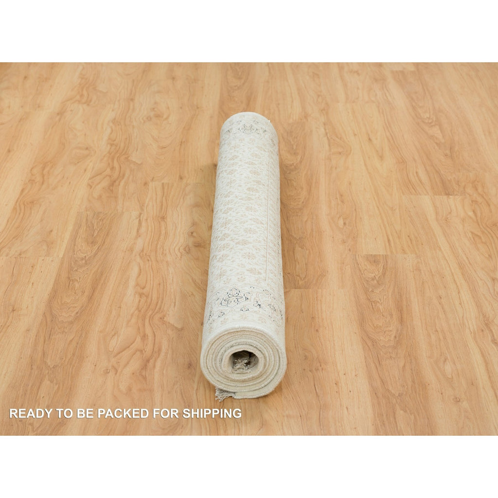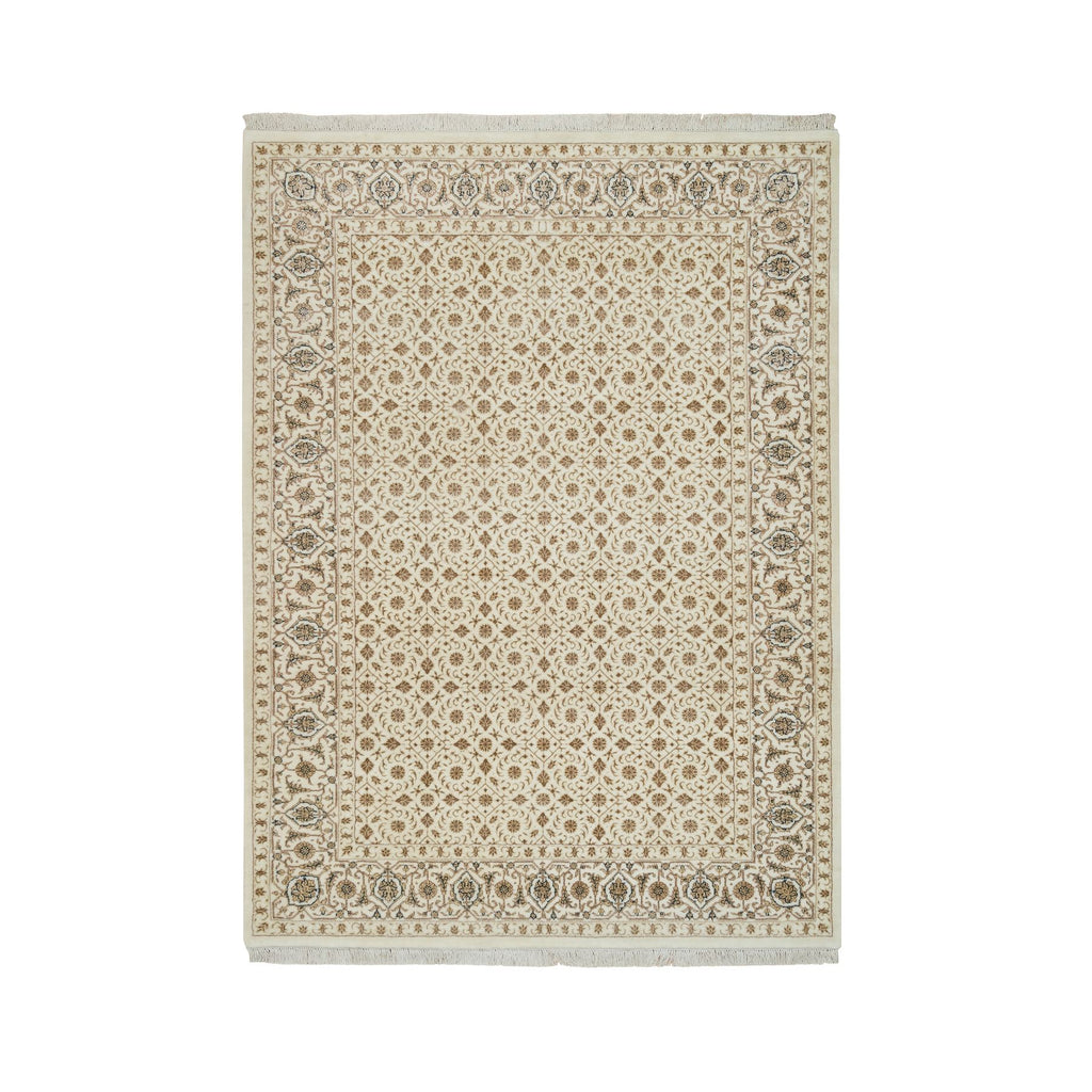 4'7"x6'8" Ivory, Herati With All Over Fish Mahi Design, 250 Kpsi Densely Woven, Natural Wool Hand Knotted, Runner Oriental Rug FWR392082