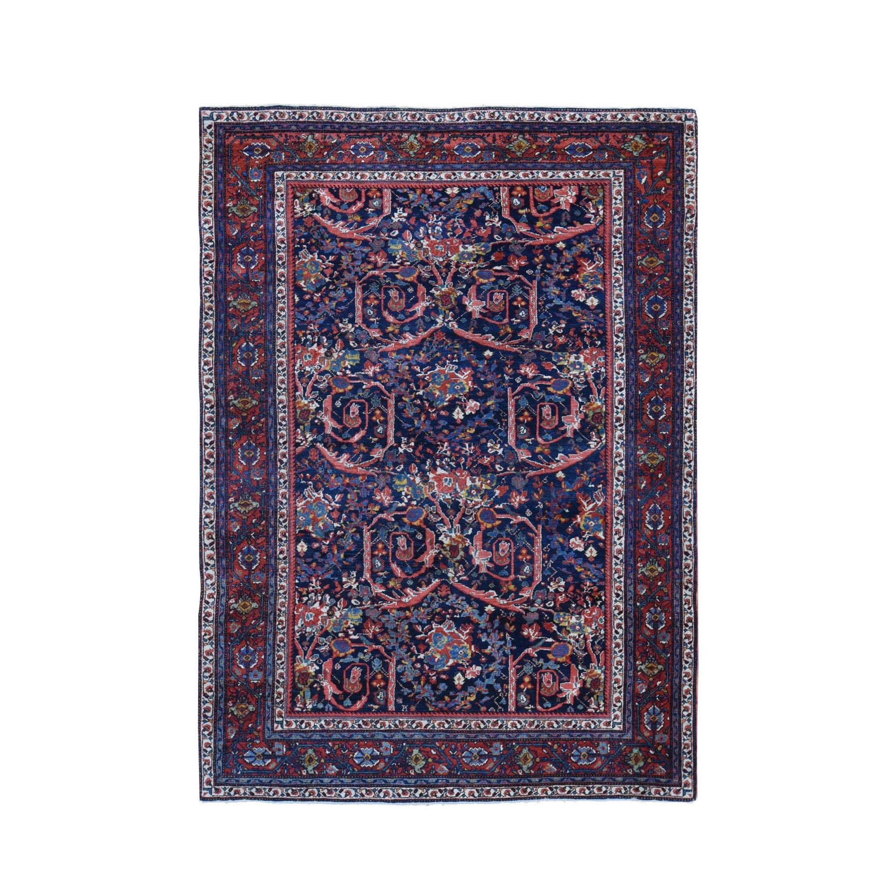 4'7"x6'9" Navy Blue, Antique Persian Tabriz Full Pile ,clean And Soft To The Touch, Rare Mustaffi Design, Pure Wool, Hand Knotted Oriental Rug FWR483030