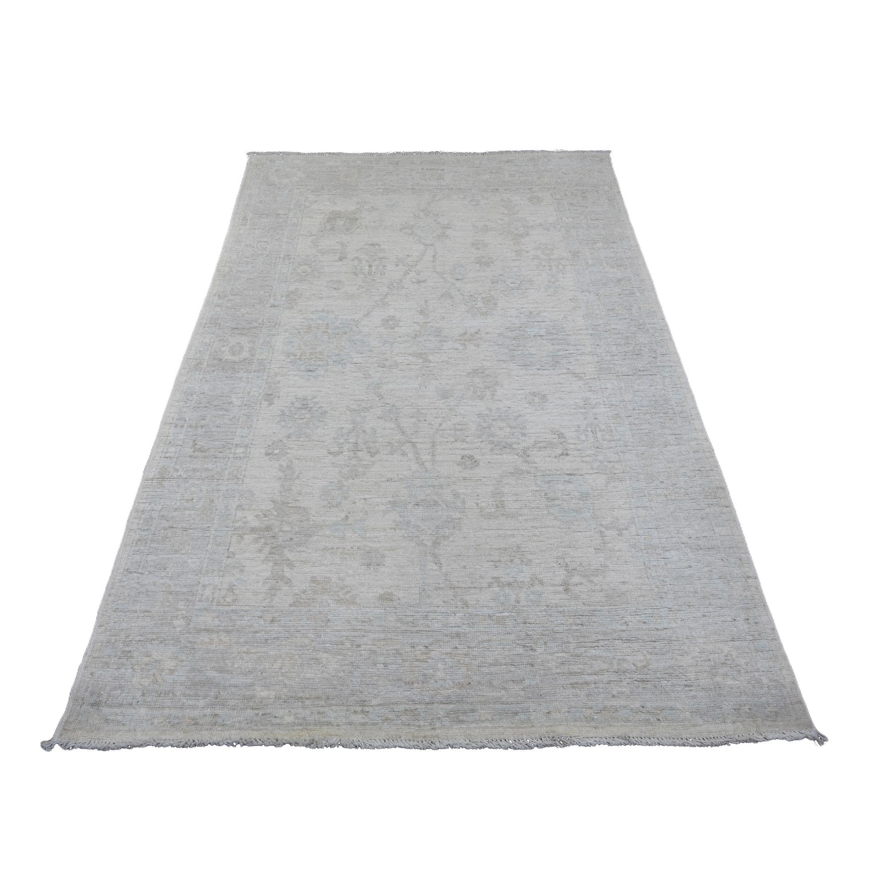 4'8"x7'2" Chiffon White, Pure Wool, Afghan Angora Oushak With All Over Pattern, Hand Knotted, Veggie Dyes, Oriental Rug FWR124662
