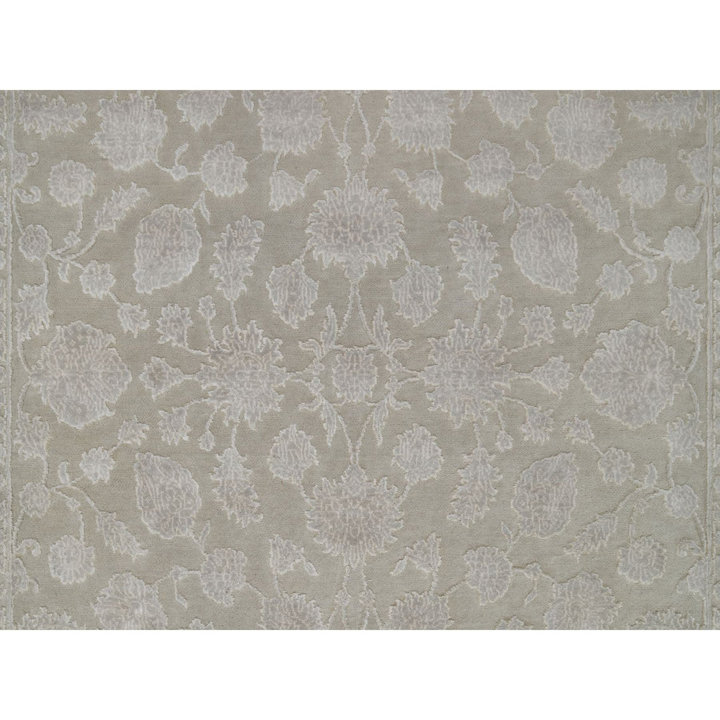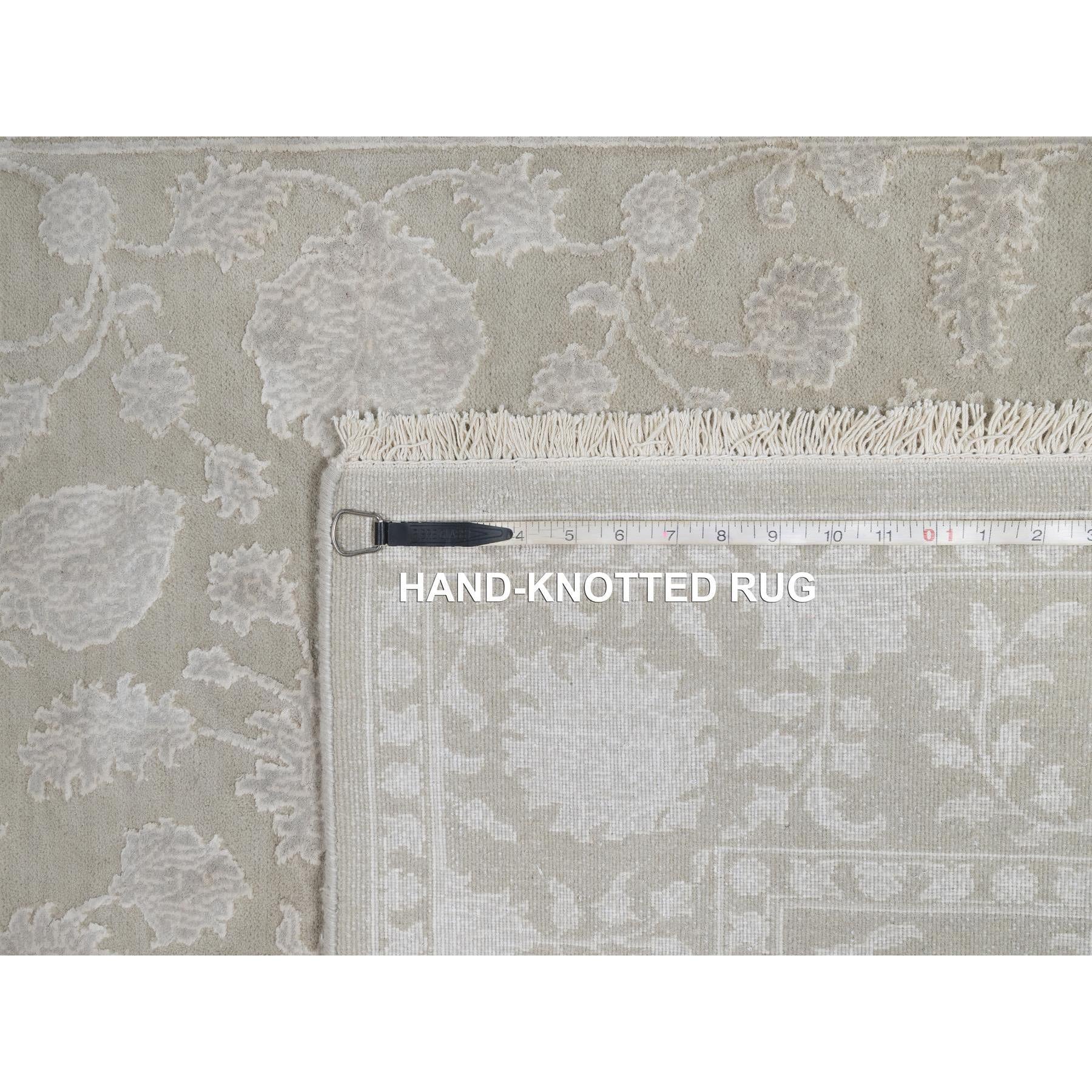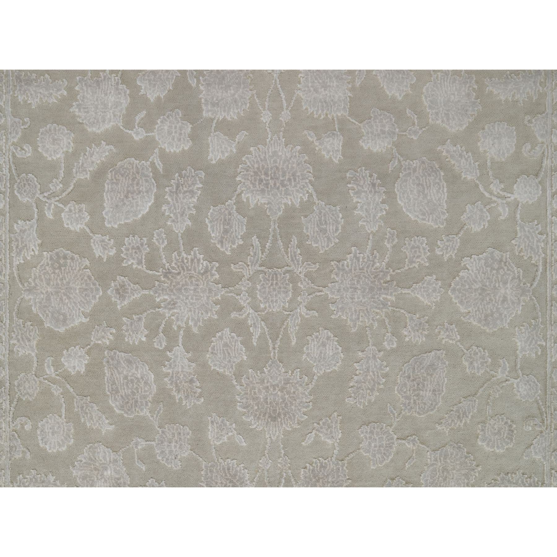 4'9"x6'10" Stone Gray, 200 Kpsi, Light Tone On Tone With Persian Design, Wool And Plant Based Silk, Thick And Plush, Hand Knotted, Oriental Rug FWR548136