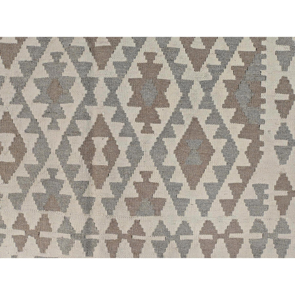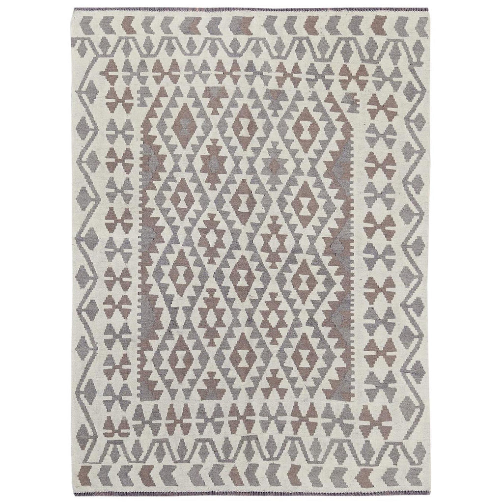 4'9"x6'5" Ivory, Veggie Dyes Organic Wool Hand Woven, Afghan Kilim With Geometric Elements Flat Weave, Reversible Oriental Rug FWR490968