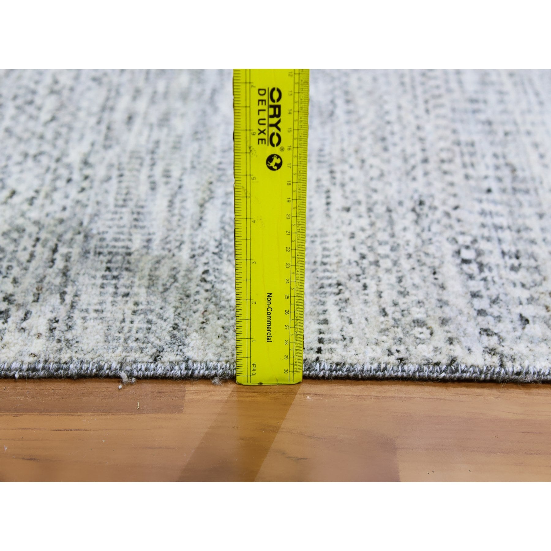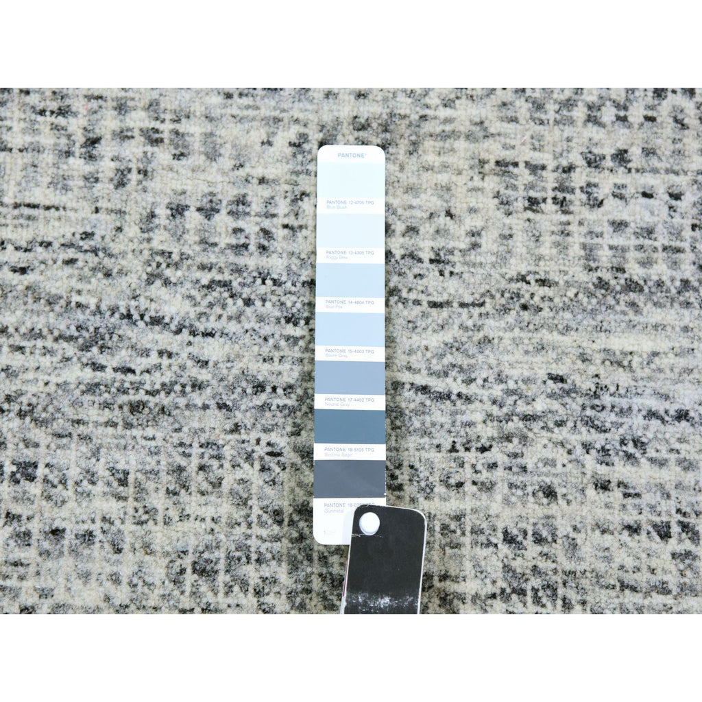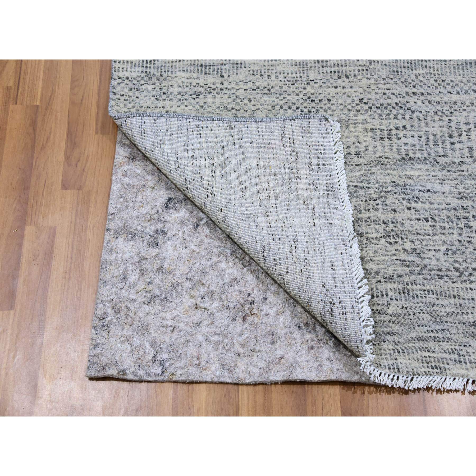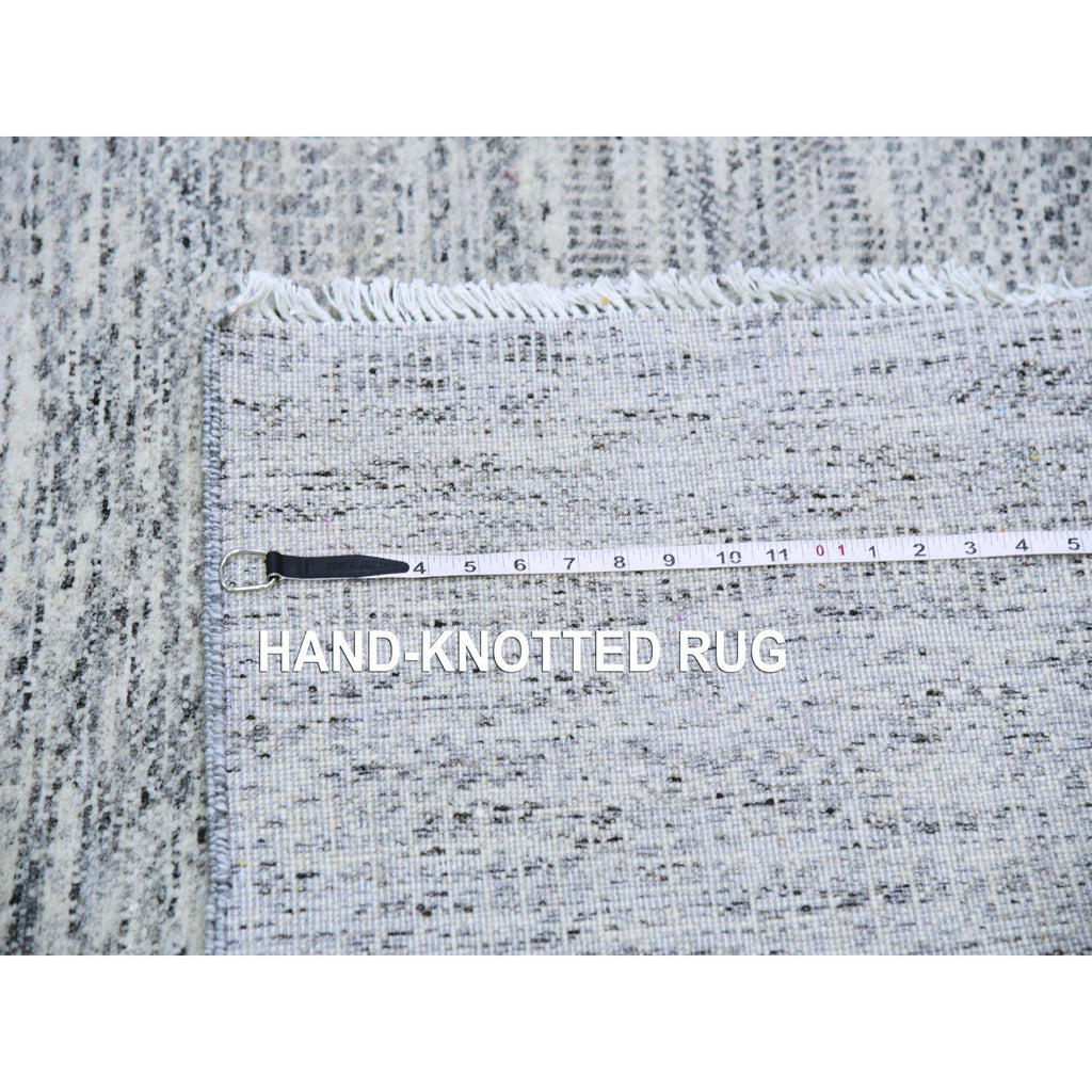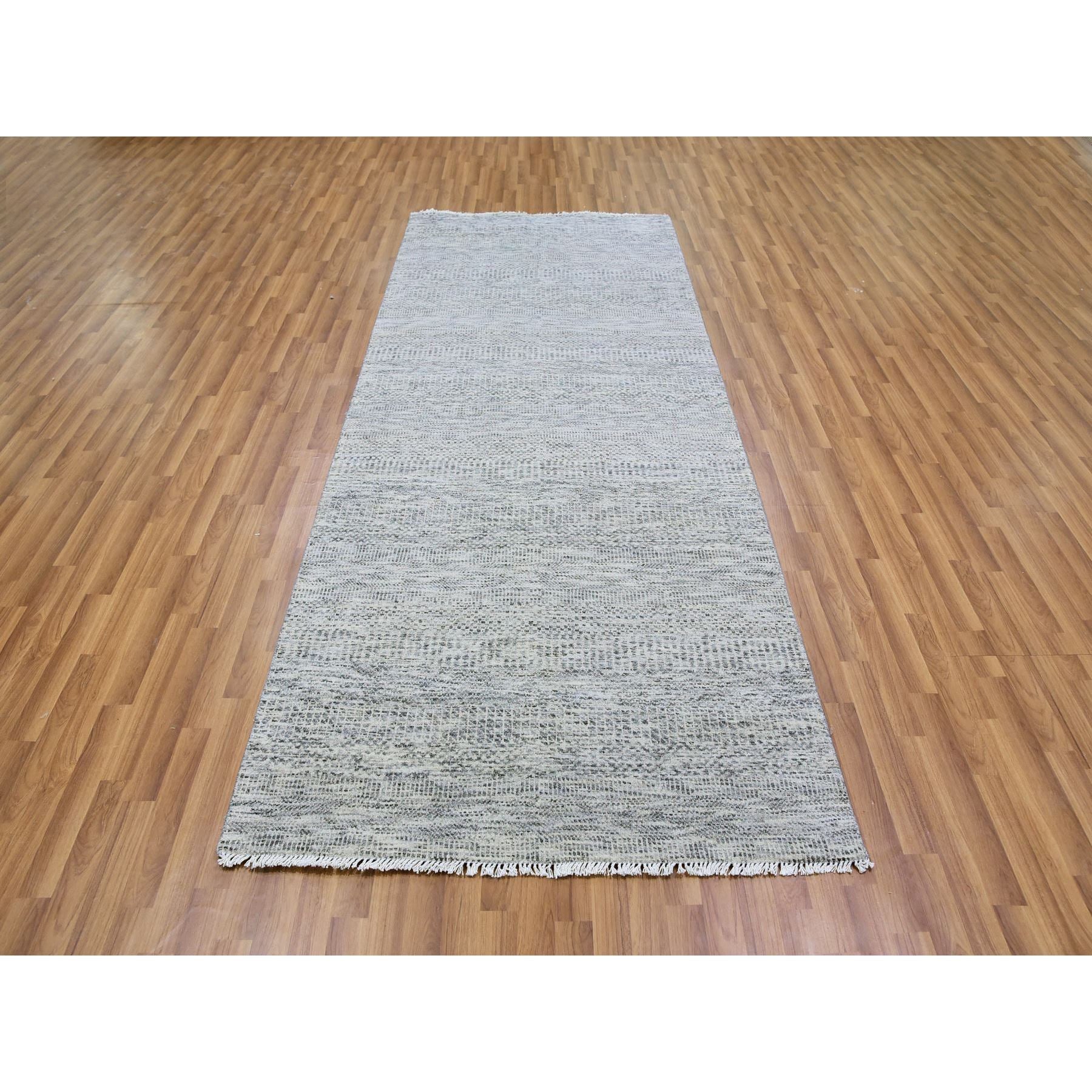 4'x10'1" Silver Gray, 100% Undyed Wool, Tone On Tone, Modern Grass Design, Hand Knotted, Wide Runner Oriental Rug FWR477132