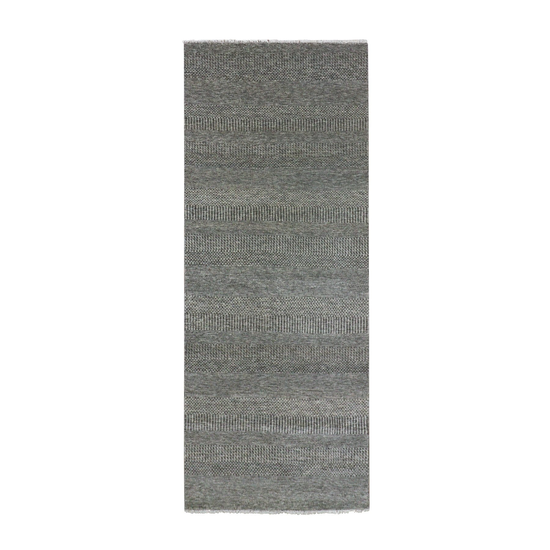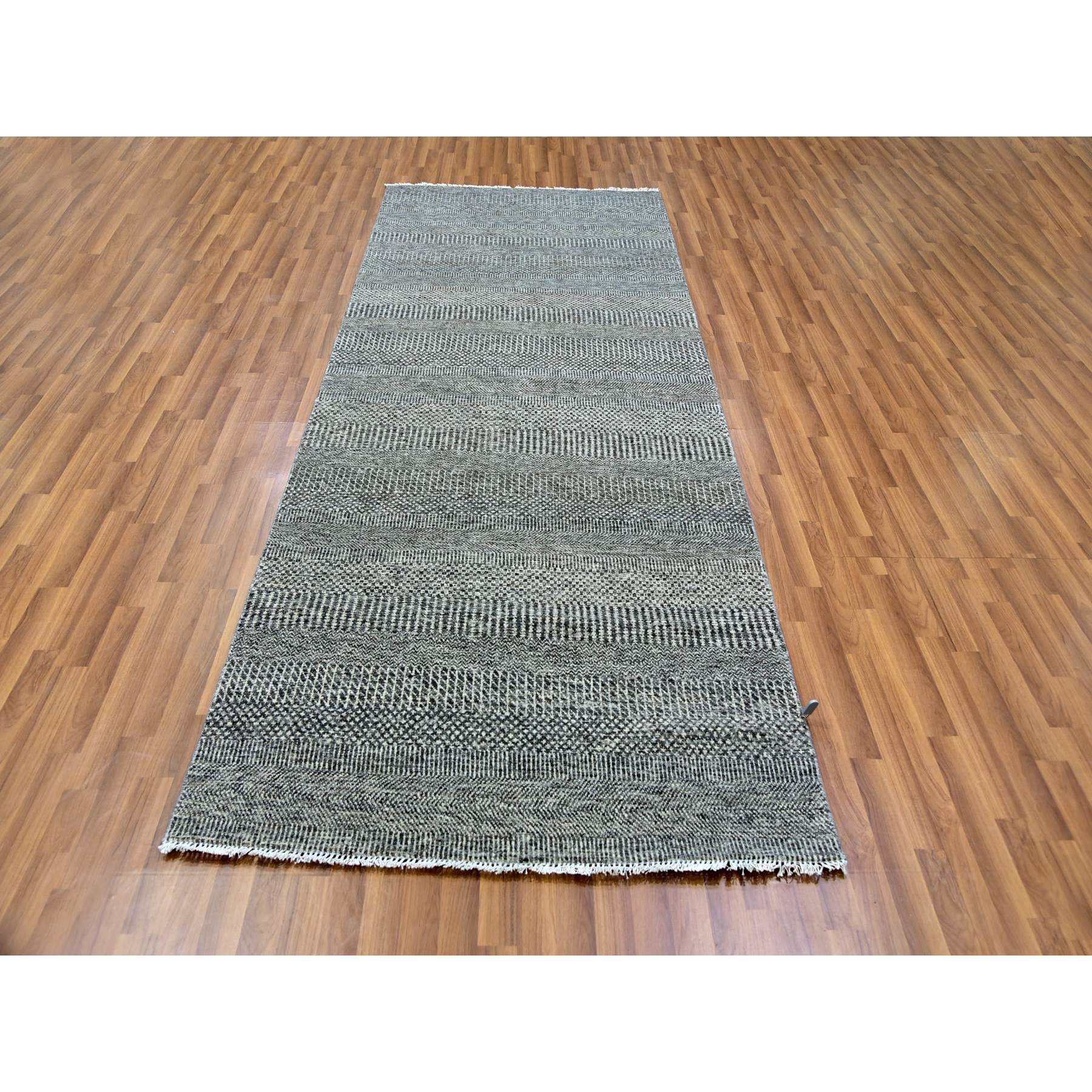 4'x10'2" Dovetail Gray, Modern Organic Undyed Wool Grass Design, Tone On Tone, Hand Knotted Wide Runner Oriental Rug FWR479334