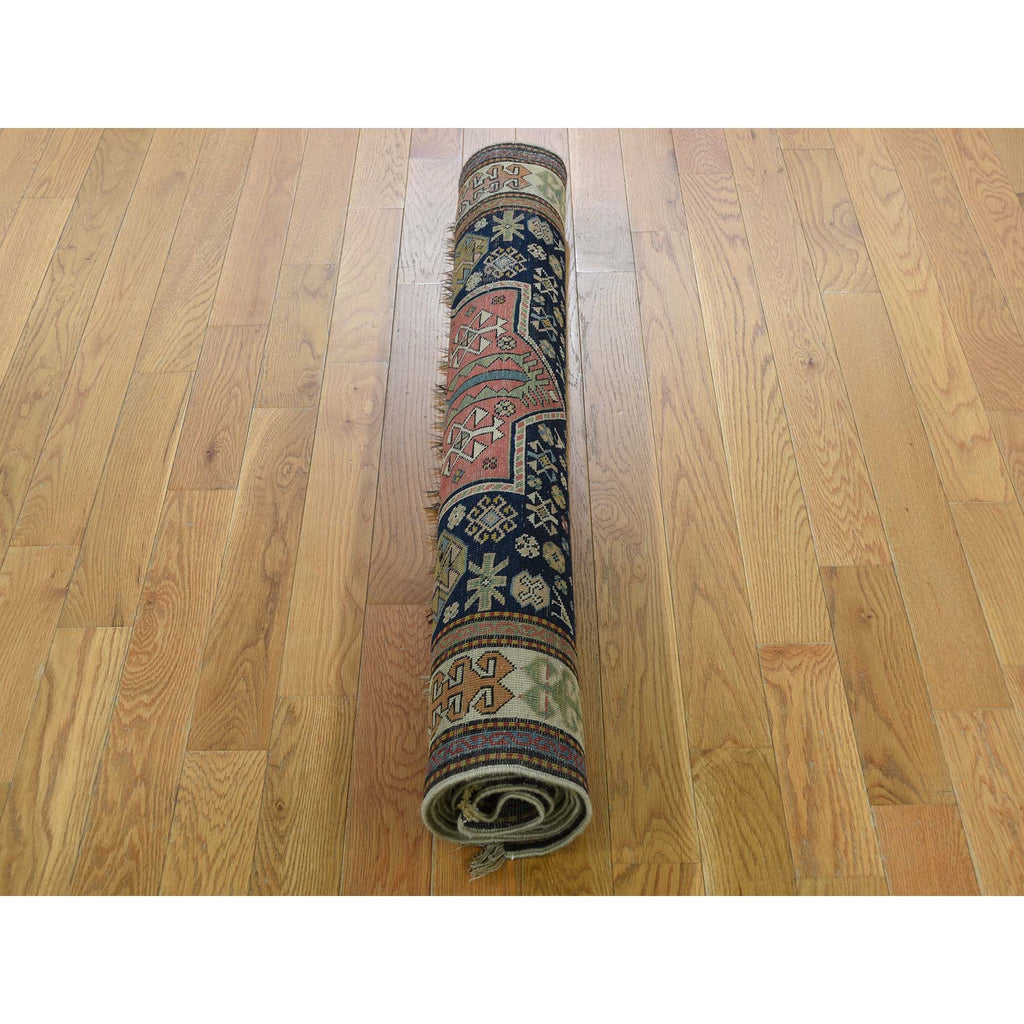 4'x10'4" Blue Akstafa Design Antique Caucasian Wide Runner Hand-knotted Pure Wool Oriental Rug FWR257196