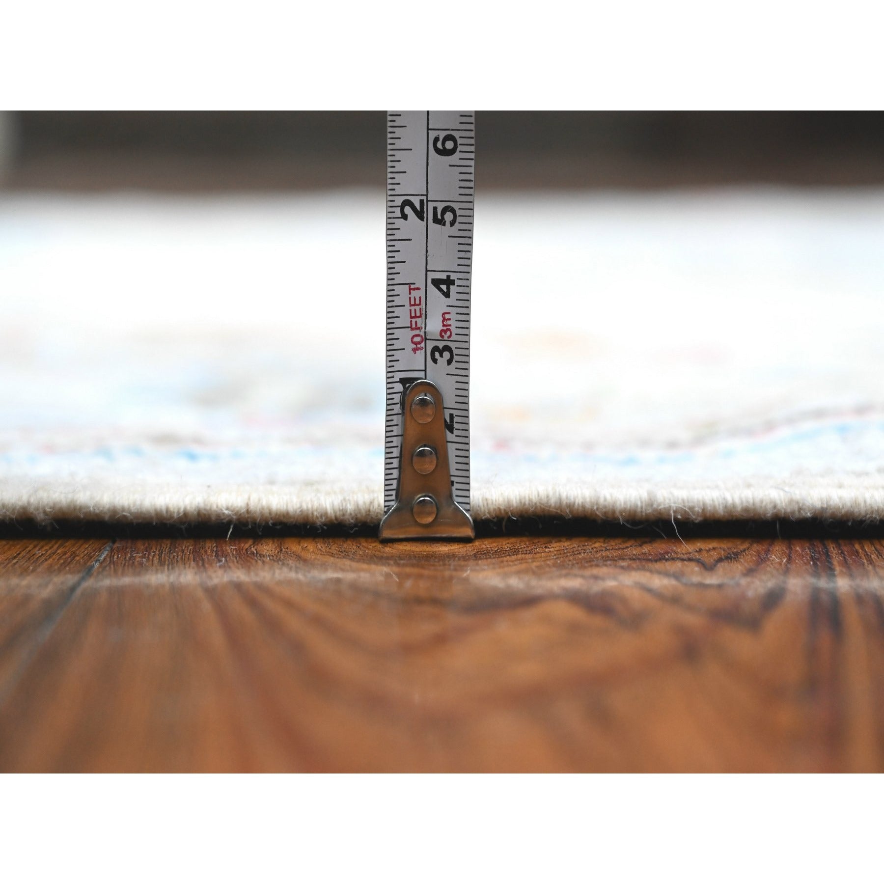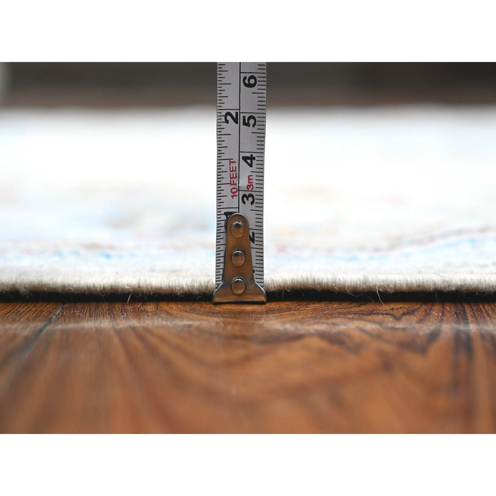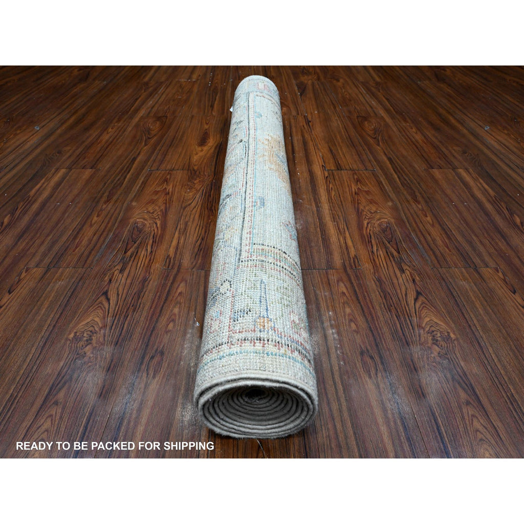 4'x10'8" Beau Blue, Hand Knotted, Soft Pile, Wool Weft, Vivid Rural Elements All Over Design, Natural Dyes, Afghan Angora Oushak, Wide Gallery Runner Oriental Rug FWR535740
