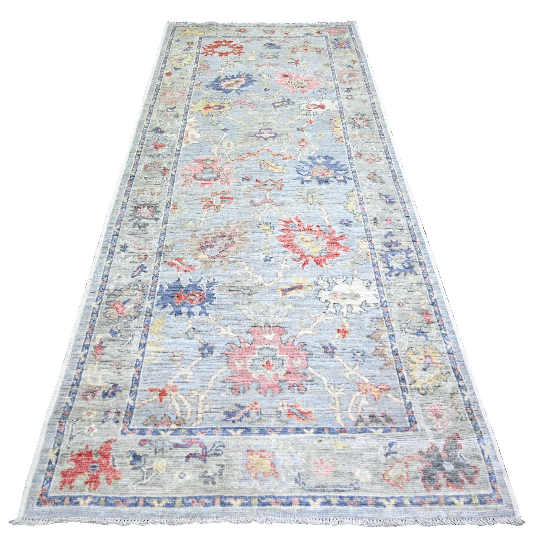 4'x10' Cadet Gray, Afghan Angora Oushak With Colorful Motifs Natural Dyes, Pure Wool Hand Knotted, Wide Runner Oriental Rug FWR441582