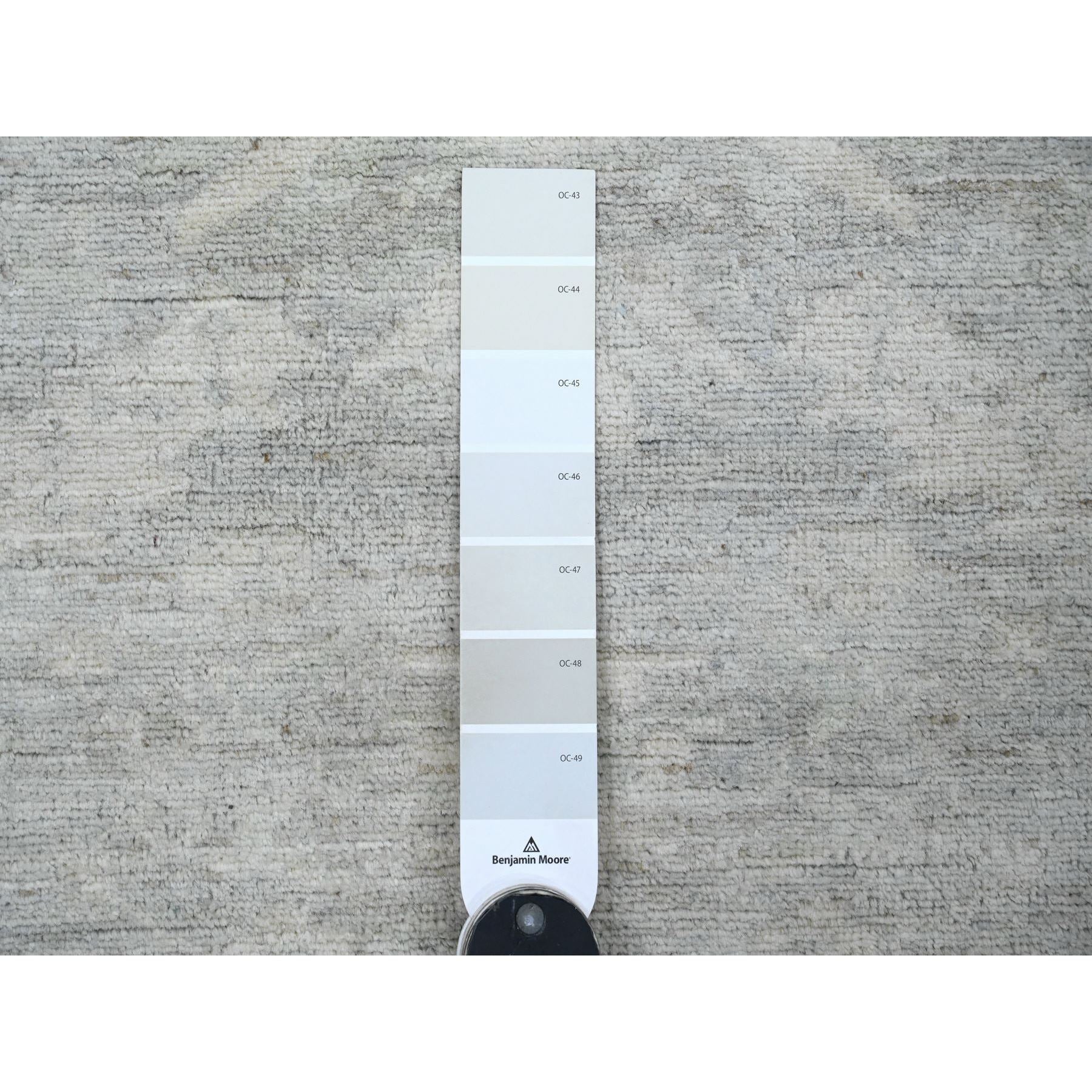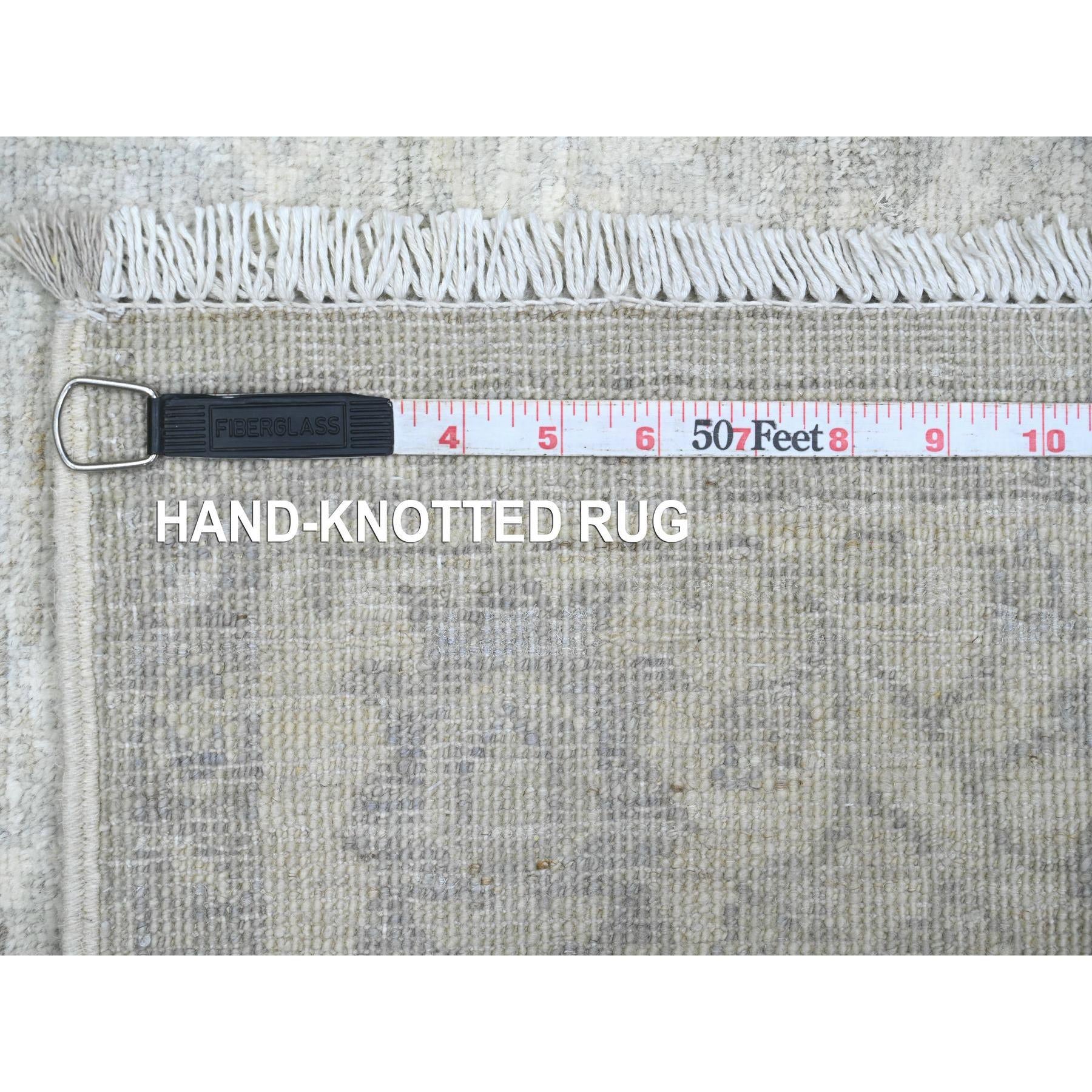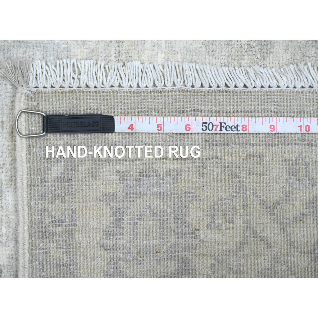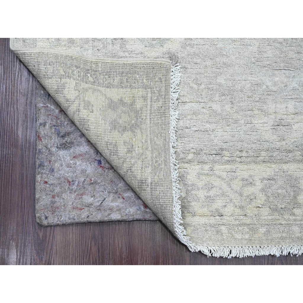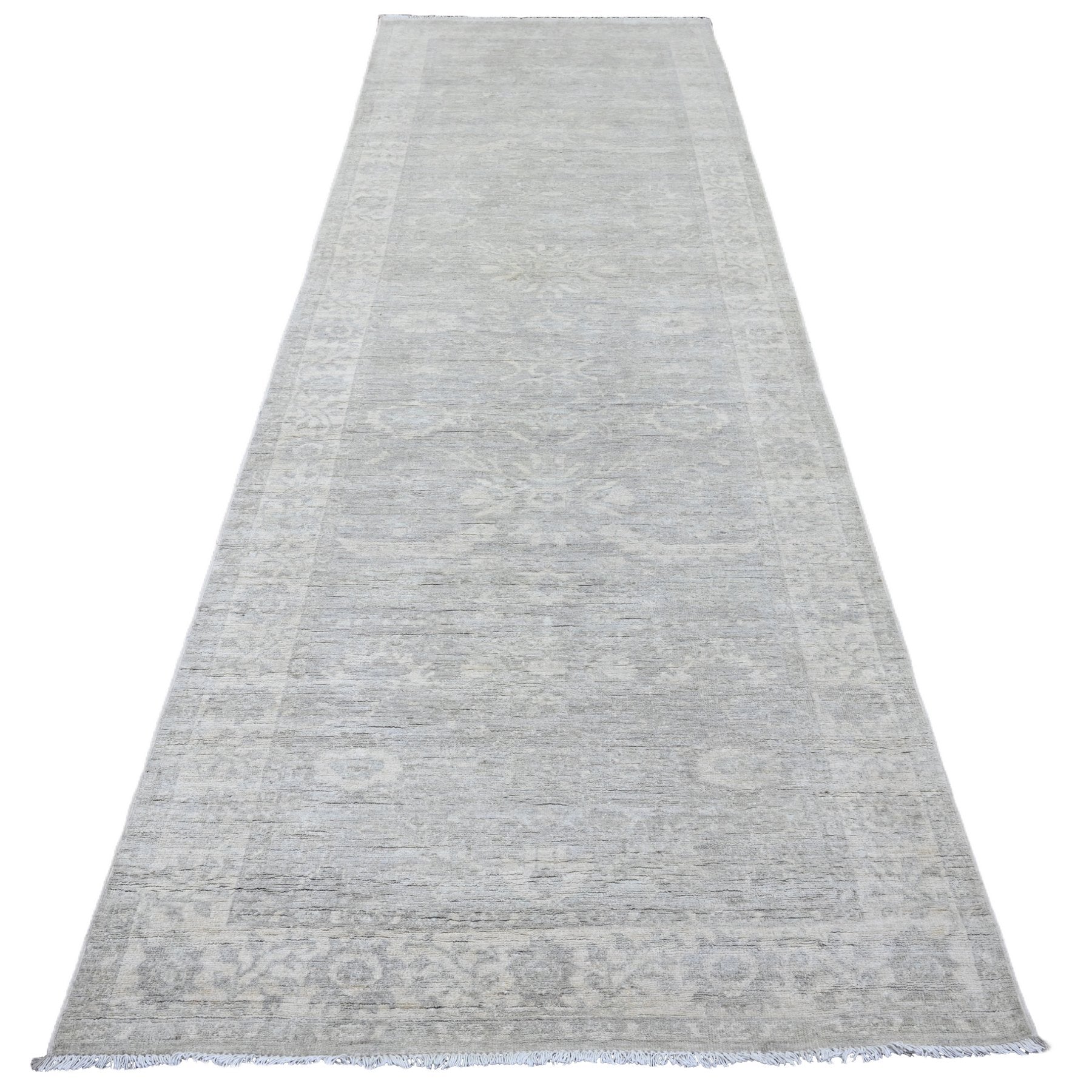 4'x11'10" Medium Gray, Washed Out Peshawar With Heriz All Over Design, High Mountain Wool, Hand Knotted, Densely Woven, Wide Runner, Oriental Rug FWR125916