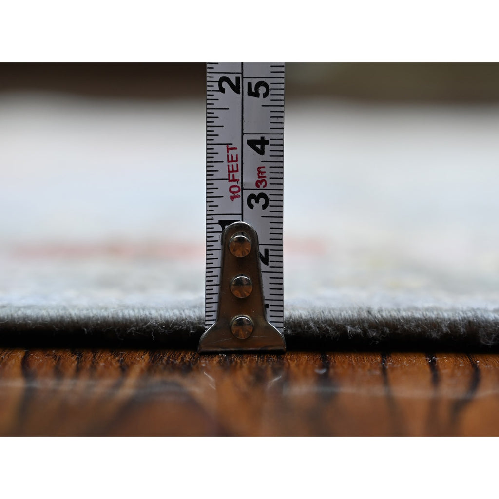 4'x11'7" Blue Gray, Pure Wool, Hand Knotted, Afghan Angora Oushak With Leaf Design, Vegetable Dyes Wide Runner Oriental Rug FWR439776
