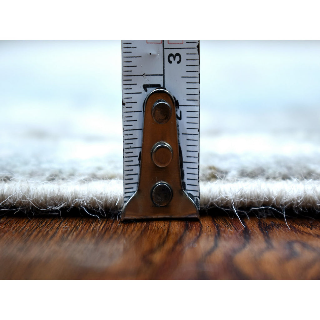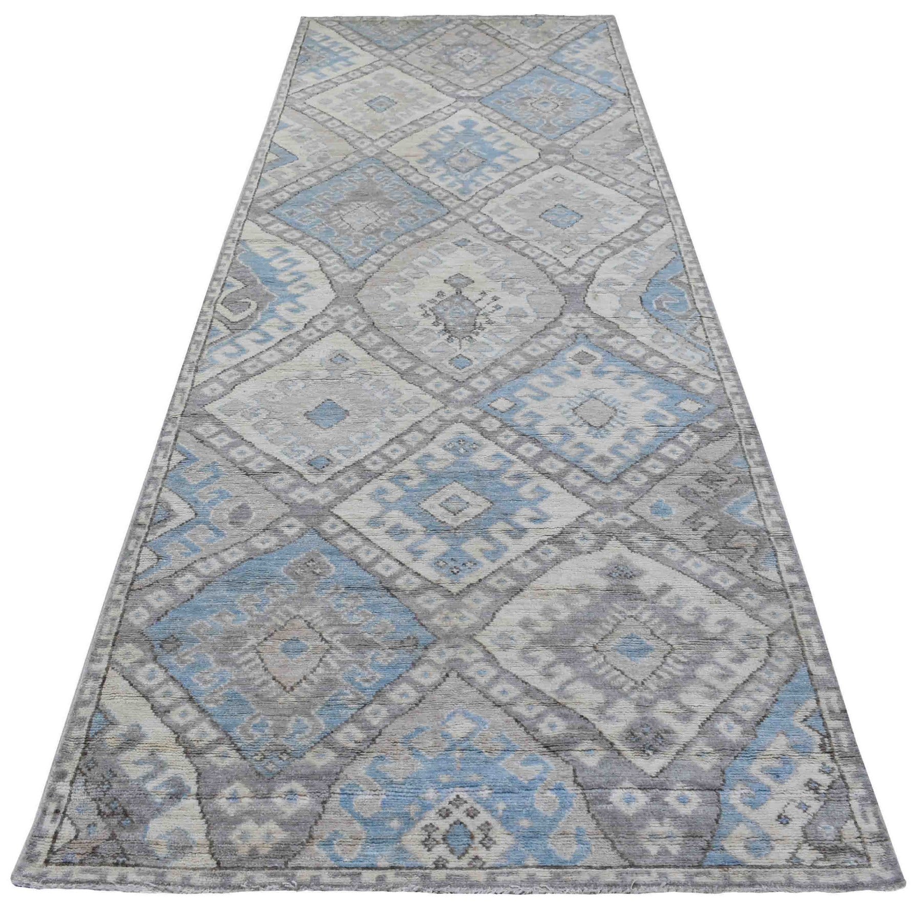 4'x11'7" Gray With Pop Of Blue Anatolian Village Inspired Geometric Design Hand Knotted Organic Wool Oriental Wide Runner Rug FWR411624