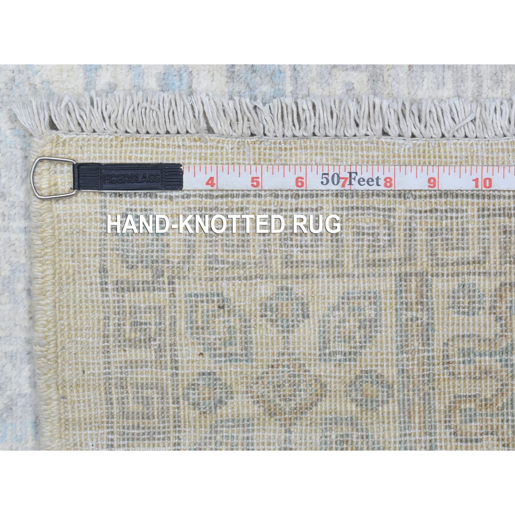 4'x11'8" Ivory, White Wash Peshawar With Geometric Design Natural Dyes, Organic Wool Hand Knotted, Wide Runner Oriental Rug FWR436980
