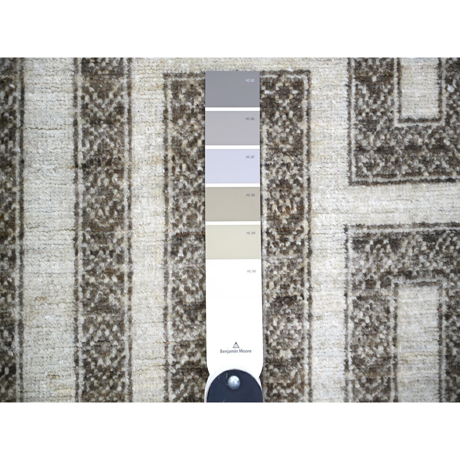 4'x11'8" Taupe Brown, Hand Knotted Extra Soft Wool, Natural Dyes Fine Peshawar With Intricate Geometric Motifs Maze Design, Runner Oriental Rug FWR445596