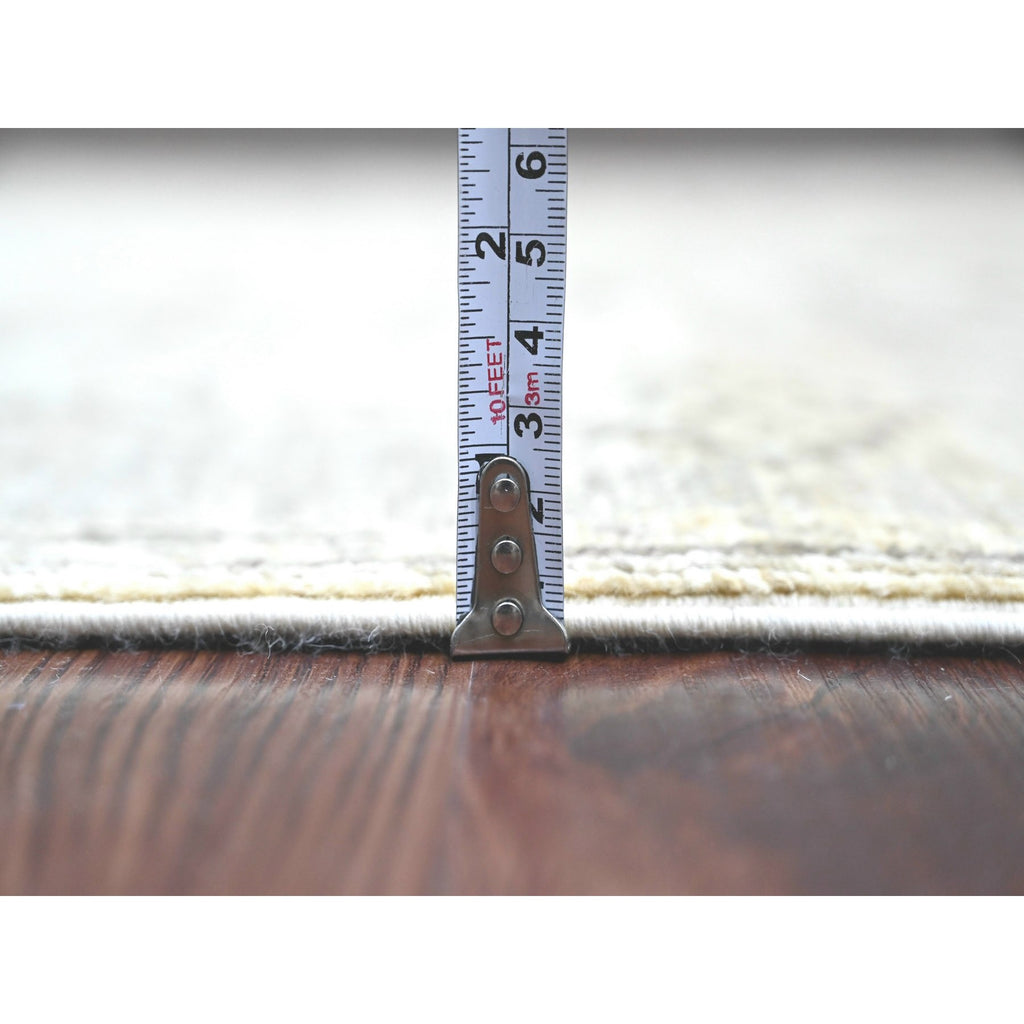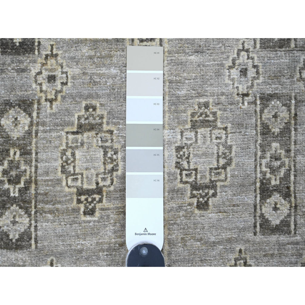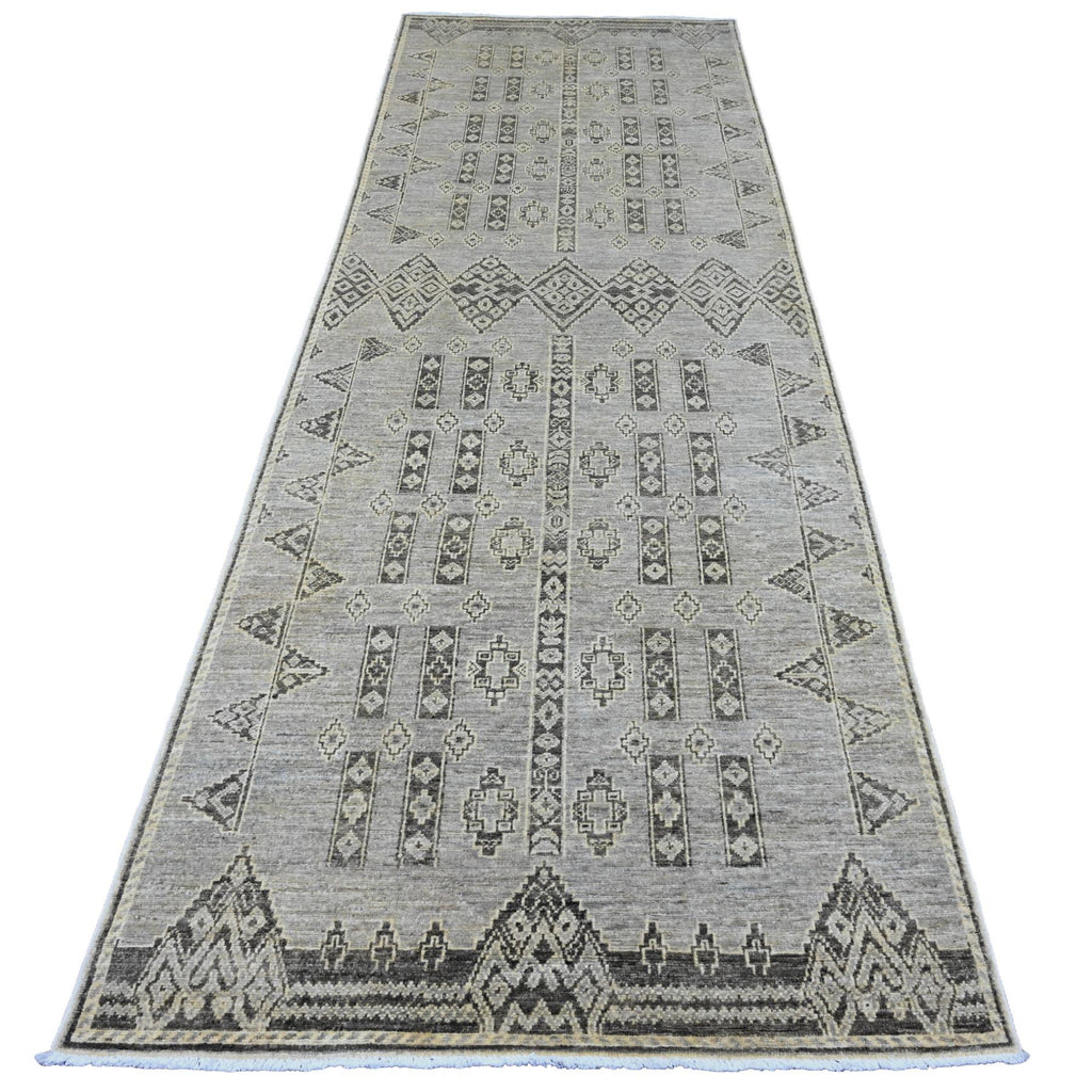 4'x11'9" Medium Gray, Intricate Geometric Design, Berber Influence, Denser Weave, High Mountain Wool, Hand Knotted, Wide Runner, Oriental Rug FWR124938