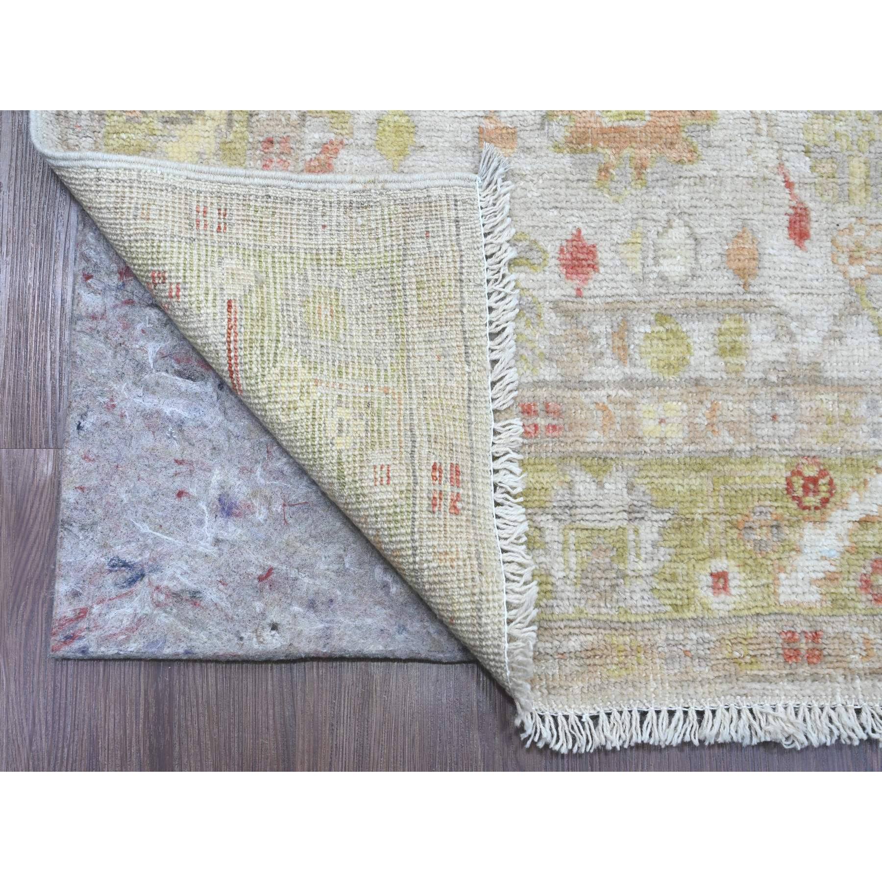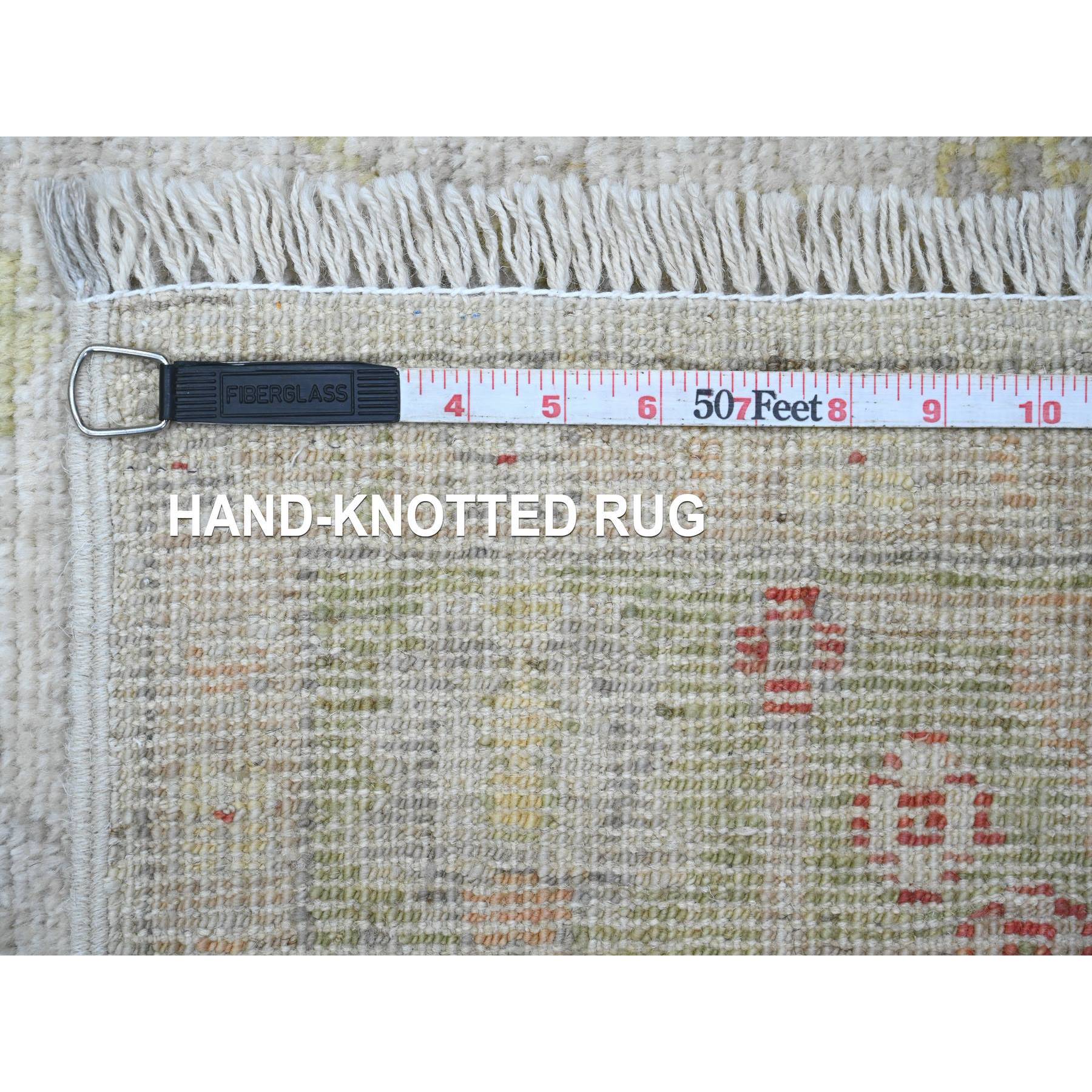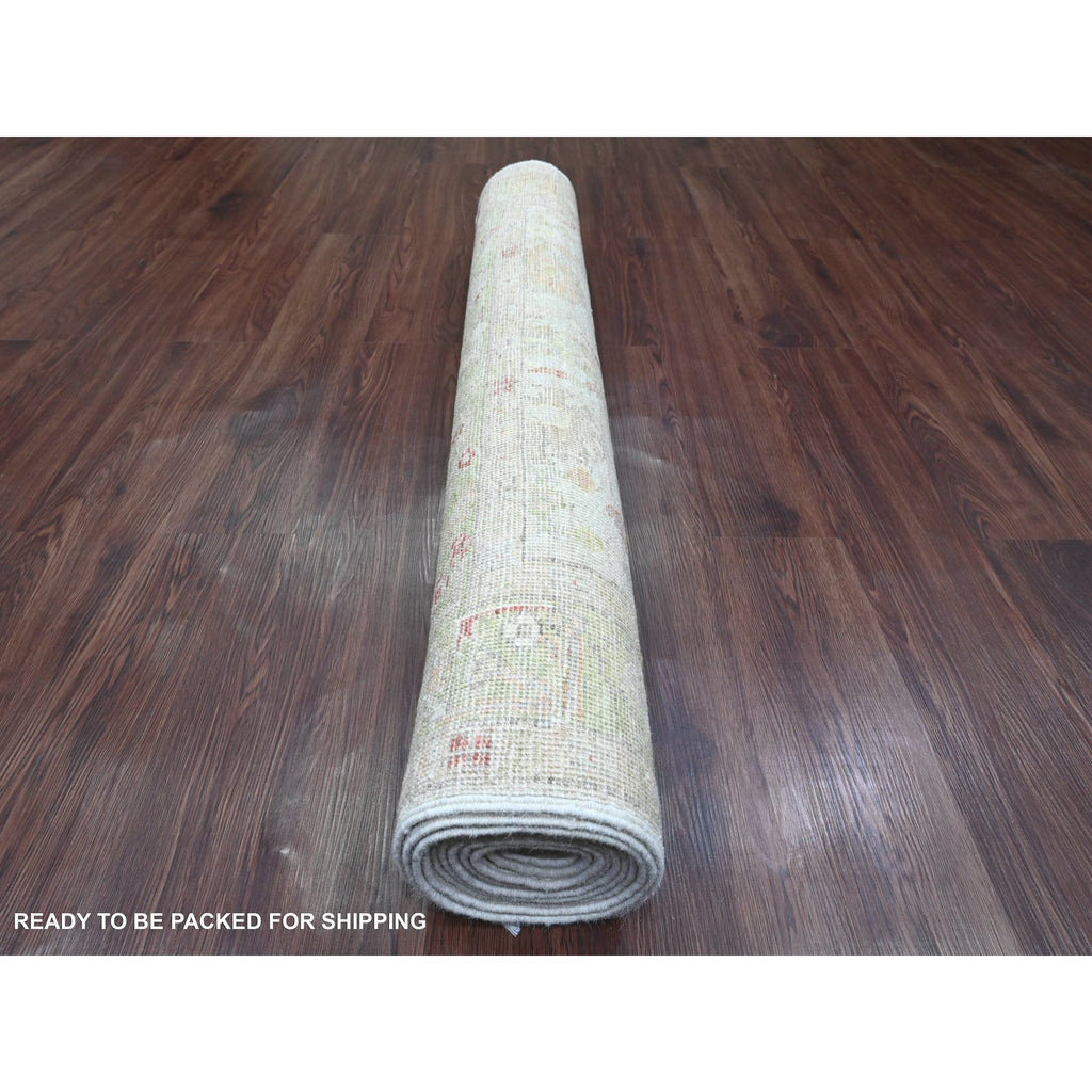 4'x11'9" Oyster White, Hand Knotted, Afghan Angora Oushak With All Over Leaf Design, Vegetable Dyes, 100% Wool, Wide Runner, Oriental Rug FWR123426