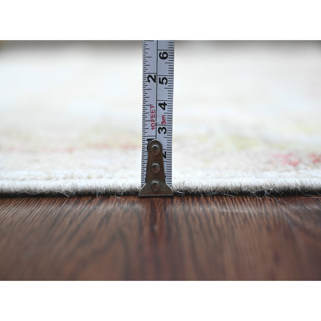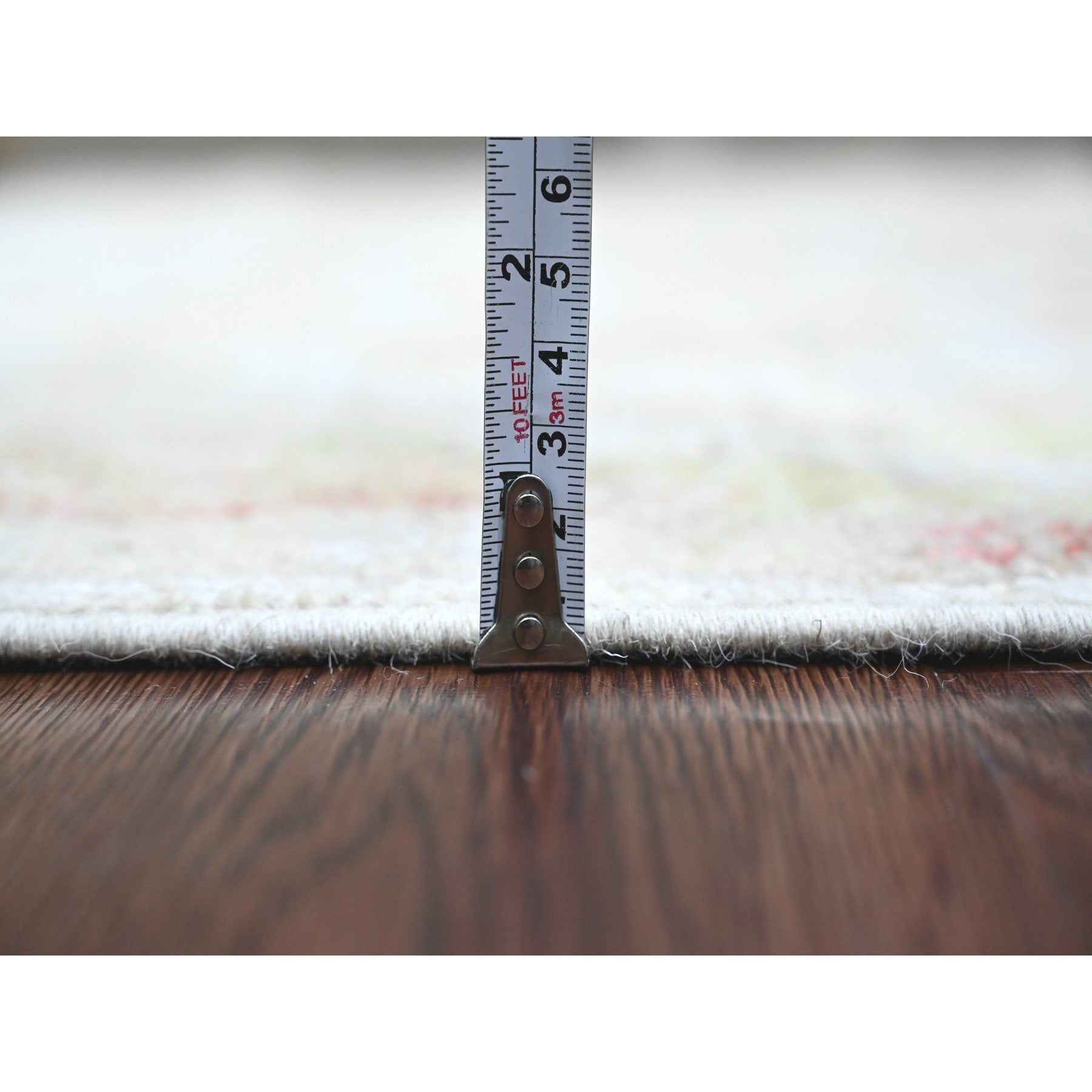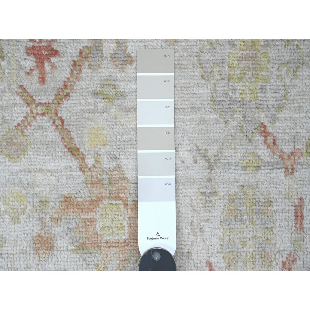 4'x11'9" Oyster White, Hand Knotted, Afghan Angora Oushak With All Over Leaf Design, Vegetable Dyes, 100% Wool, Wide Runner, Oriental Rug FWR123426