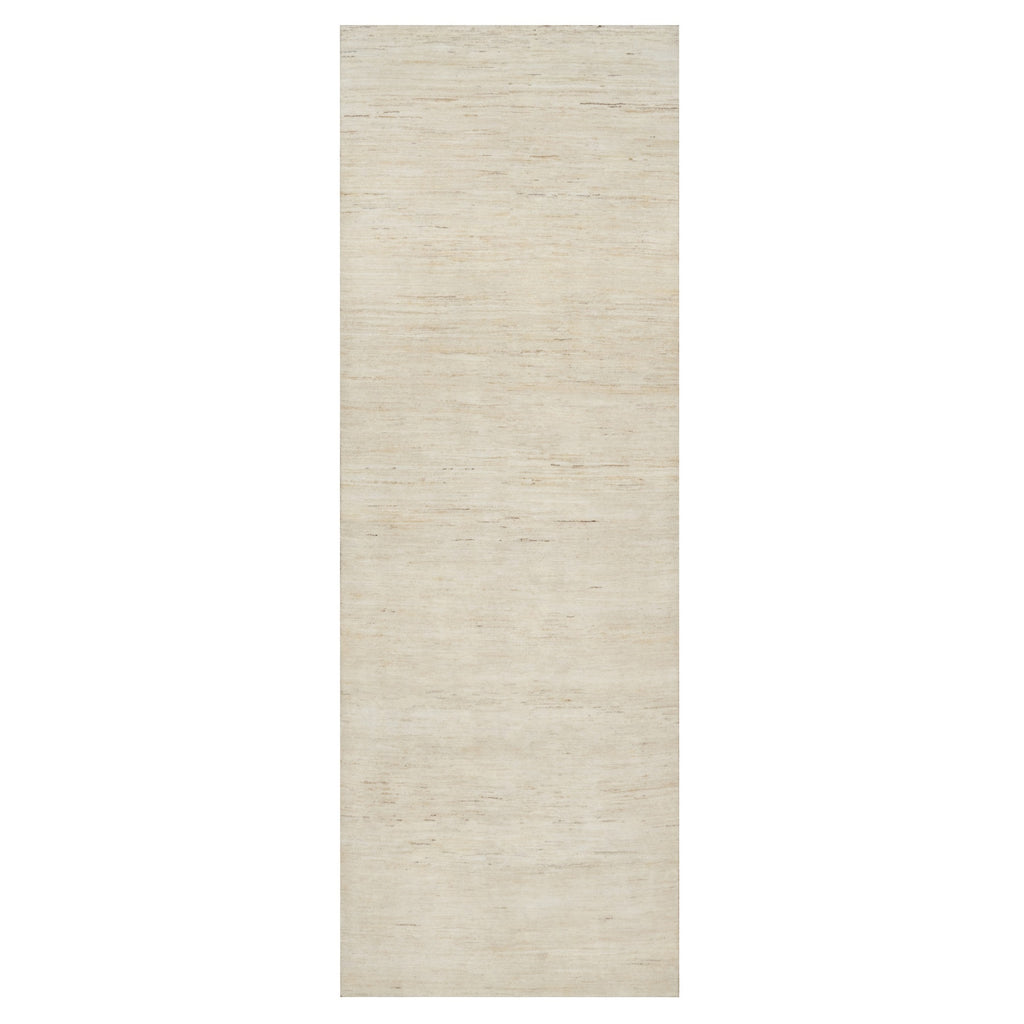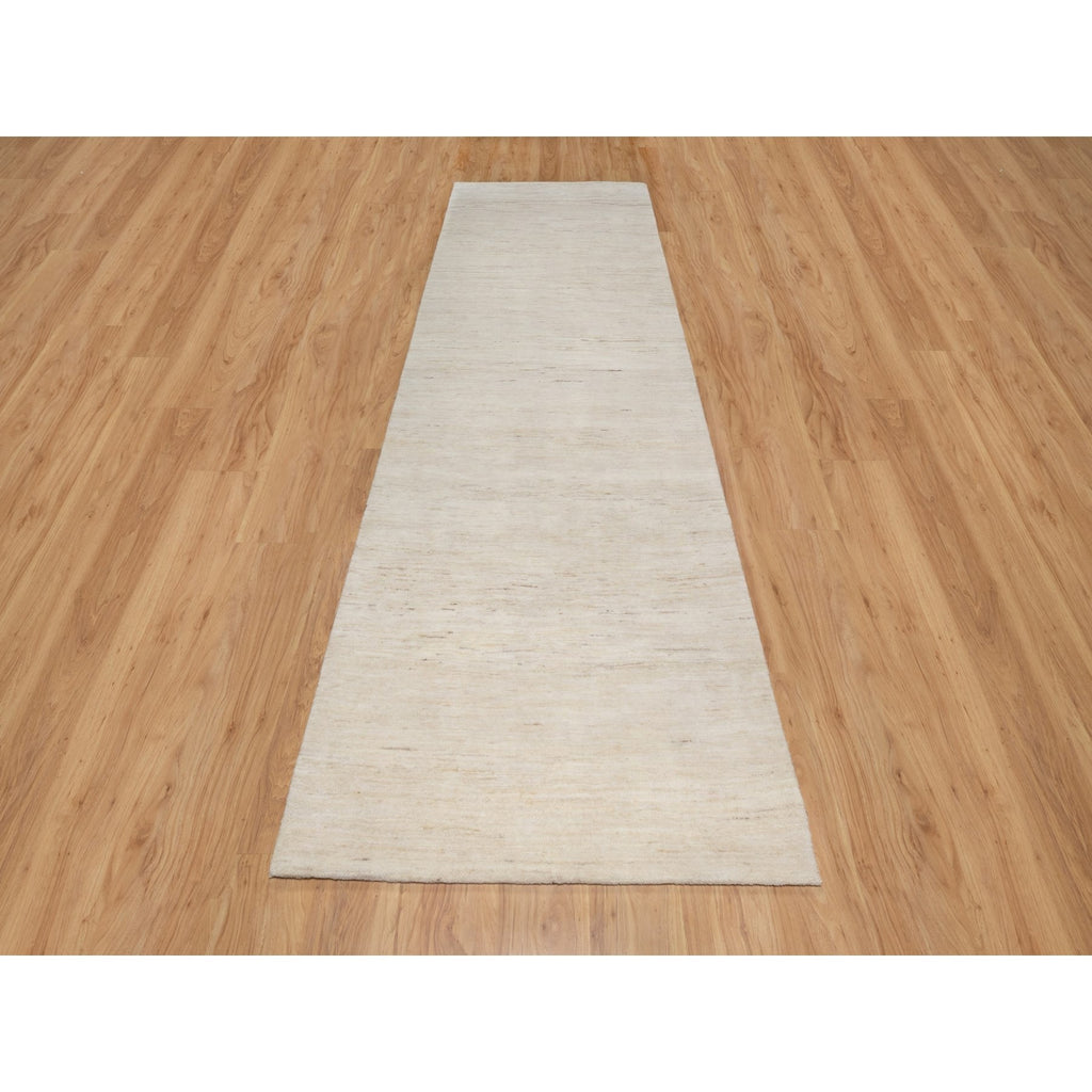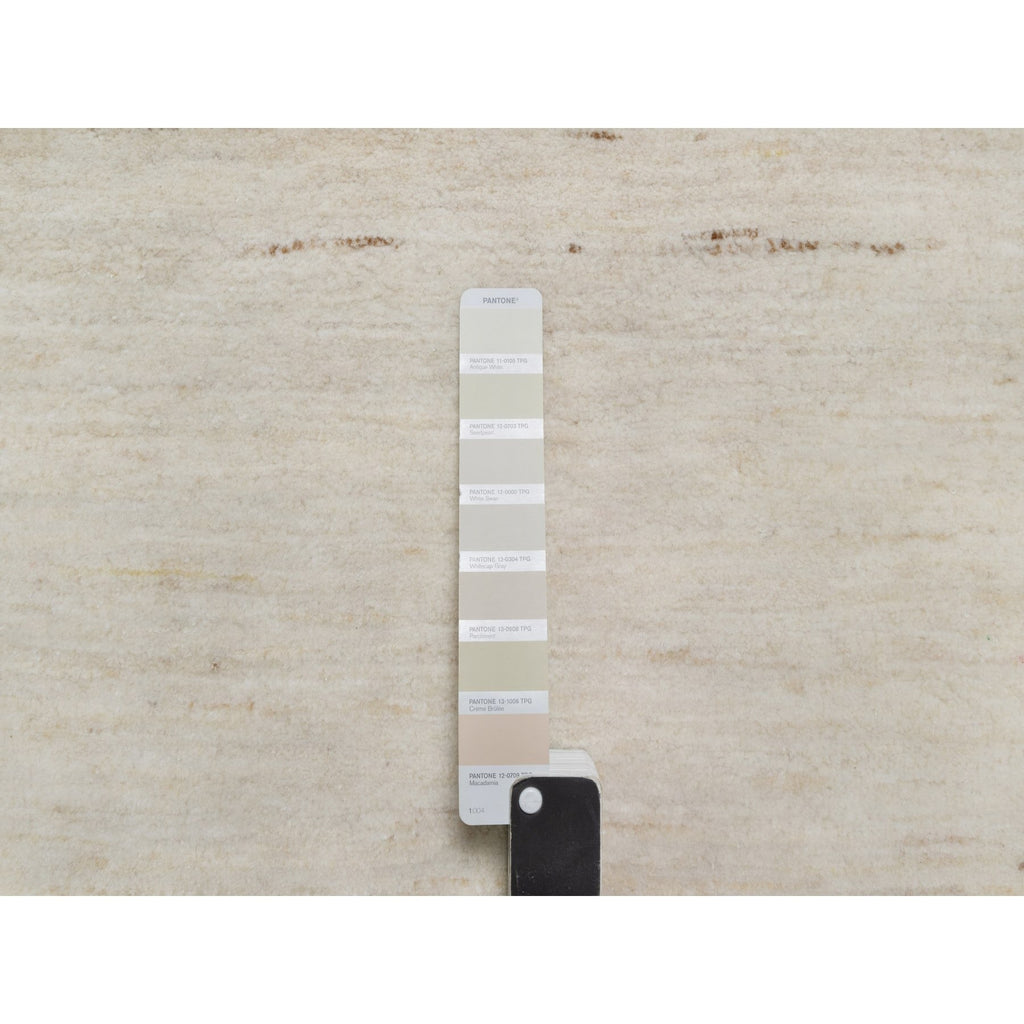 4'x12'1" Parchment White, Hand Knotted, Lori Buft Gabbeh, Modern, Thick And Plush, Plain Design, 100% Wool, Wide Runner, Oriental Rug FWR544662