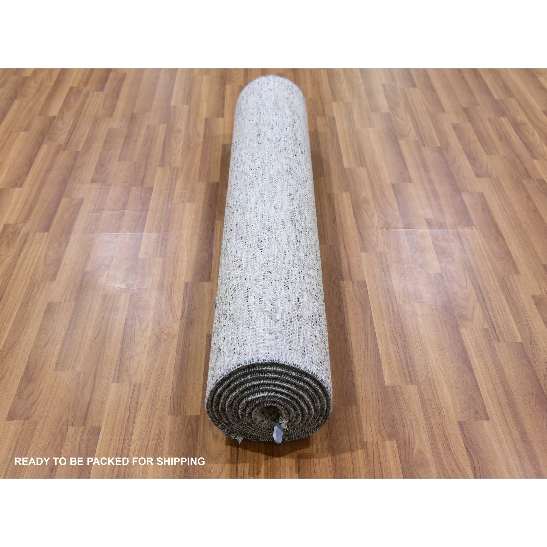 4'x12'2" Medium Gray, Tone On Tone, Modern Grass Design, Organic Undyed Wool, Hand Knotted, Wide Runner Oriental Rug FWR477180