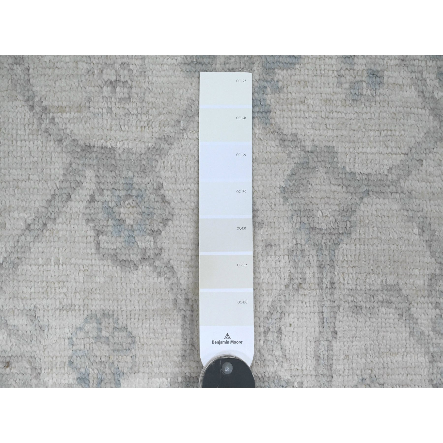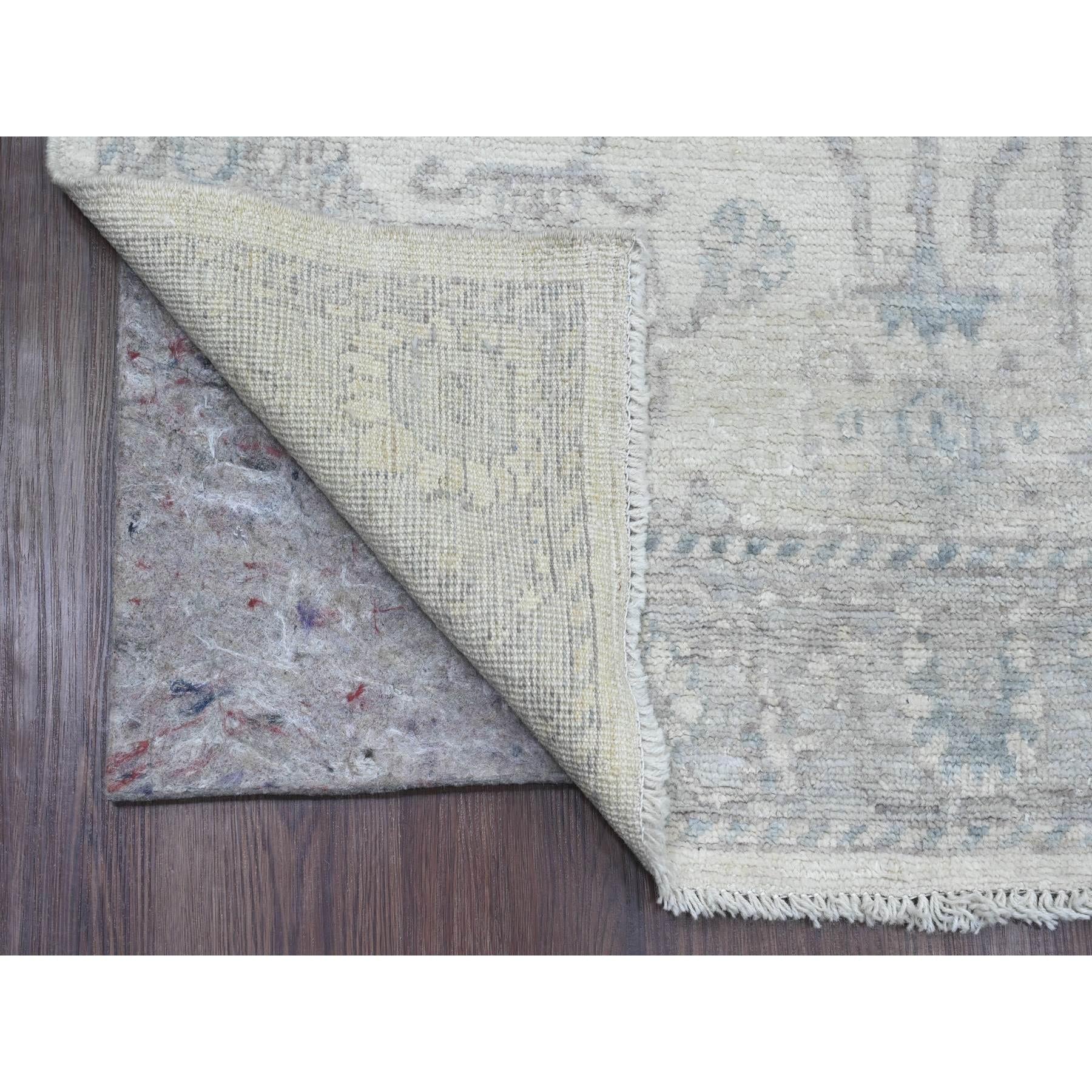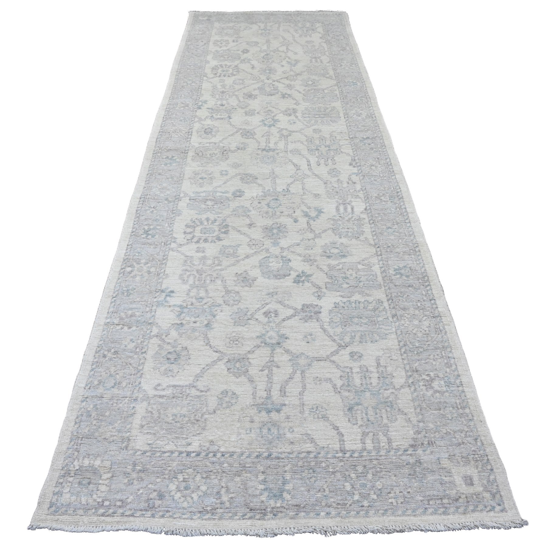 4'x12'2" Pearl White, Afghan Angora Oushak With All Over Vines Design, Hand Knotted, Vegetable Dyes, 100% Wool, Wide Runner, Oriental Rug FWR124584