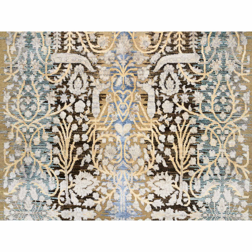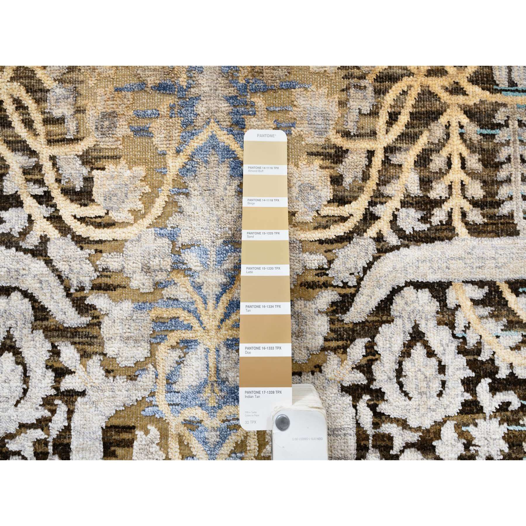 4'x12' Gold Brown, Silk With Textured Wool, Hand Knotted, Transitional Sarouk, Oriental, Wide Runner Rug FWR382398