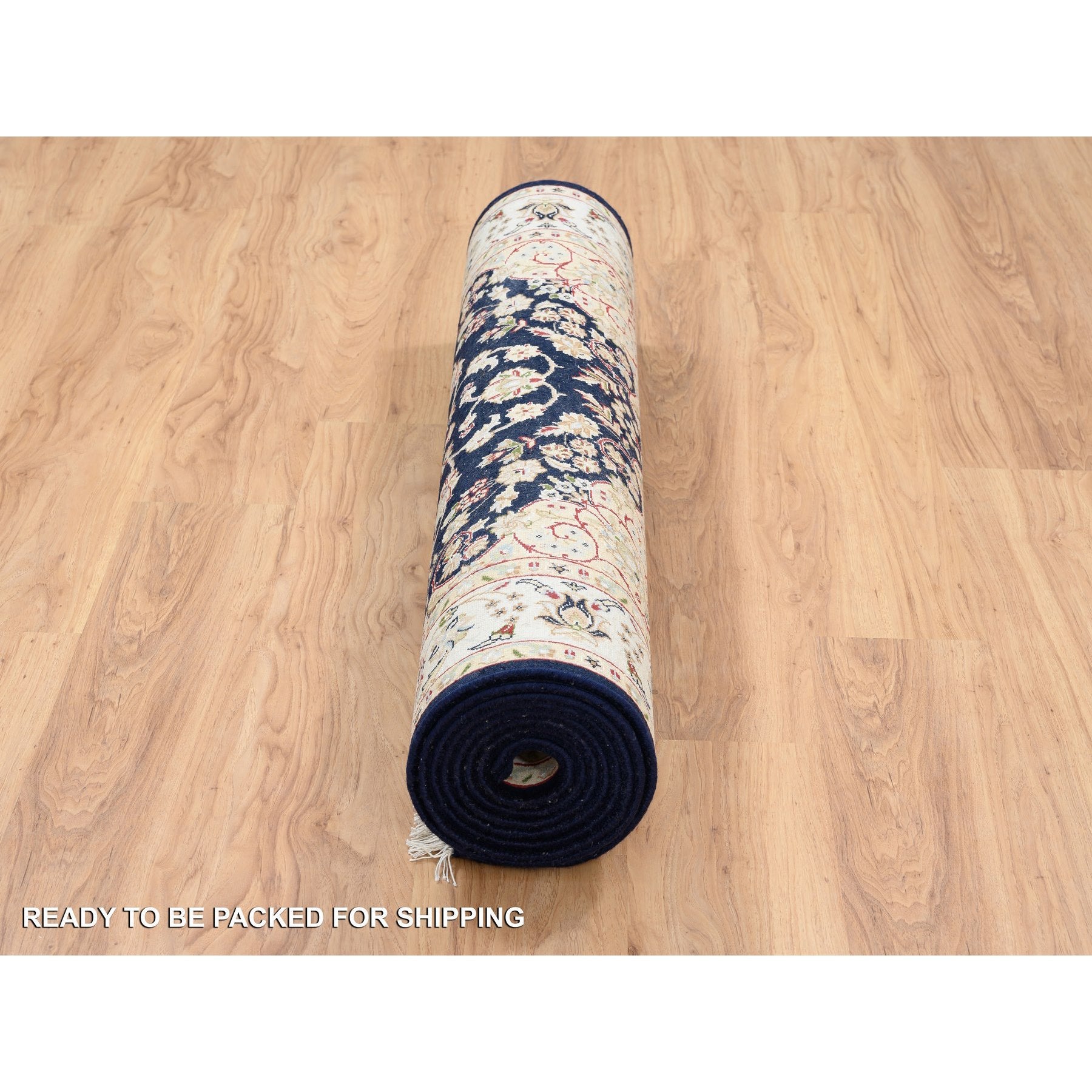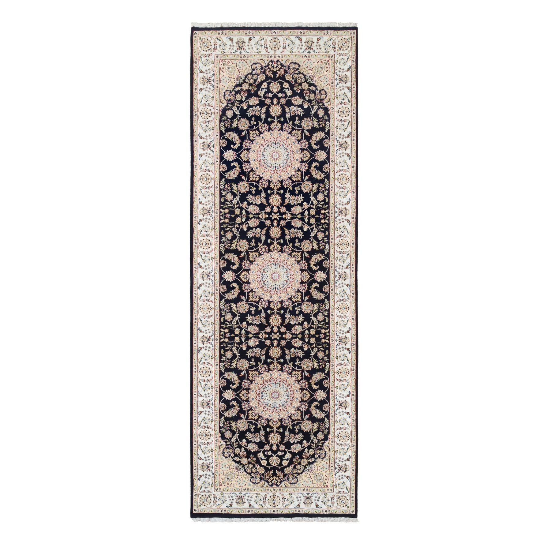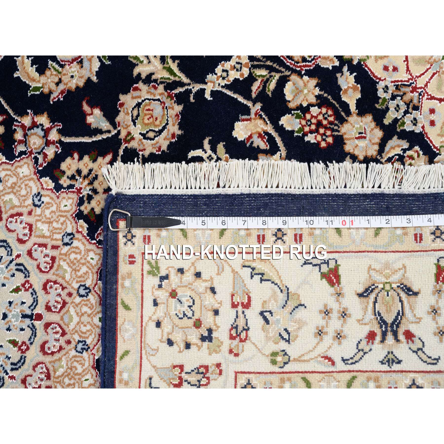 4'x12' Midnight Blue, Wool Hand Knotted, Nain With Center Medallion Flower Design 250 Kpsi, Wide Runner Oriental Rug FWR384000