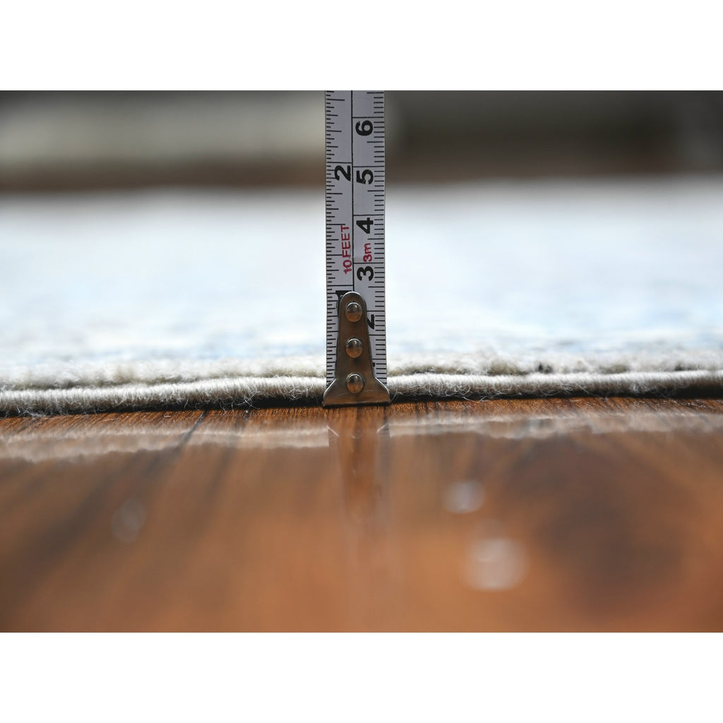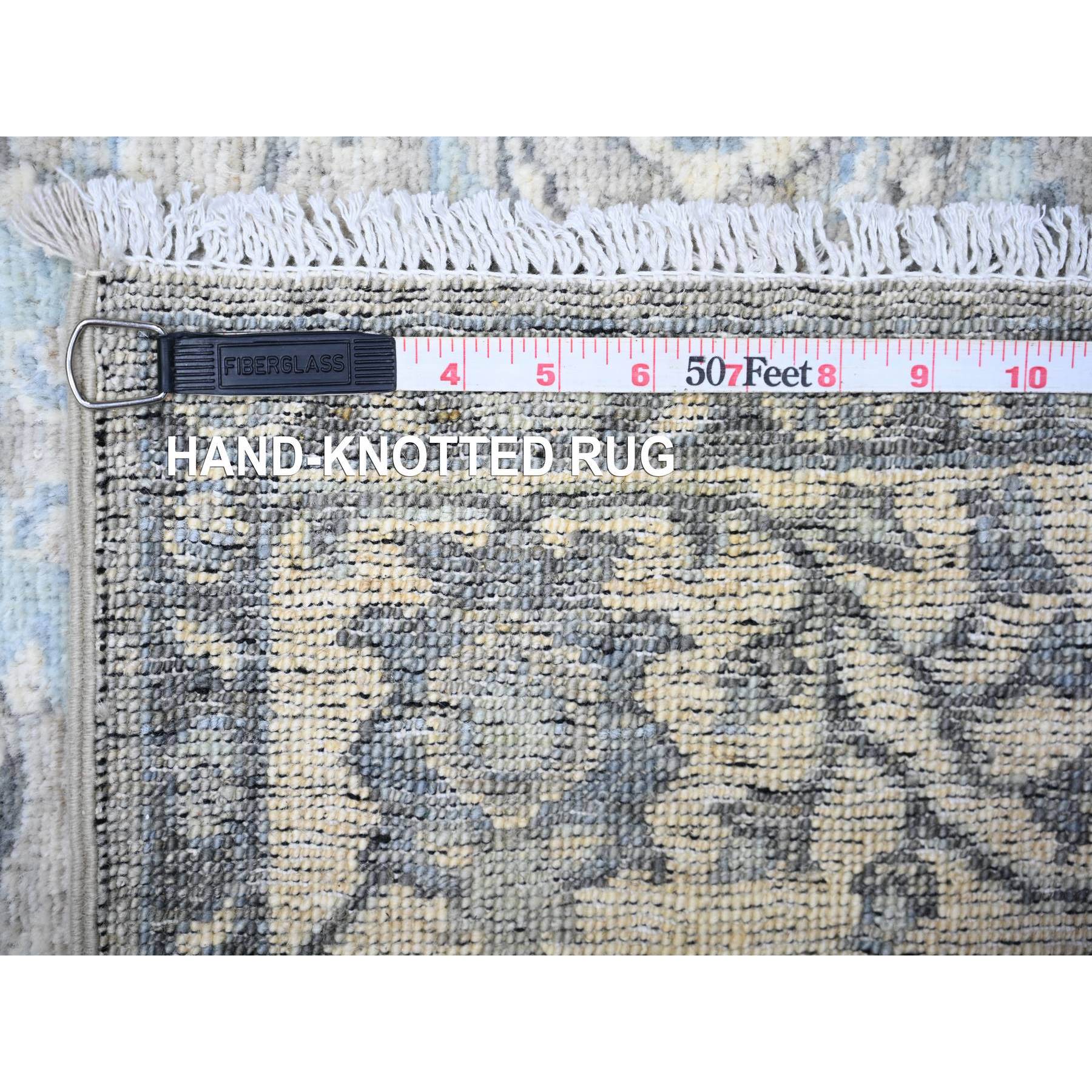 4'x12' Upward Gray And Acadia White, Extra Soft Wool, Fine Peshawar Heriz Sickle Leaf Design Natural Dyes, Denser Weave, Wide Runner Hand Knotted Oriental Rug FWR529008