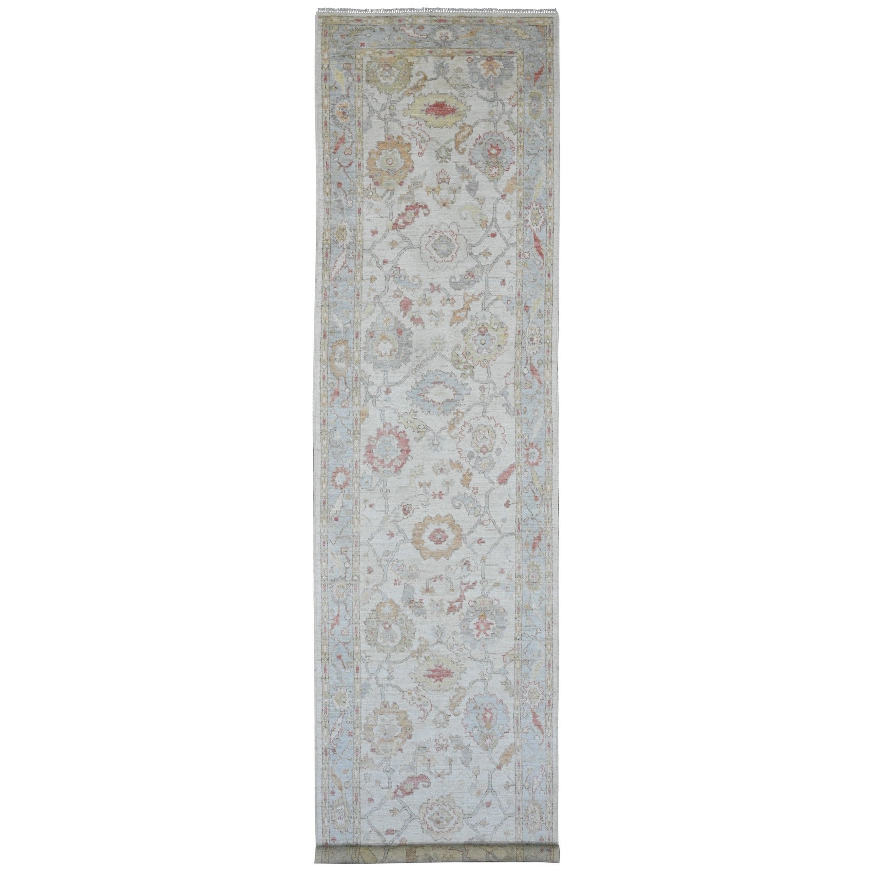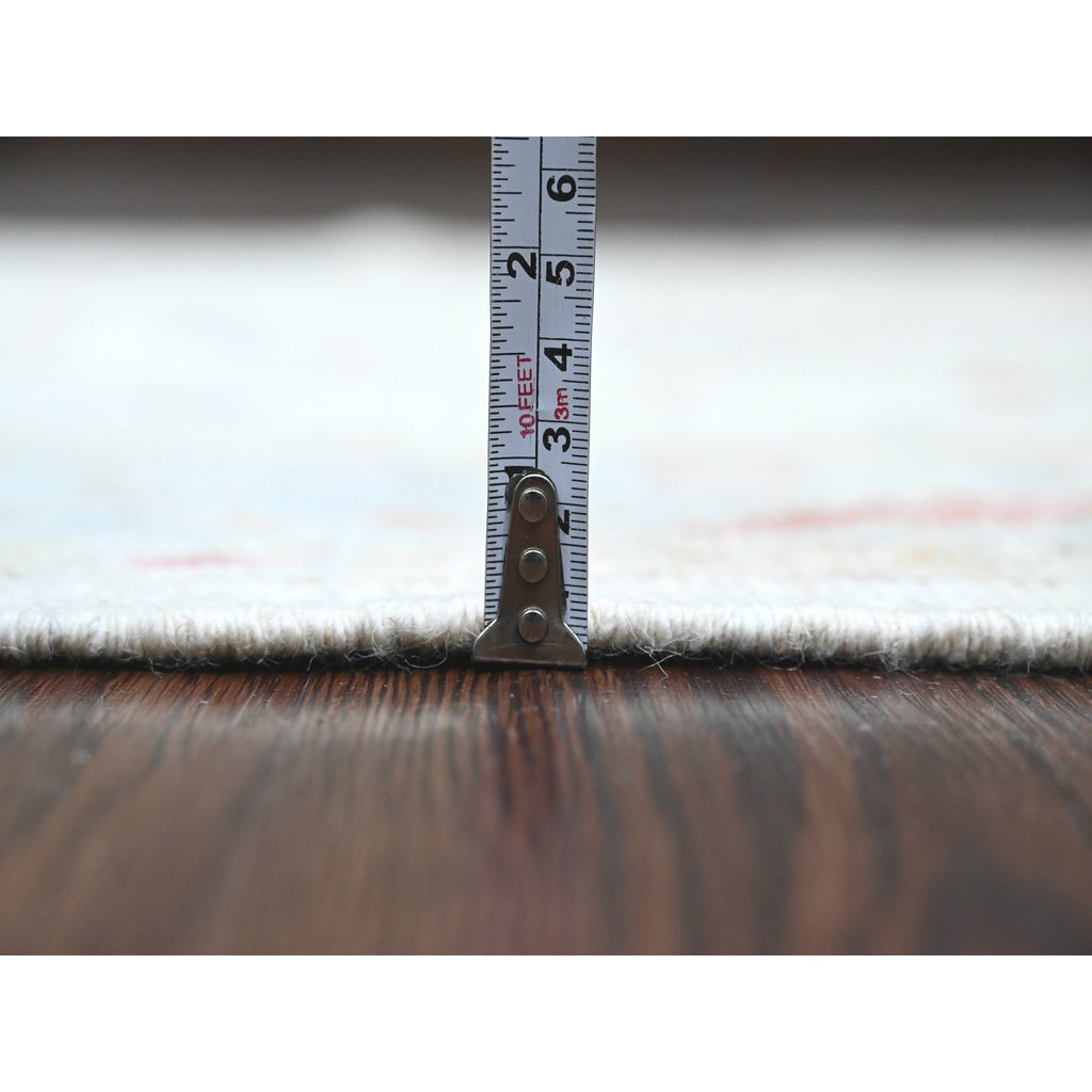 4'x15'10" Pearl White, Afghan Angora Oushak With Colorful Leaf Design, Veggie Dyes, Hand Knotted, 100% Wool, Xl Runner, Oriental Rug FWR121260