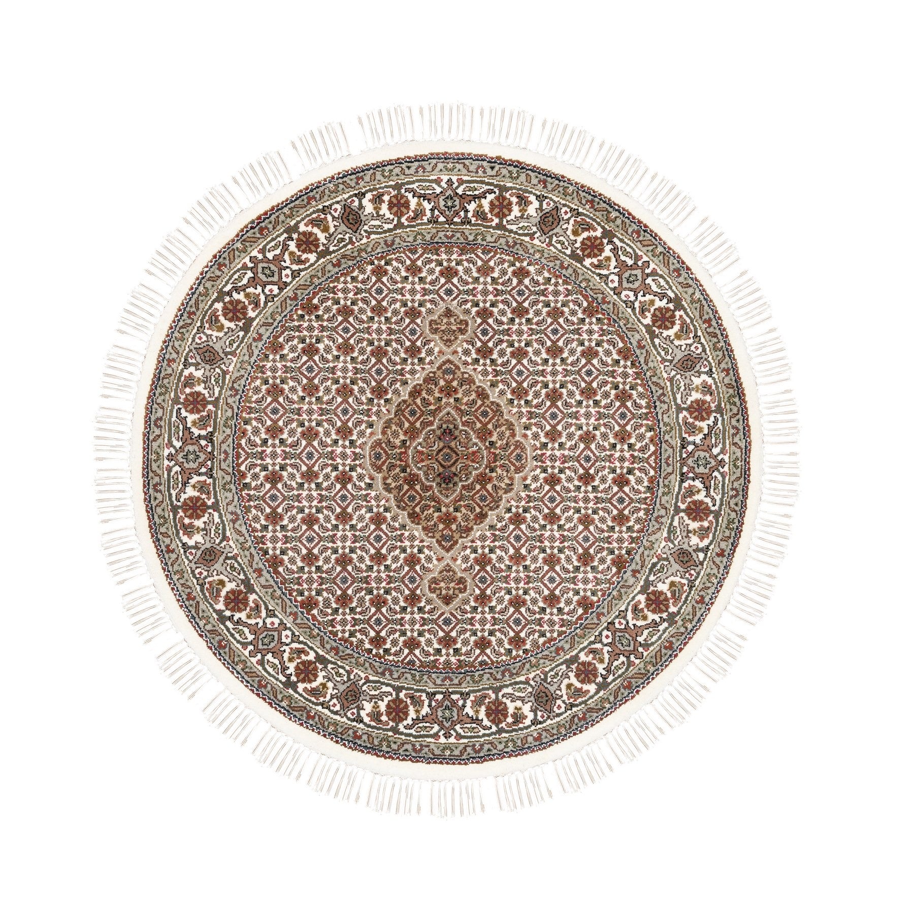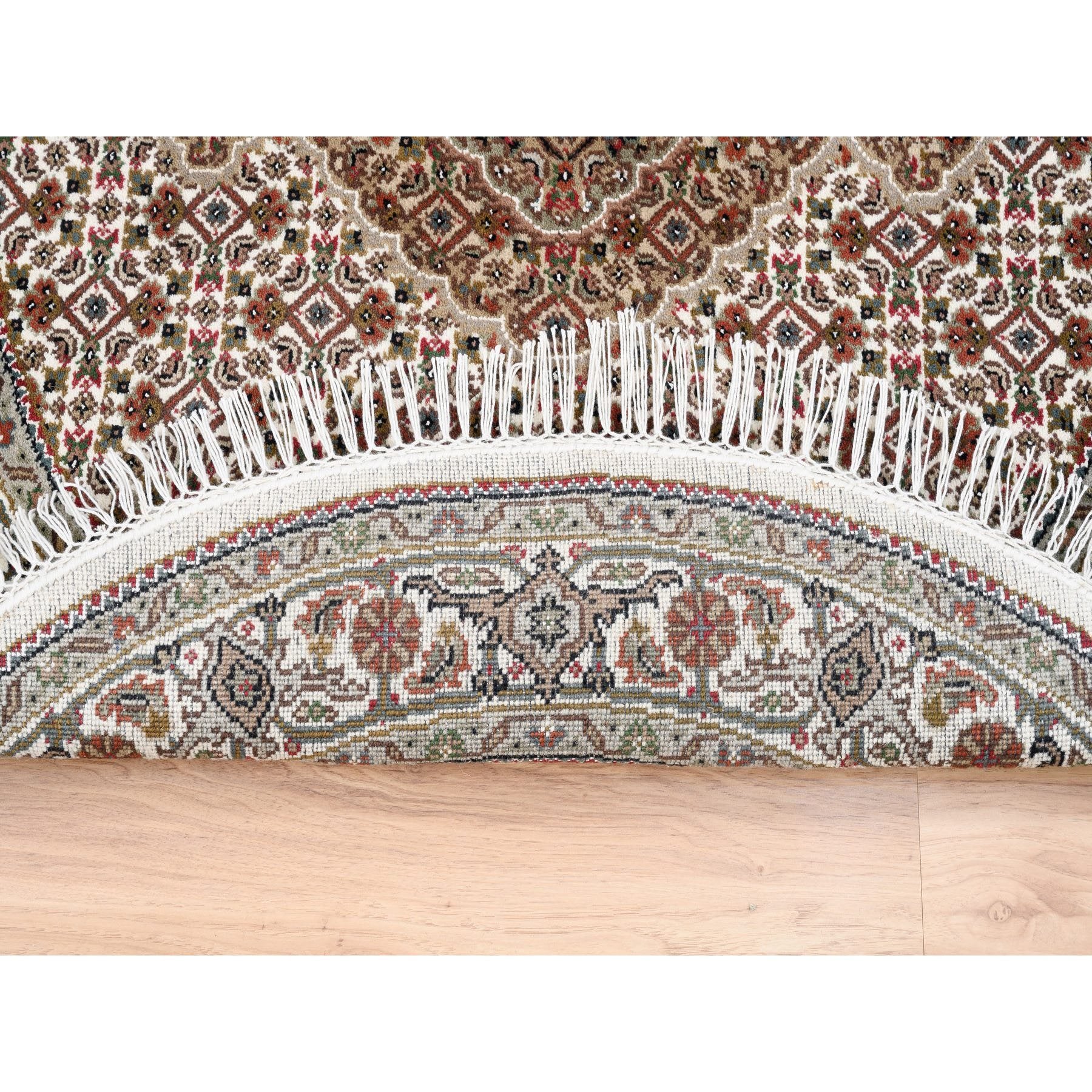 4'x4' Hand Knotted Ivory Wool Fish Medallion Design Tabriz Mahi Oriental Round Rug FWR375546