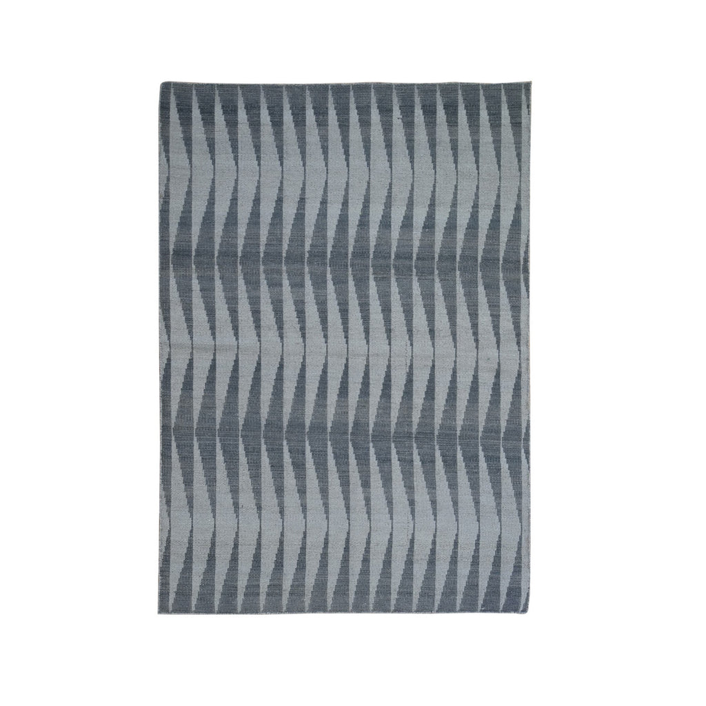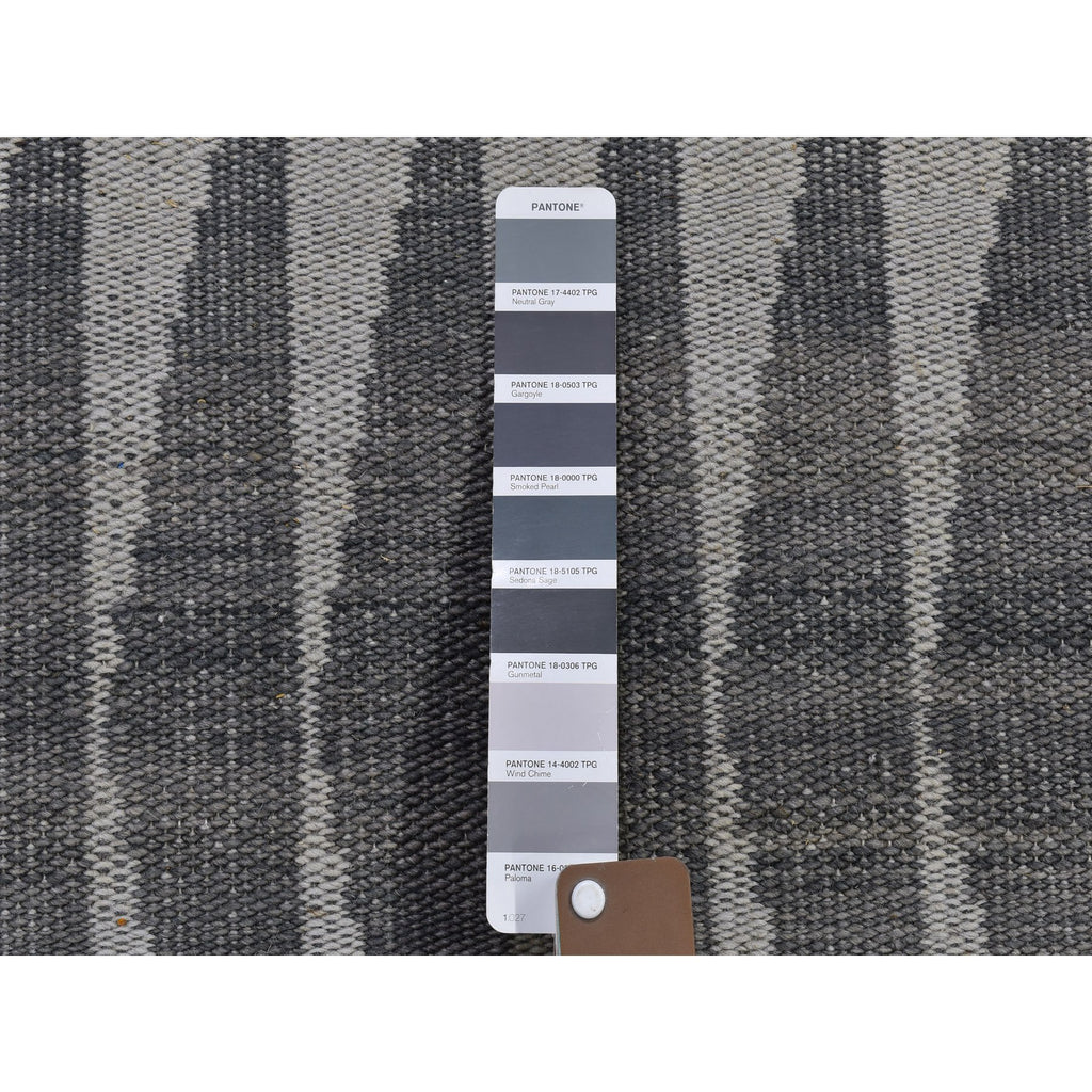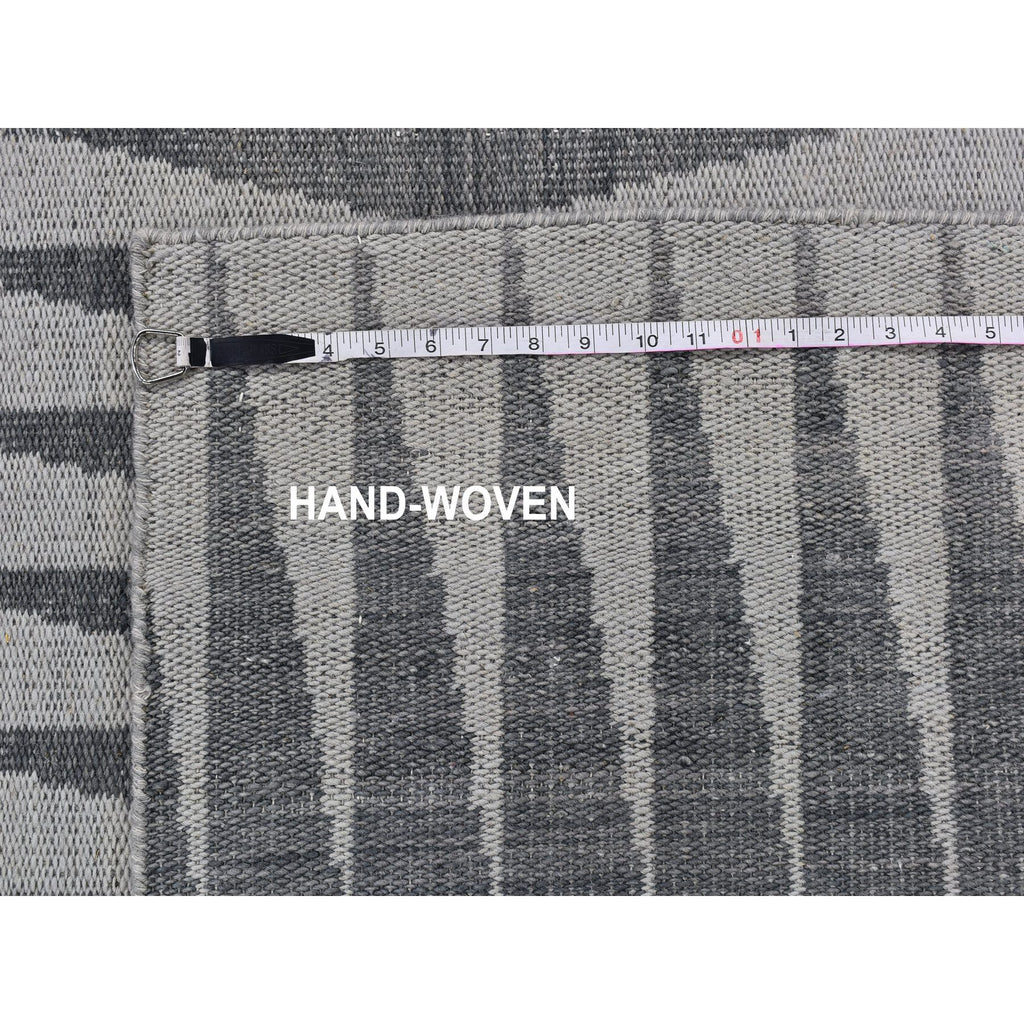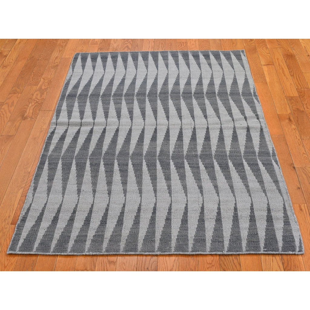 4'x5'10" Charcoal Gray Pure Wool Reversible Geometric Design Kilim Flat Weave Hand Woven Oriental Rug FWR396474