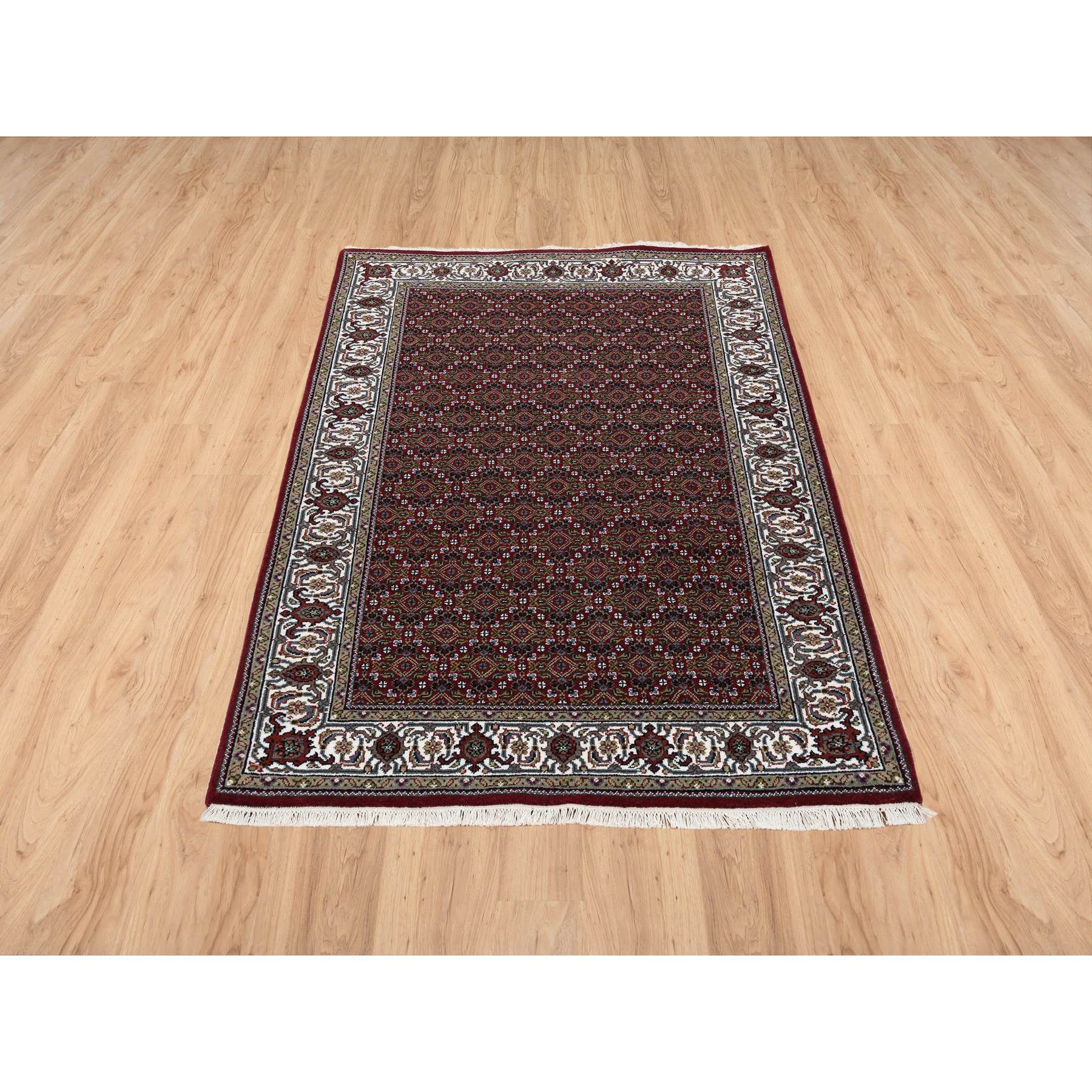 4'x5'10" Rich Red Hand Knotted 175 Kpsi Wool And Silk Herati With All Over Design Oriental Rug FWR384744