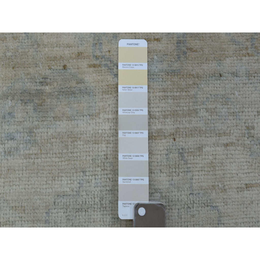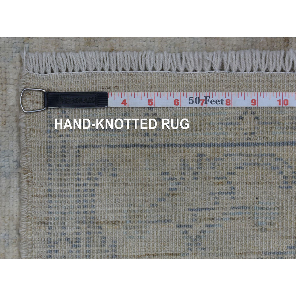 4'x5'10" Silver Gray Hand Knotted Afghan Angora Oushak With Touches Of Blue Soft Wool Oriental Rug FWR420846