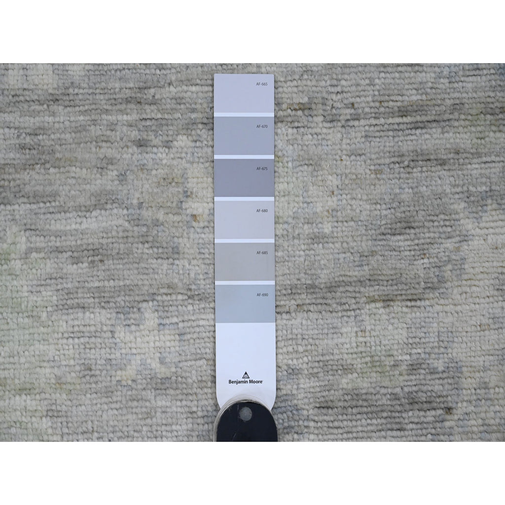 4'x5'10" Sonic Gray, Hand Knotted, Afghan Angora Oushak With Floral Pattern, Natural Dyes, 100% Wool, Oriental Rug FWR120450