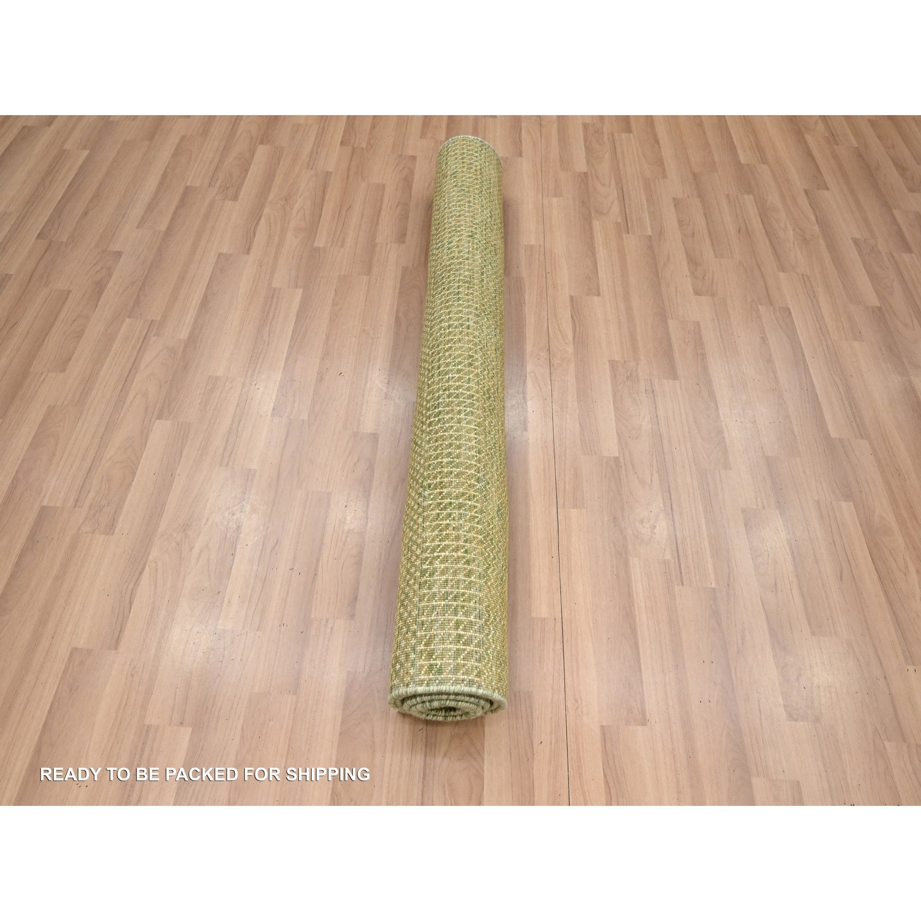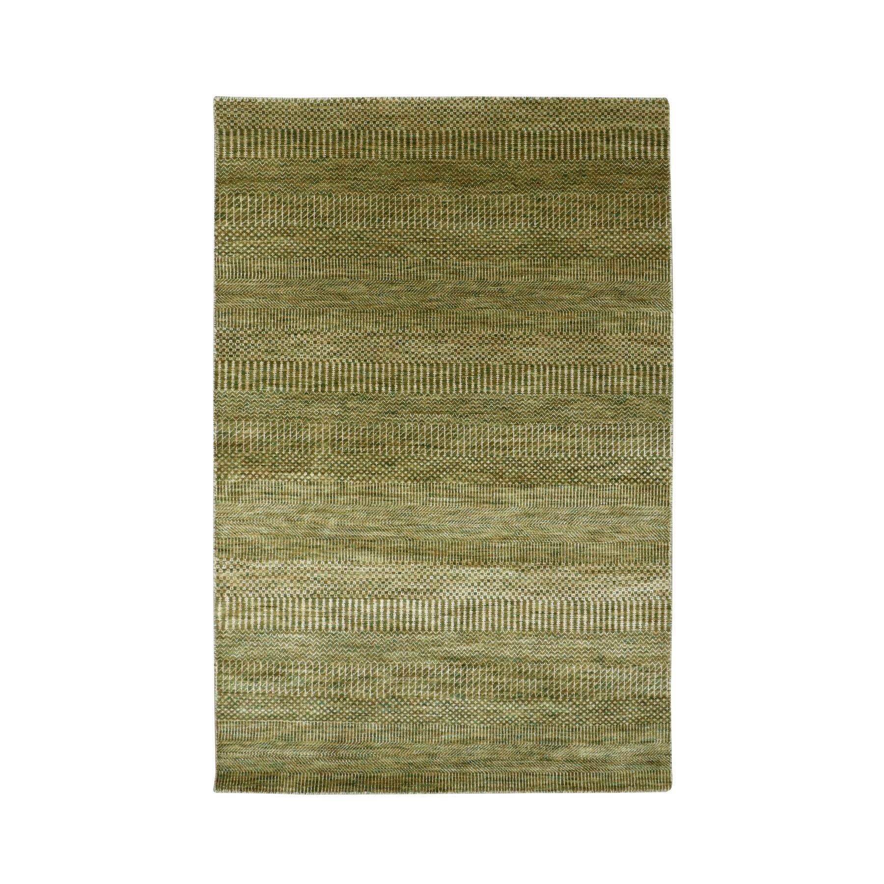 4'x6'1" Amber Green, Wool And Silk, Modern Grass Design, Hand Knotted, Soft Pile, Denser Weave, Tone On Tone, Oriental Rug FWR499302