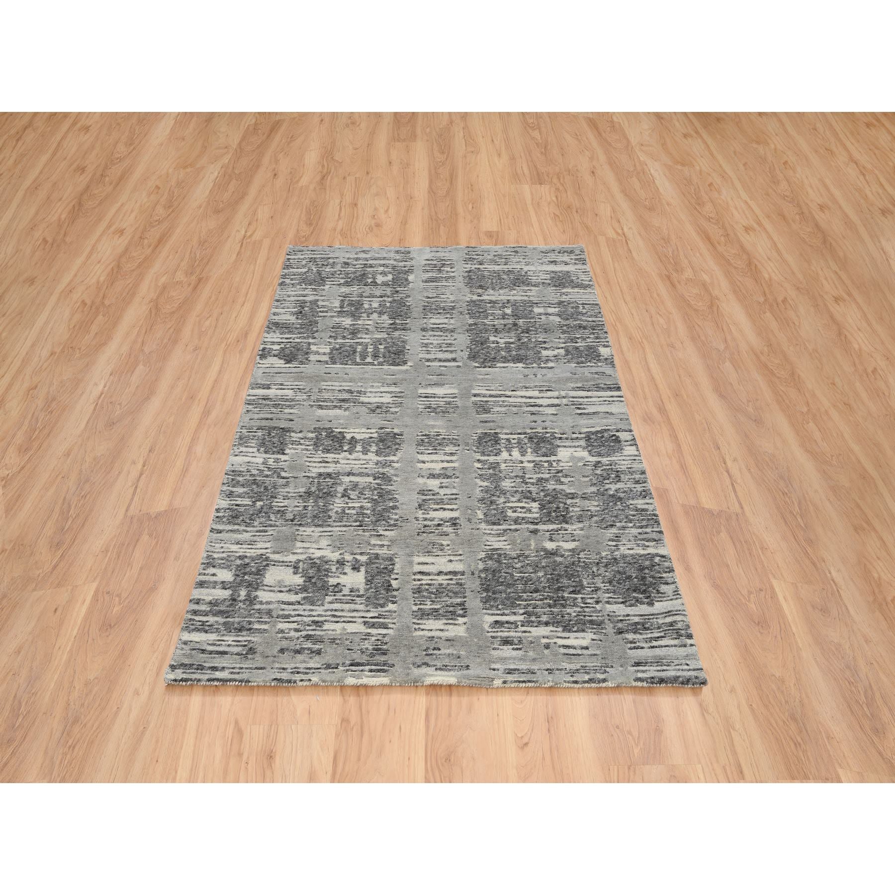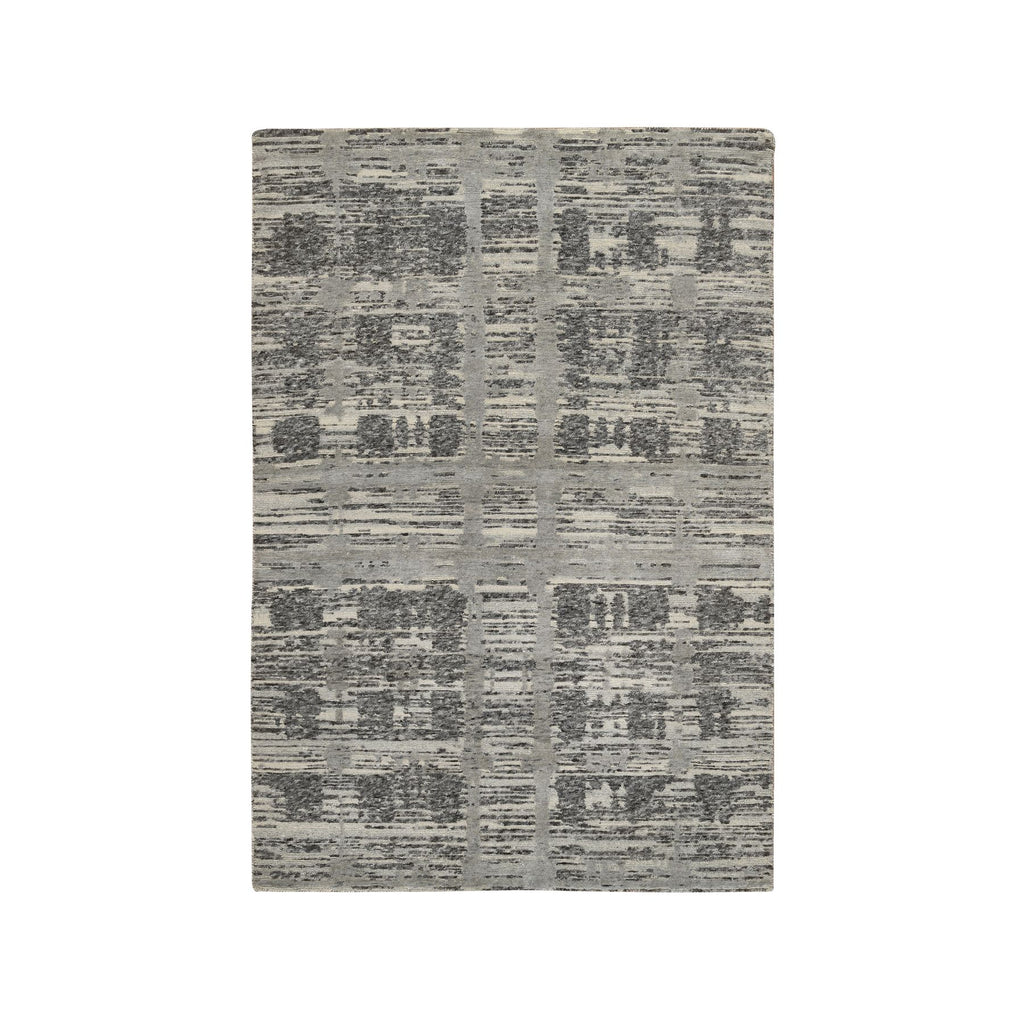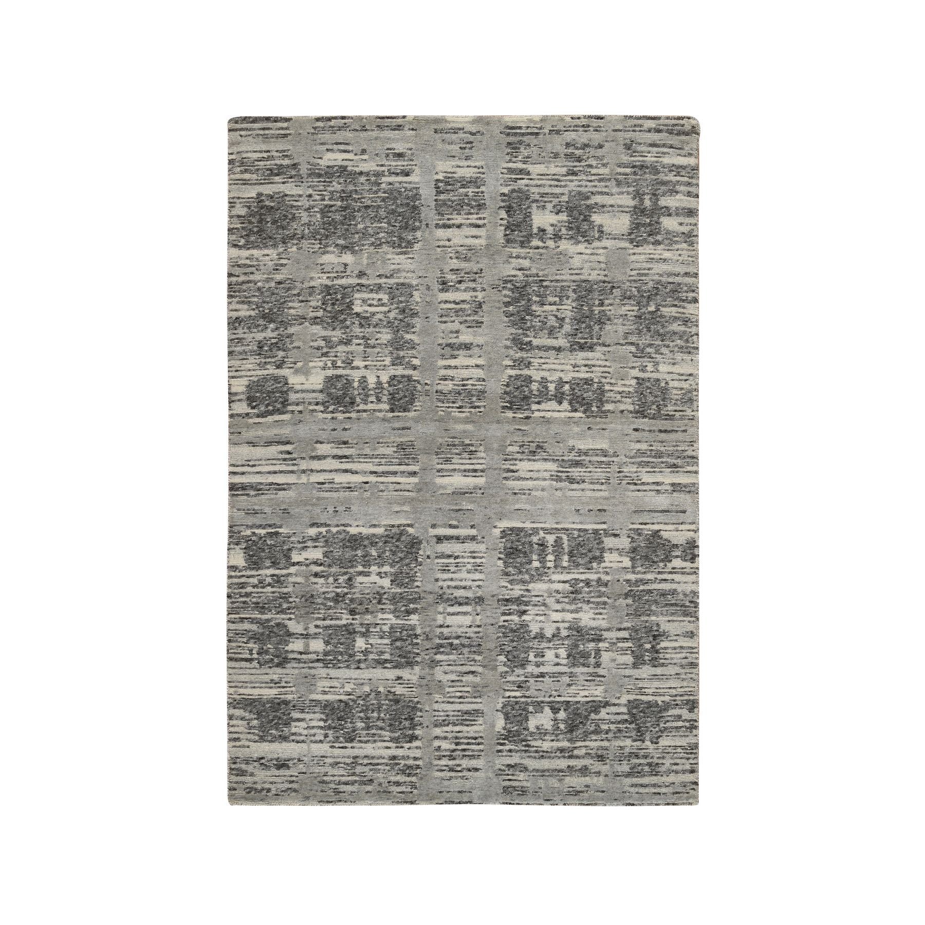4'x6'1" Light Gray, Modern Criss Cross Erased Design, Hand Spun Undyed Natural Wool, Hand Knotted, Oriental Rug FWR388302
