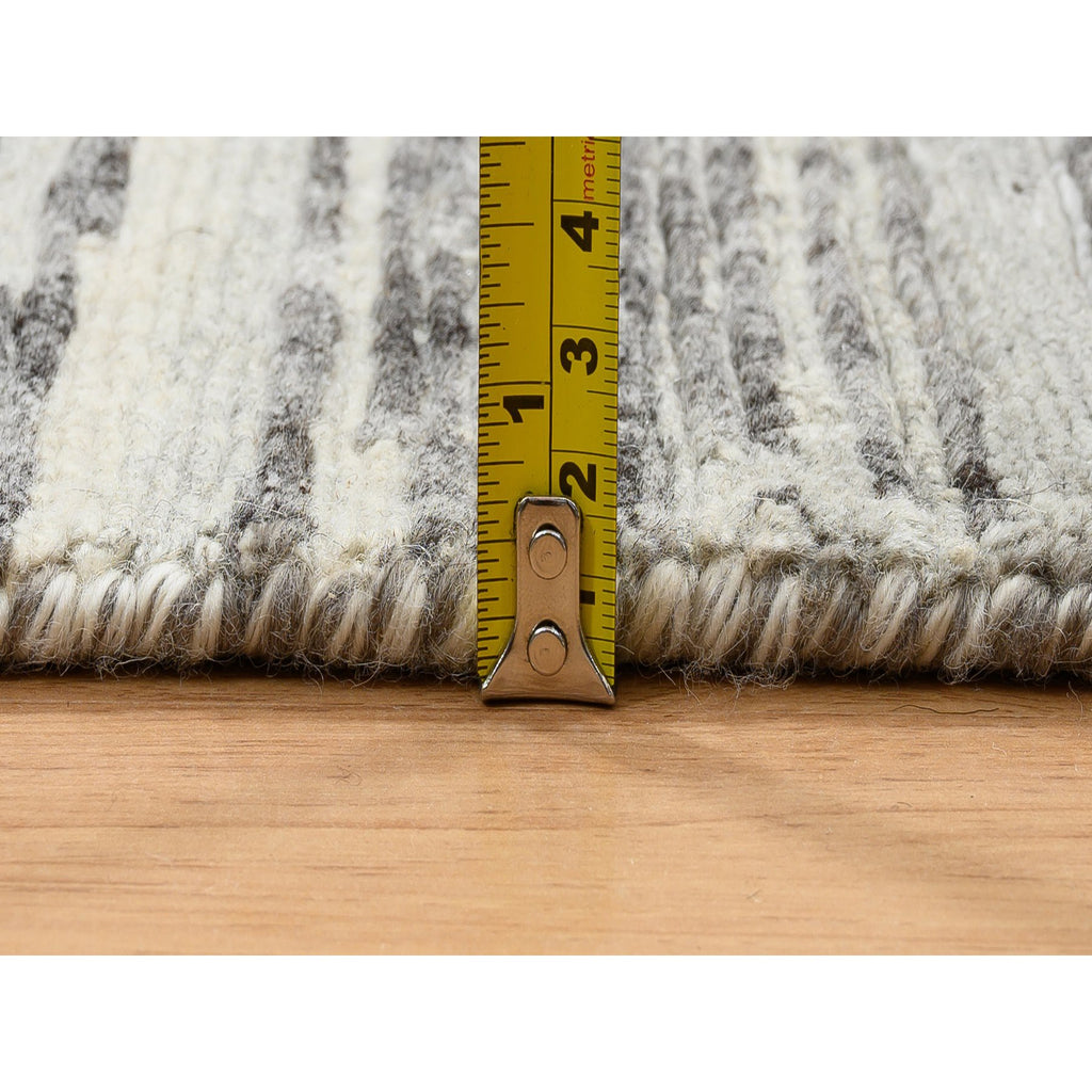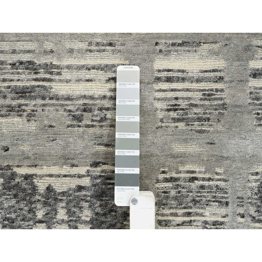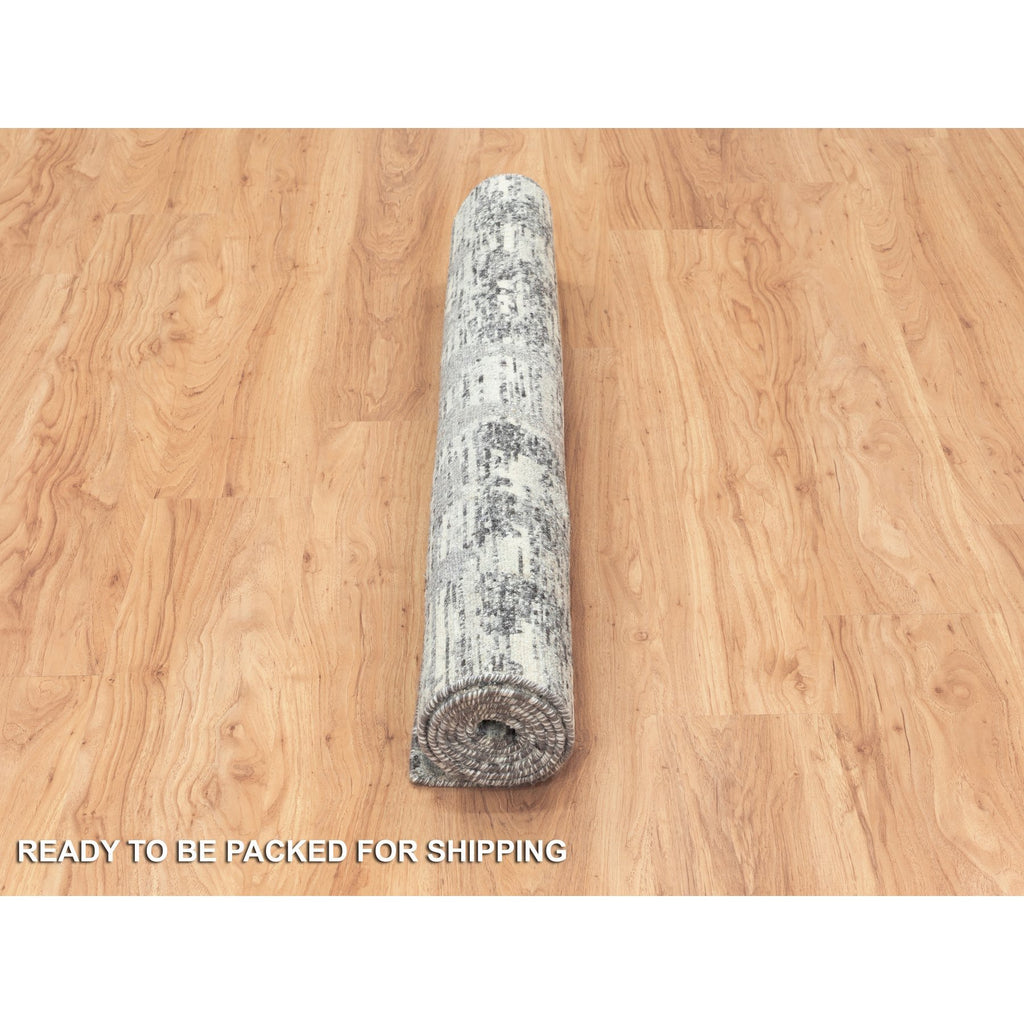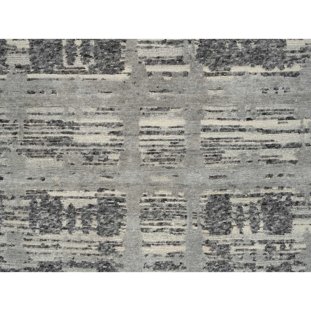 4'x6'1" Light Gray, Modern Criss Cross Erased Design, Hand Spun Undyed Natural Wool, Hand Knotted, Oriental Rug FWR388302