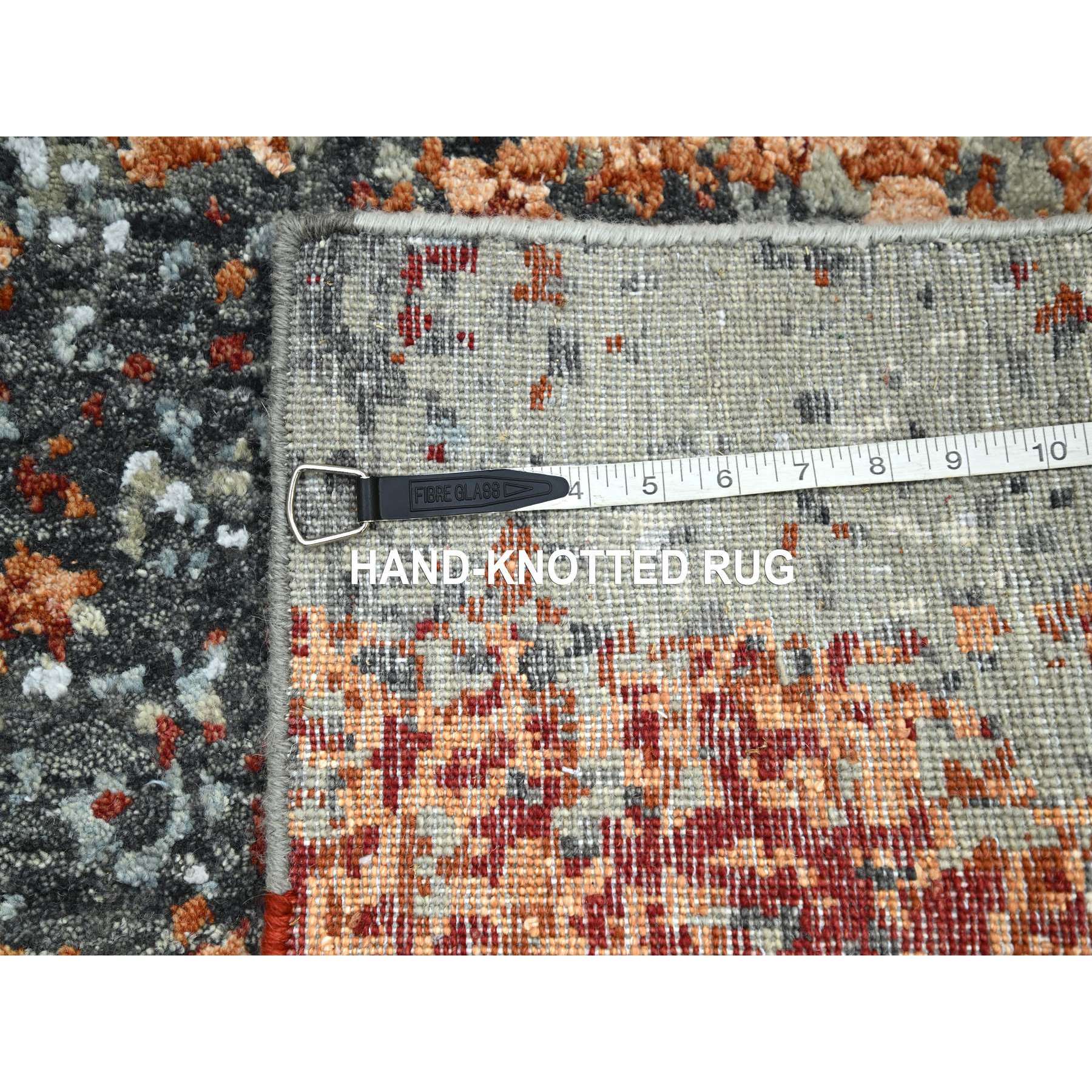 4'x6'2" Charcoal Gray With Orange, Persian Knot, Abstract With Galaxy Design, Pure Wool, Hand Knotted, Densely Woven, Oriental Rug FWR499098