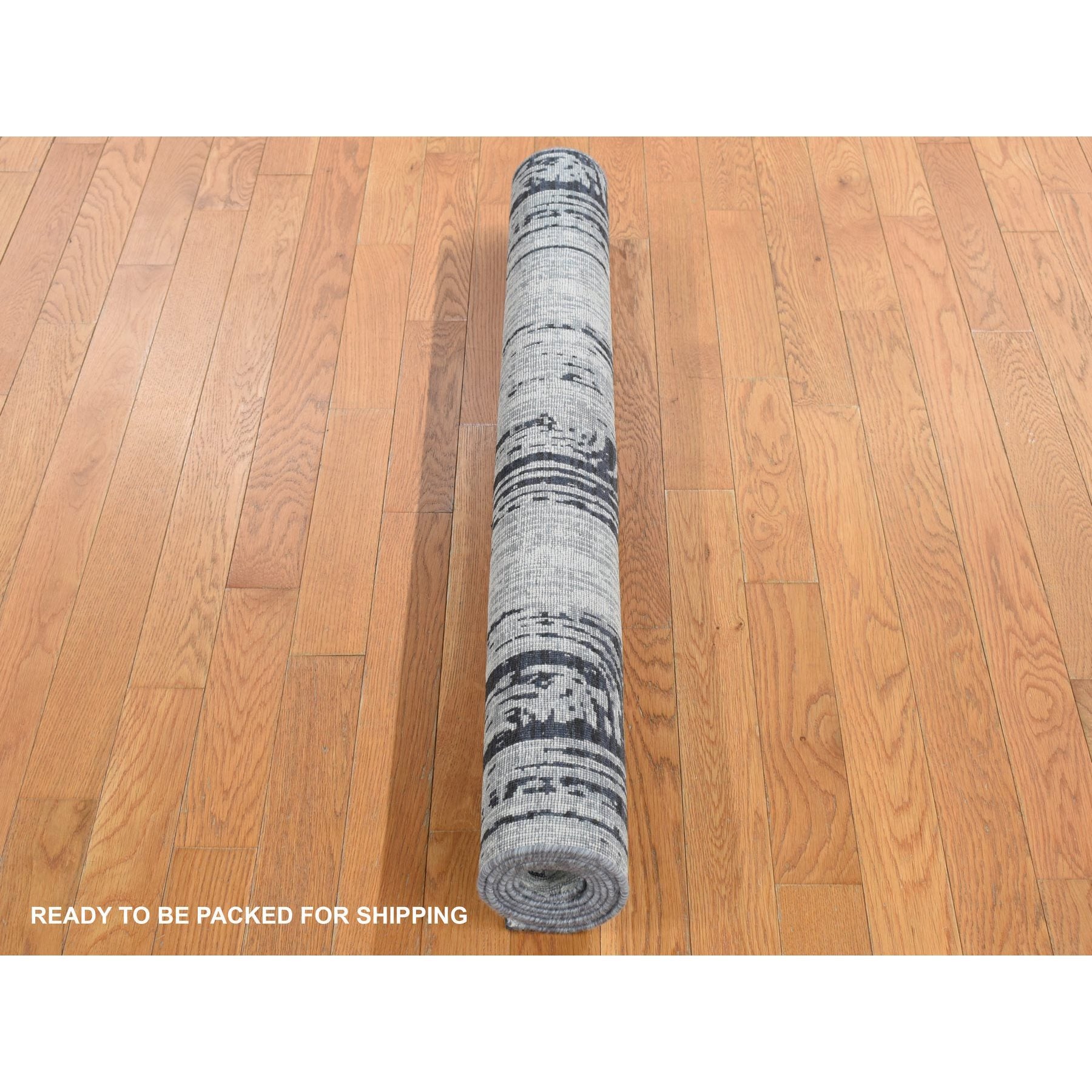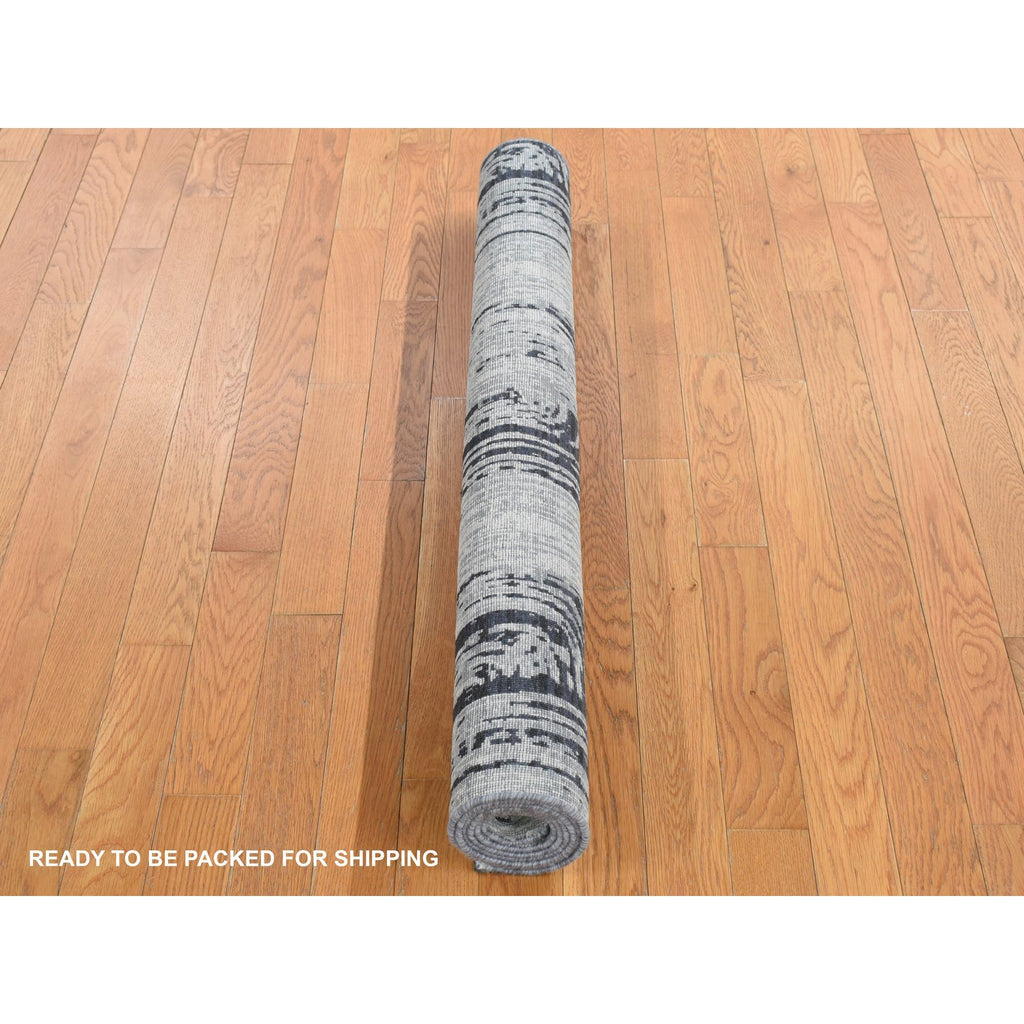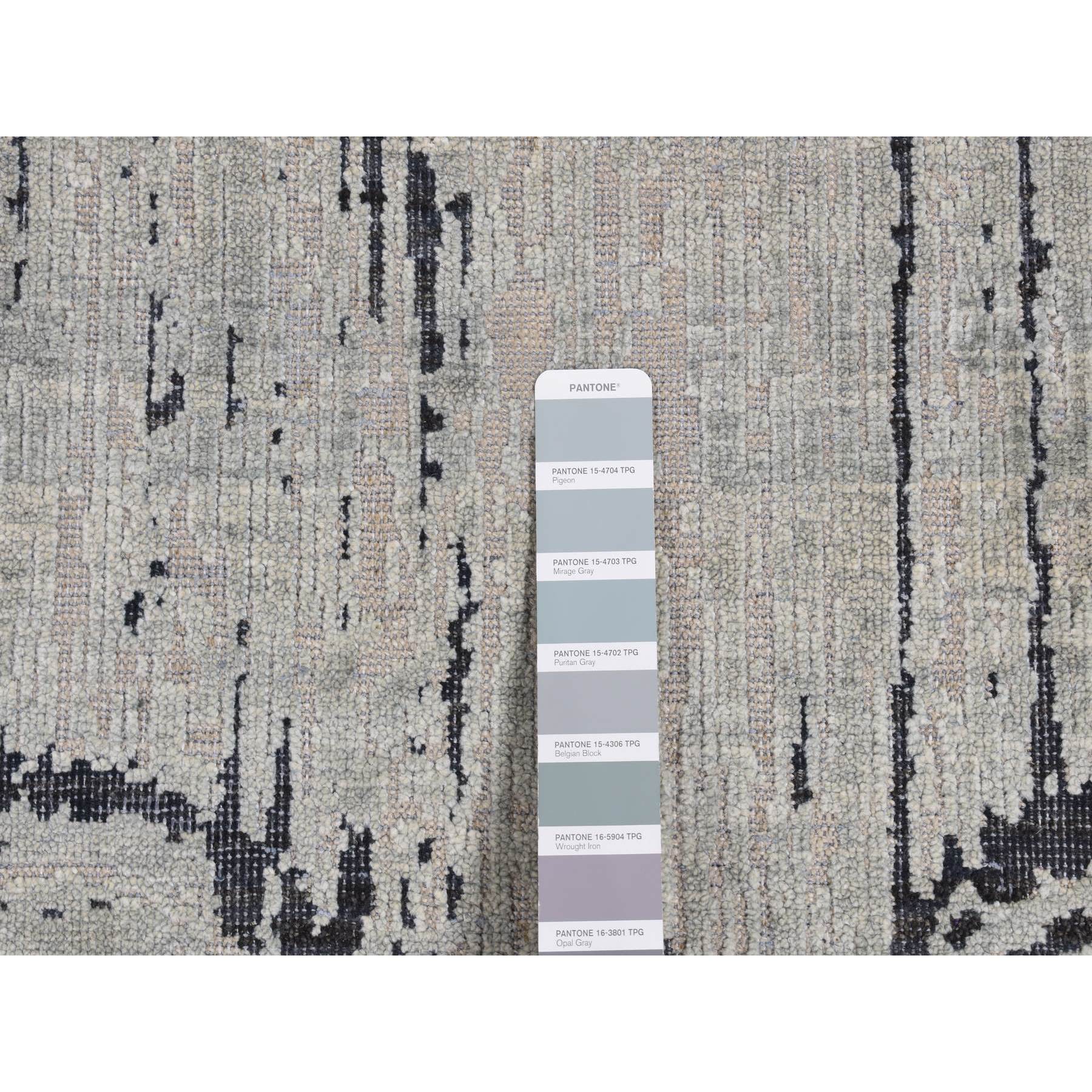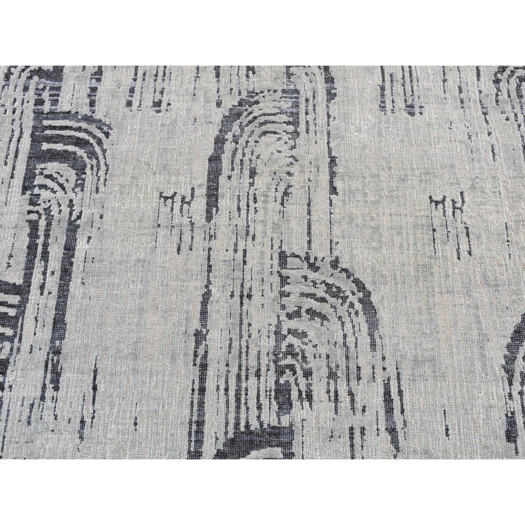 4'x6'3" Ash Gray, The Cane Design, Pure Silk With Textured Wool, Hand Knotted, Oriental Rug FWR523308
